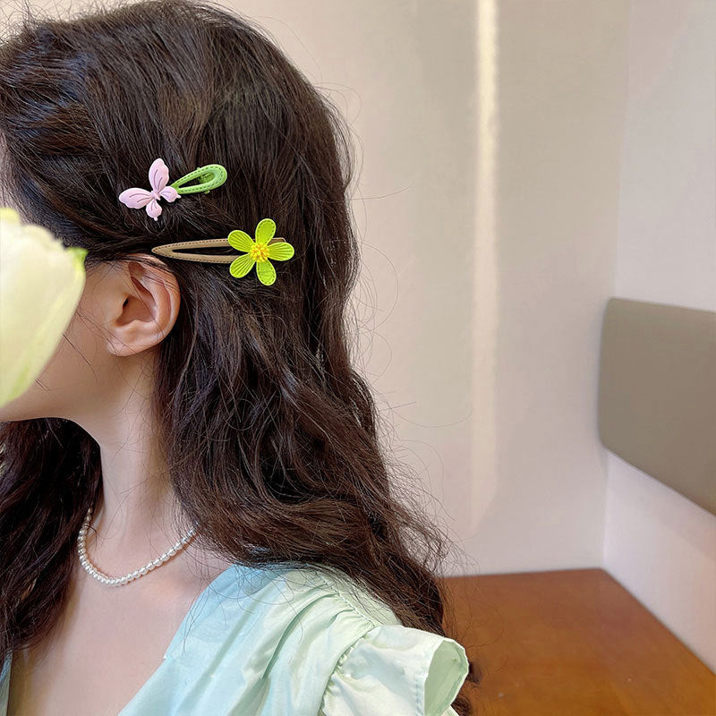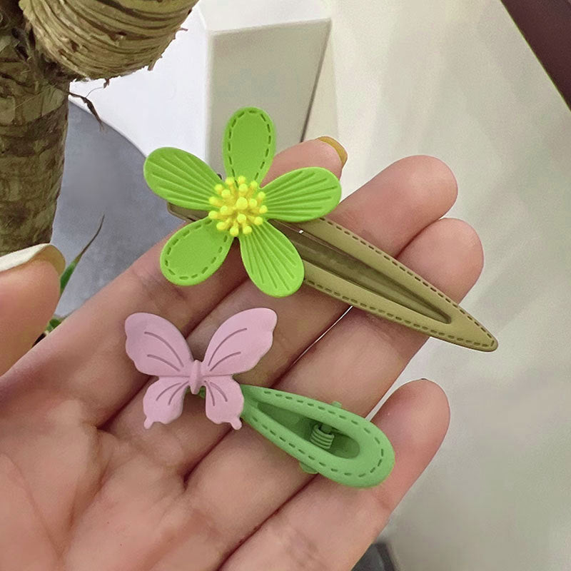 Crafted from alloy with dimensions of 6.5/4.8 CM, this set of Butterfly Floral Hair Pins (L4408) is both stylish and sturdy.