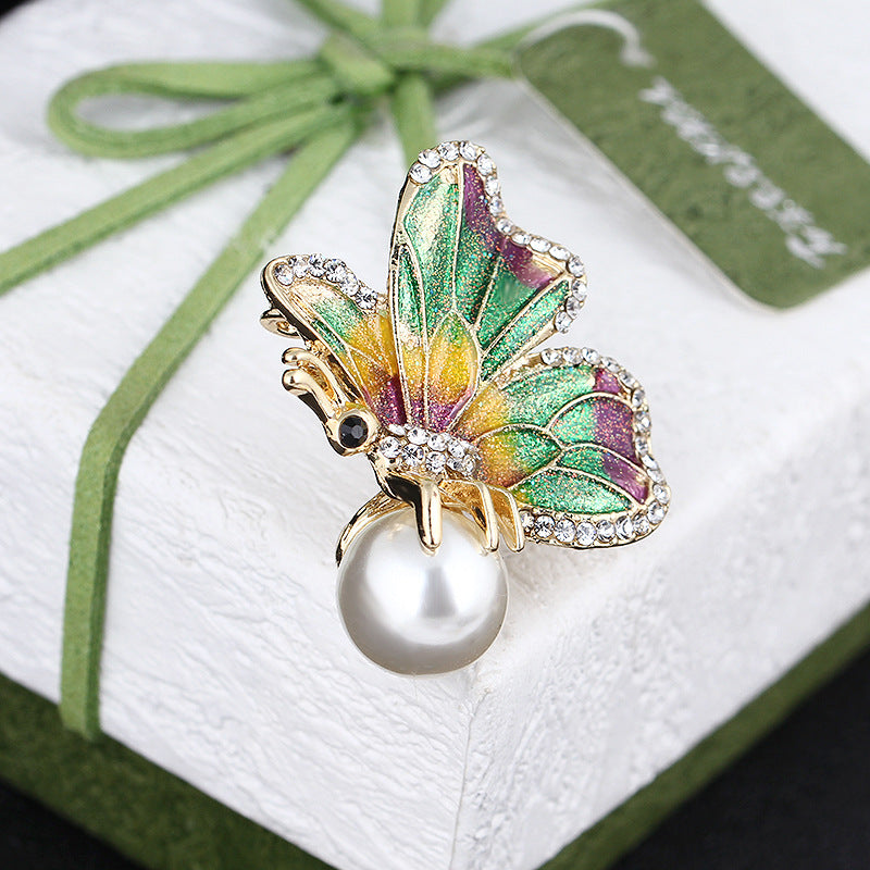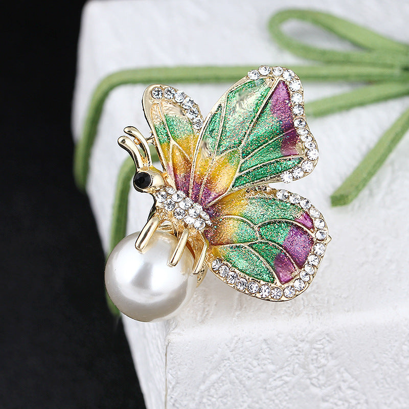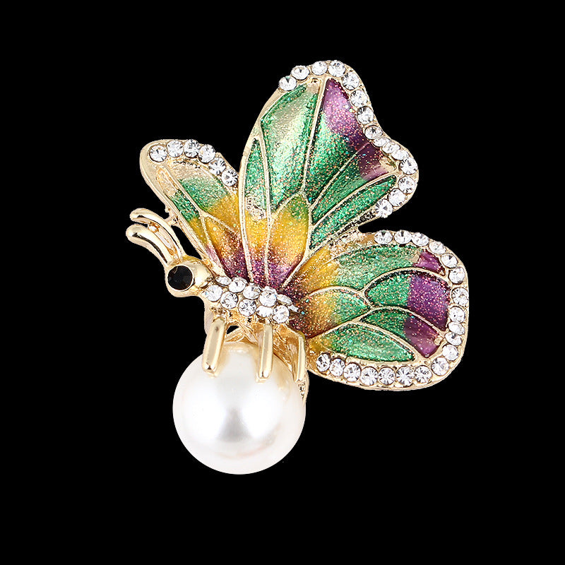 2. Butterfly Pearl Rhinestone Brooch PA4838