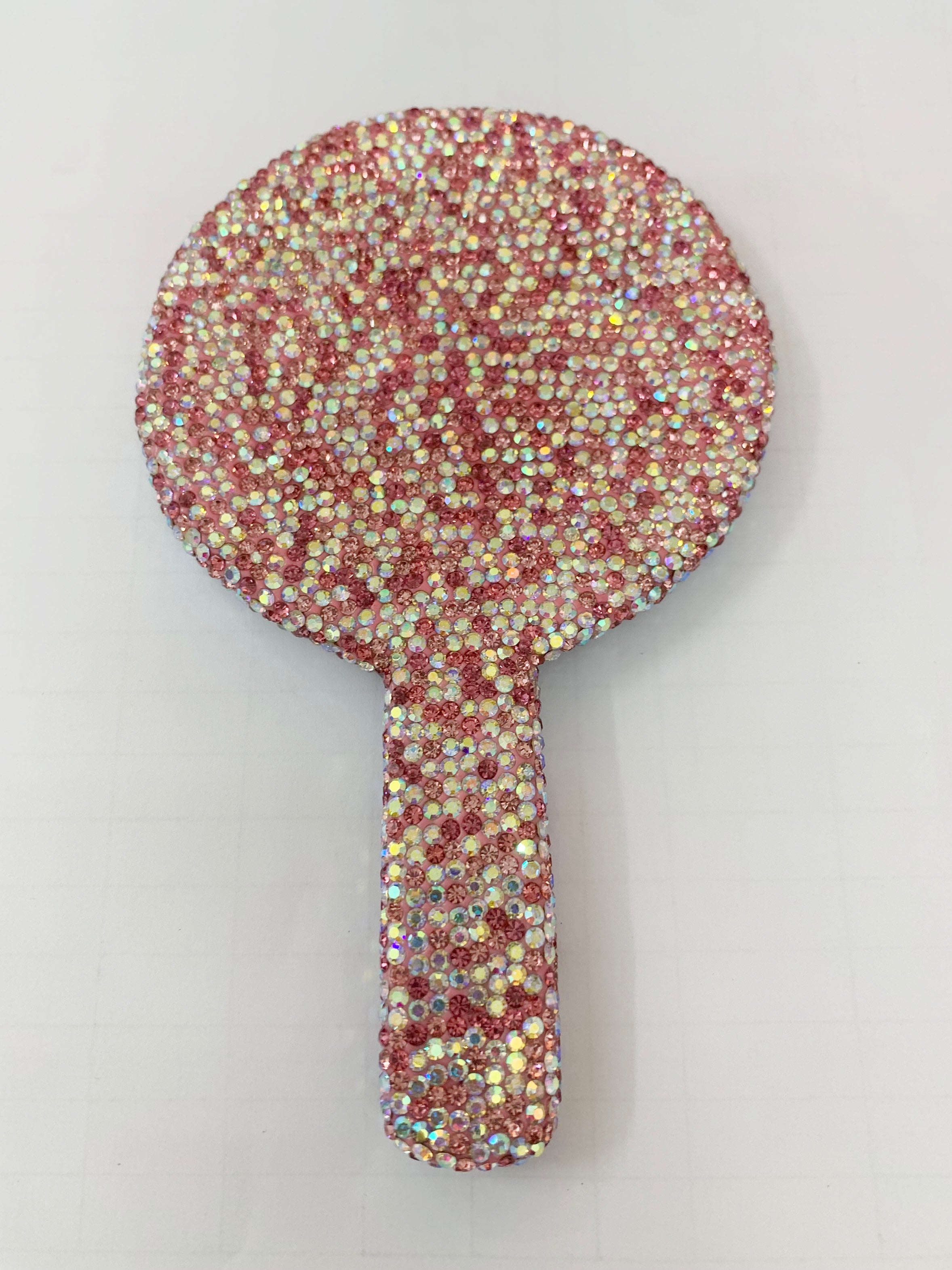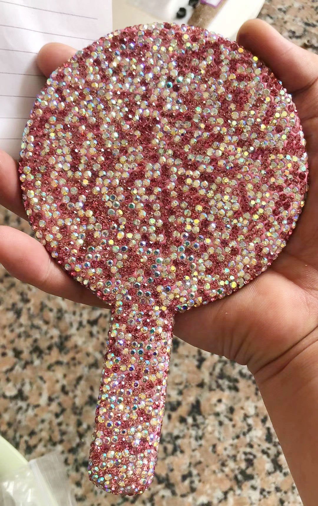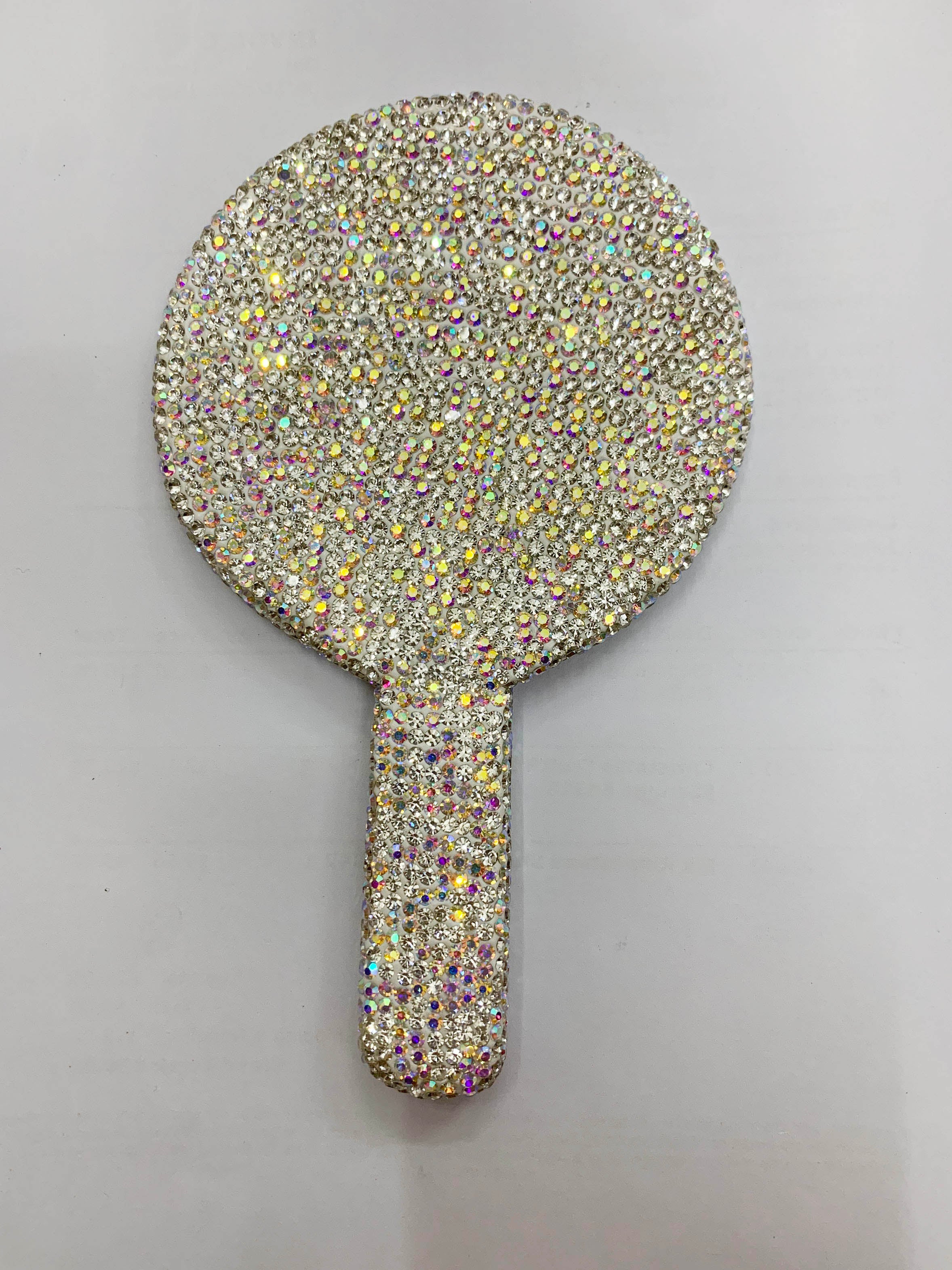 Circle Ceramic Rhinestone Hand Mirror M0436