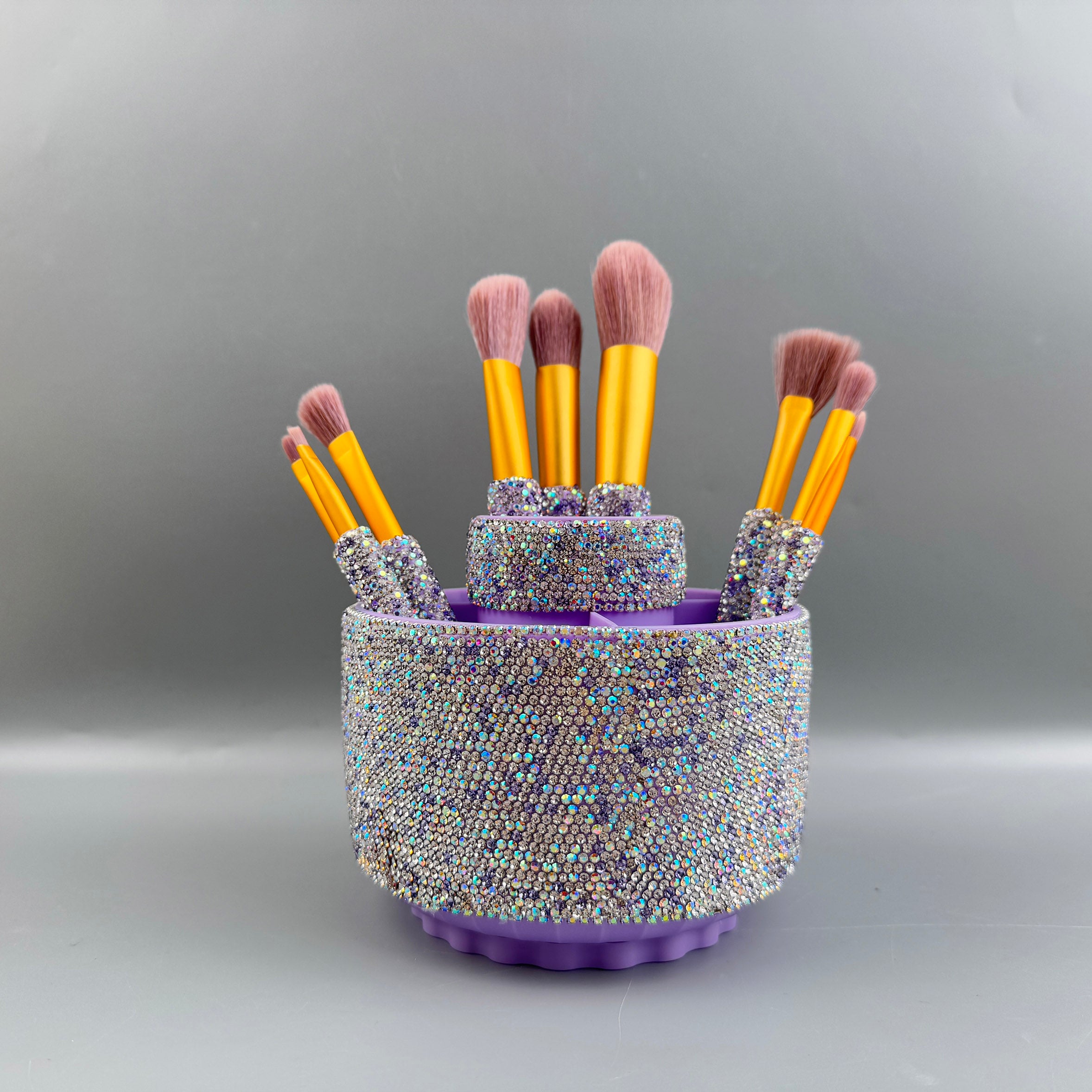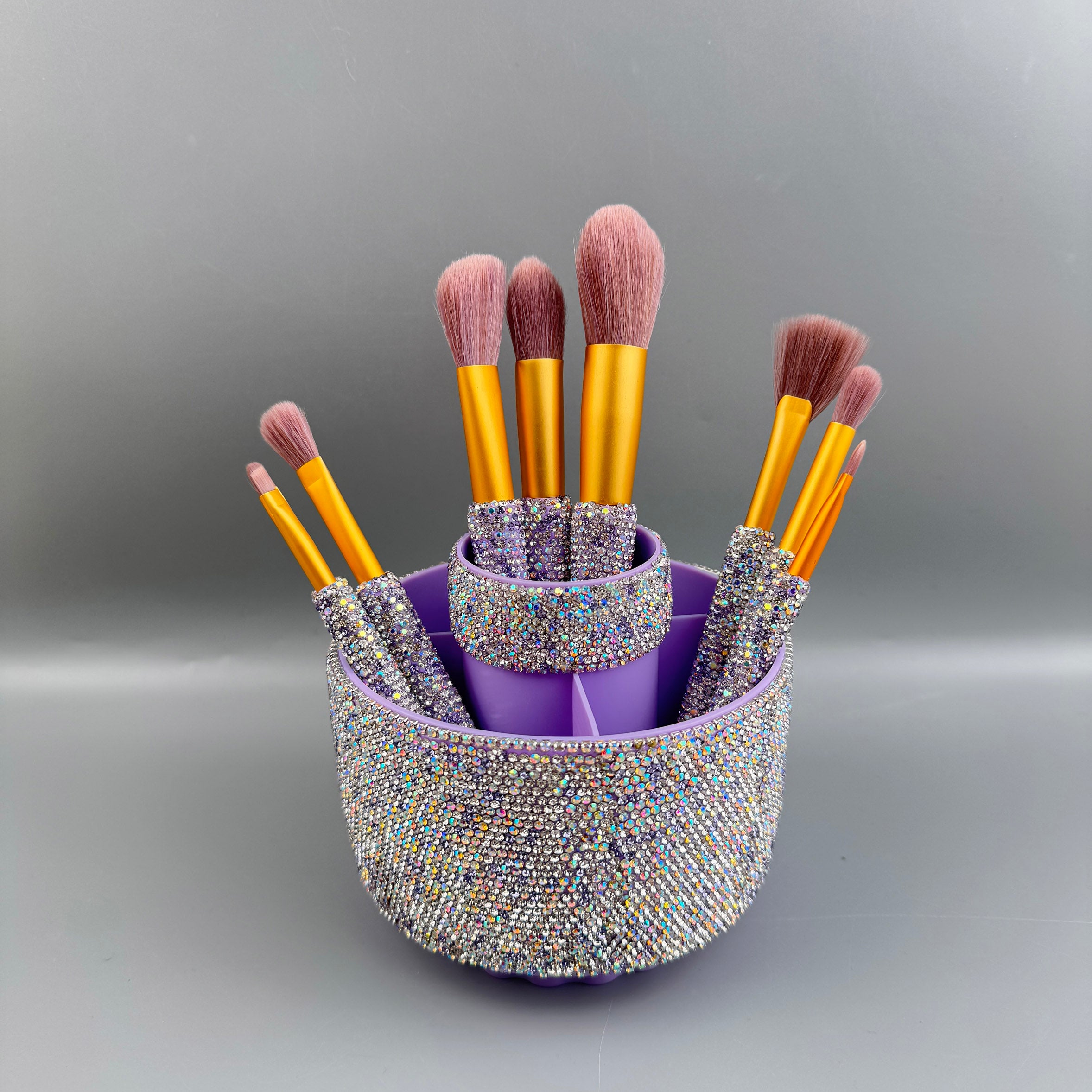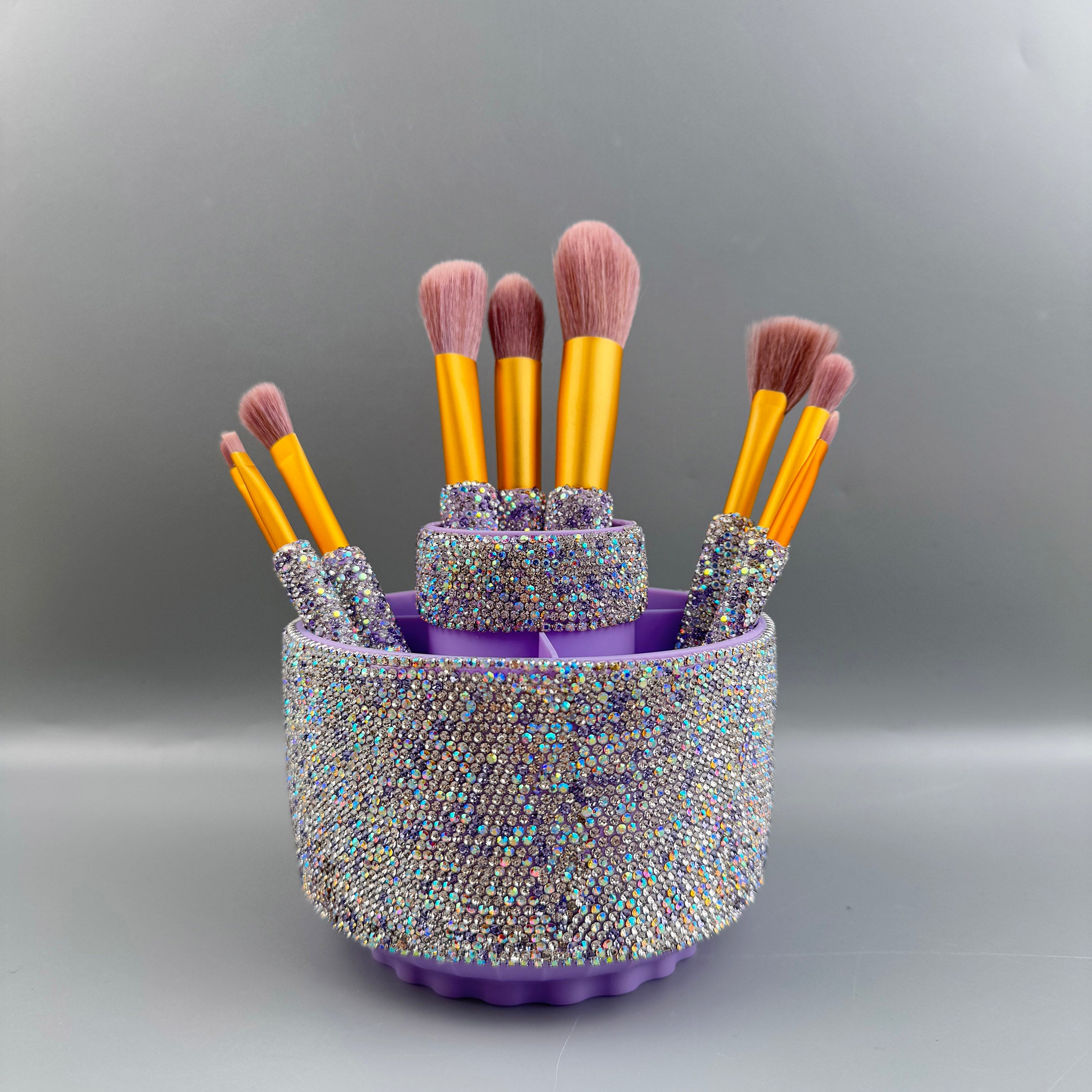 - Maximize accessibility with the 360-degree rotation feature of this makeup brush holder! Effortlessly spin the organizer to reach items from any angle, thanks to the high-quality bottom wheel that ensures smooth and stable rotation. Easily store or retrieve your cosmetics by a simple twist, keeping everything within easy reach.