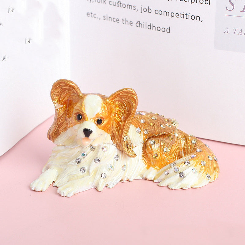 Dog Rhinestone Alloy Jewelry Box Ornaments W1791