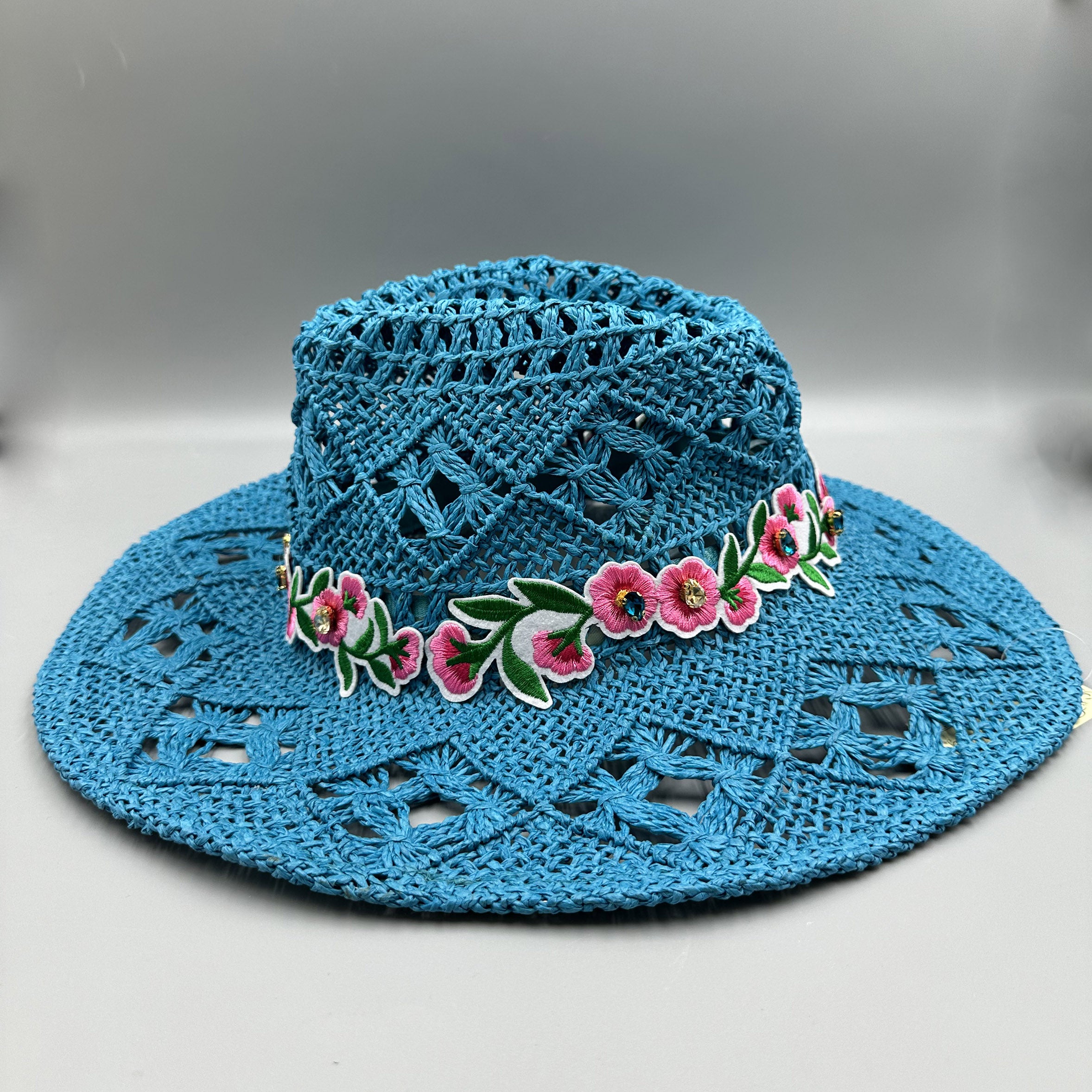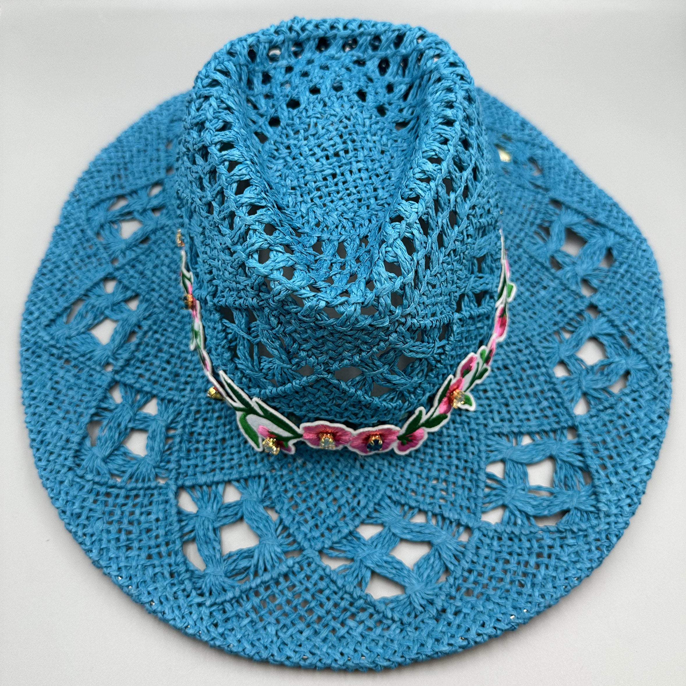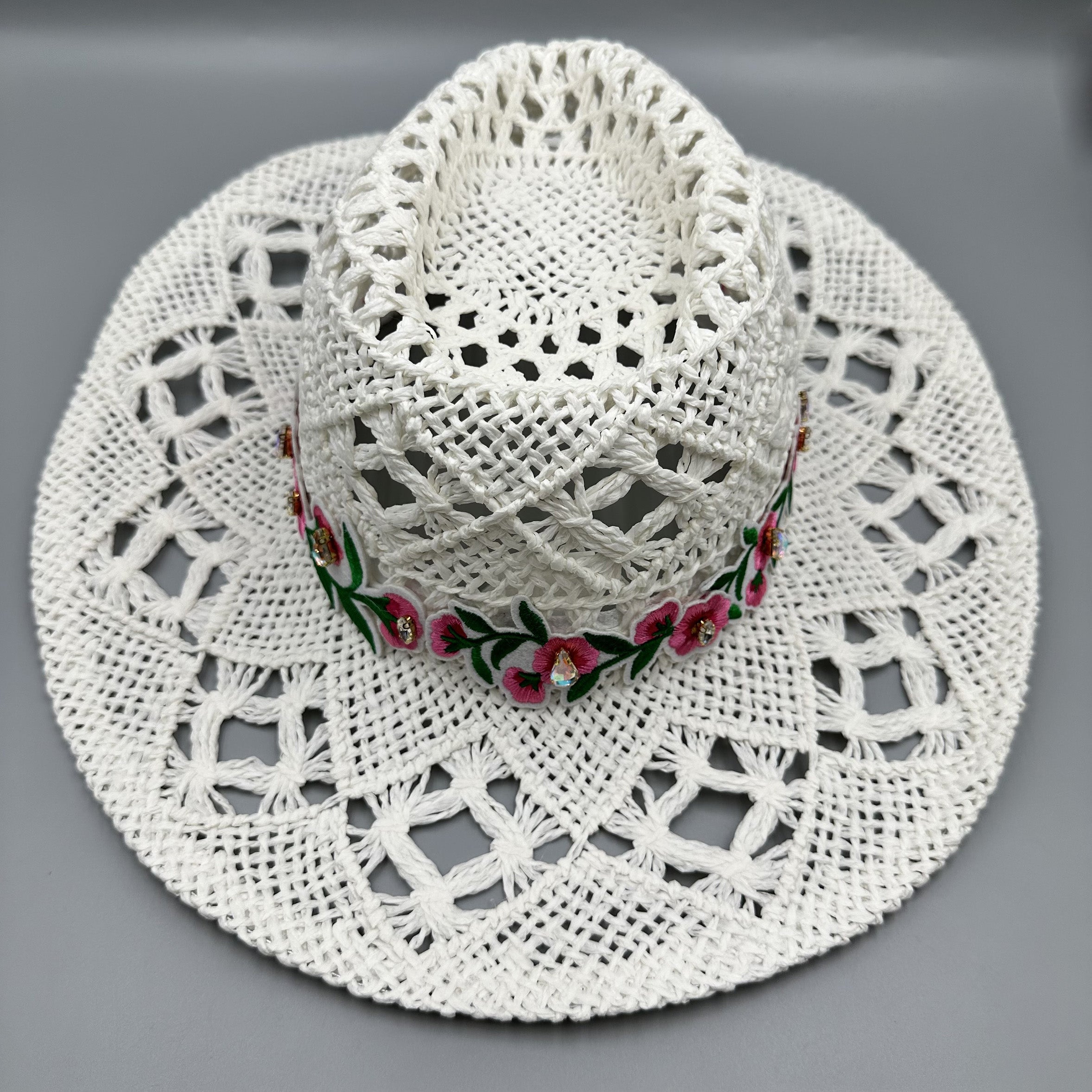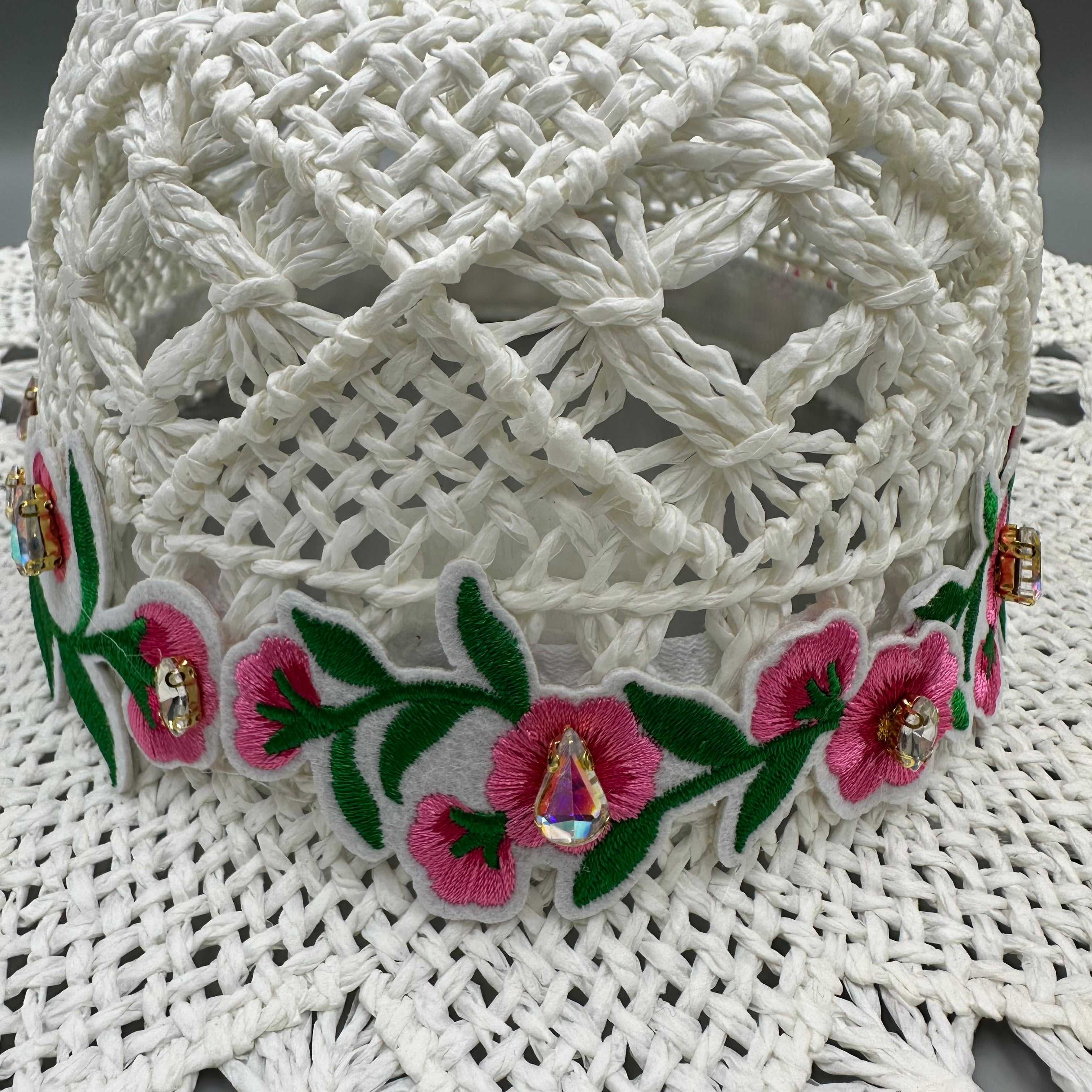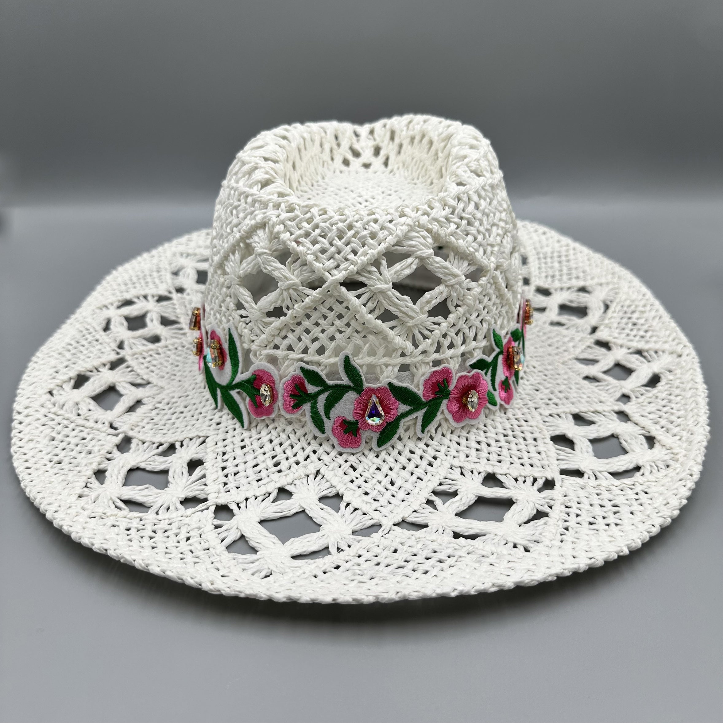 Embroidered Floral Hollow Straw Western Cowboy Hat C0824