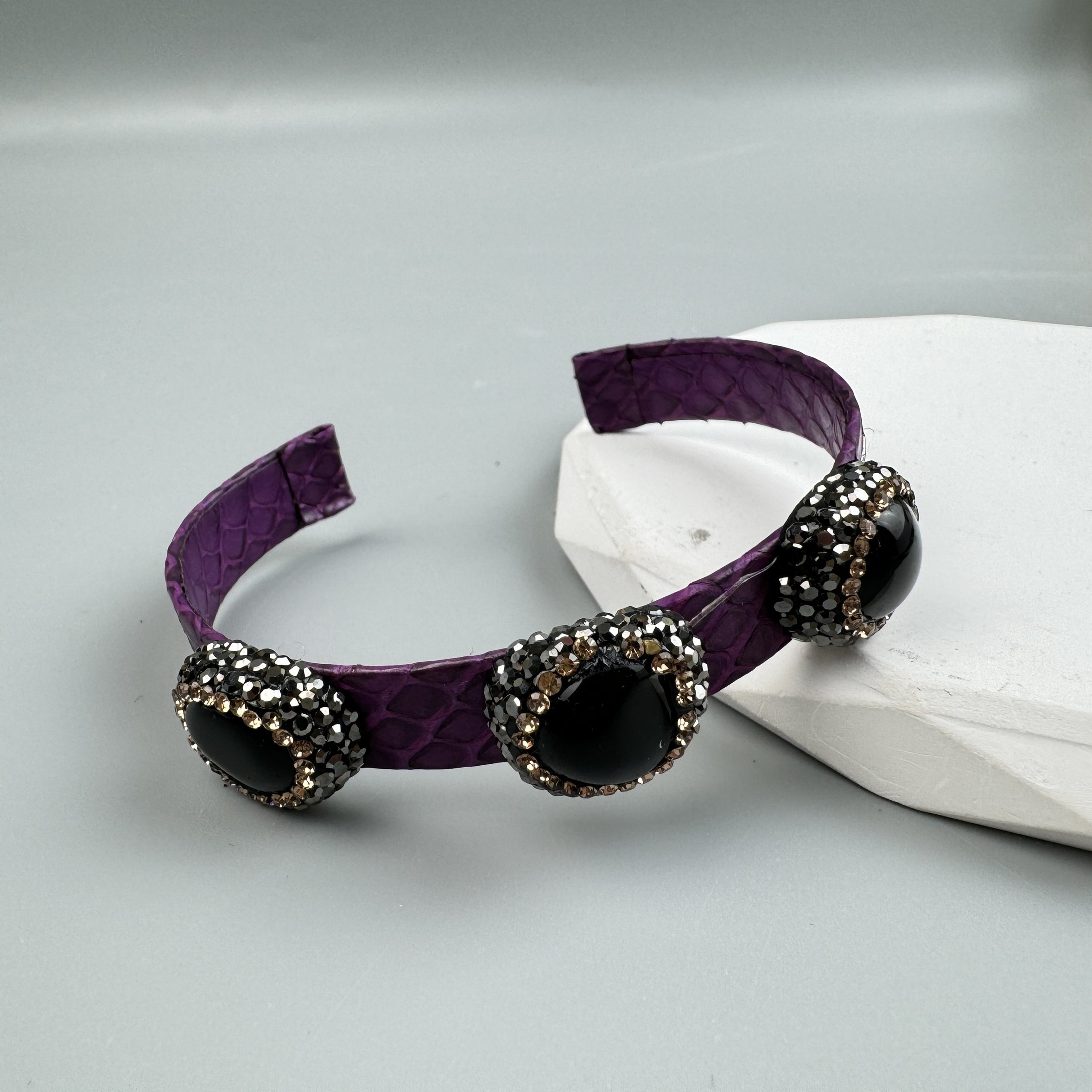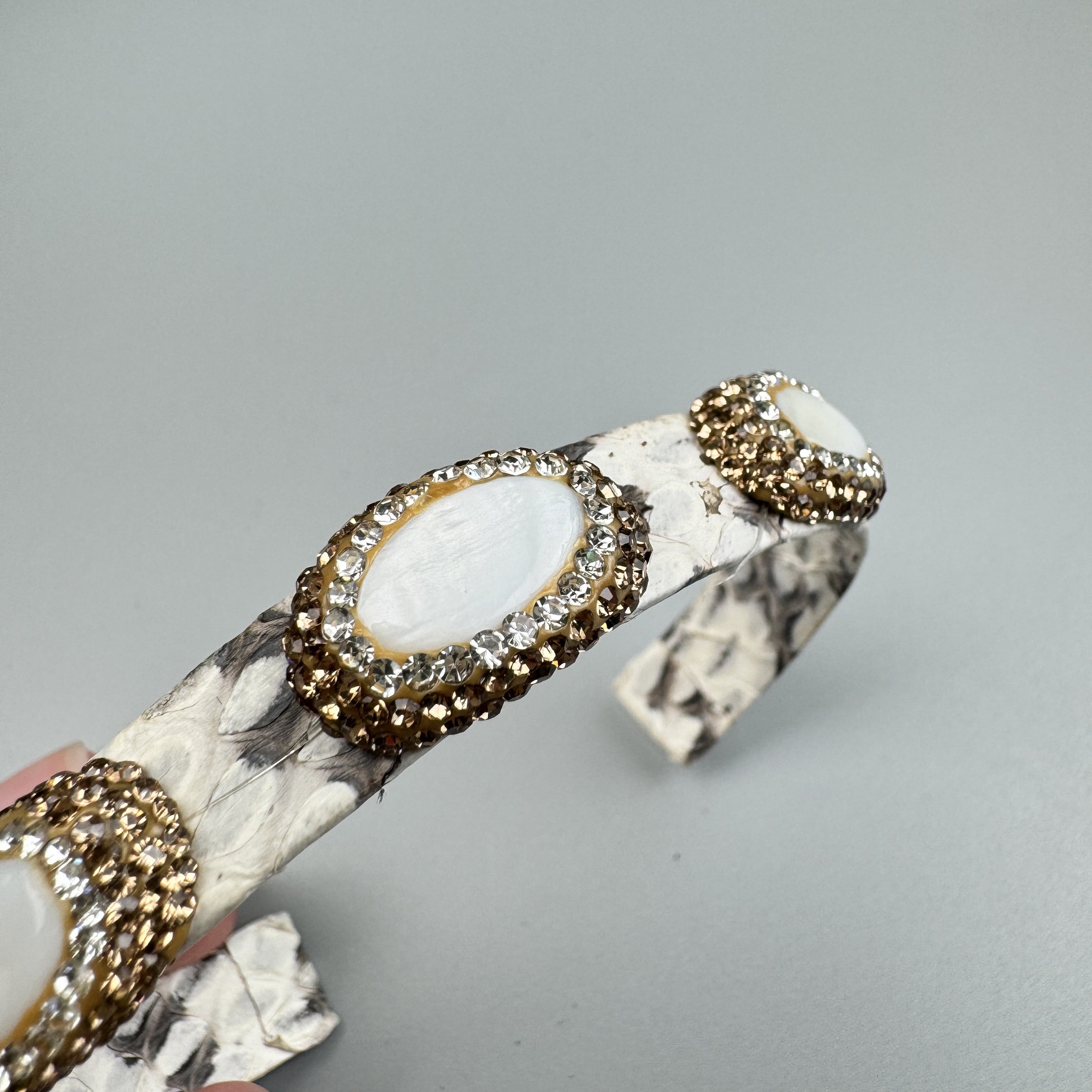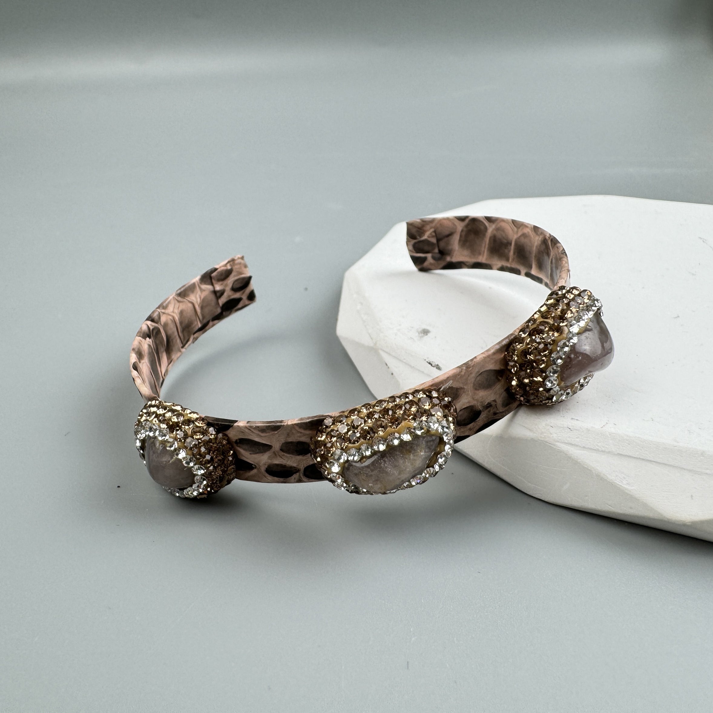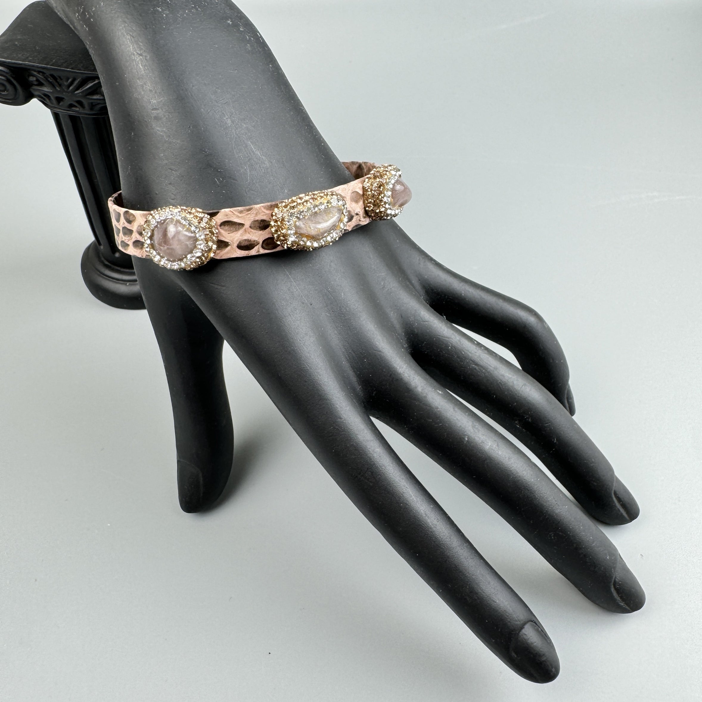 Handmade Natural Stone Rhinestone Leather Cuff Bracelet B4226