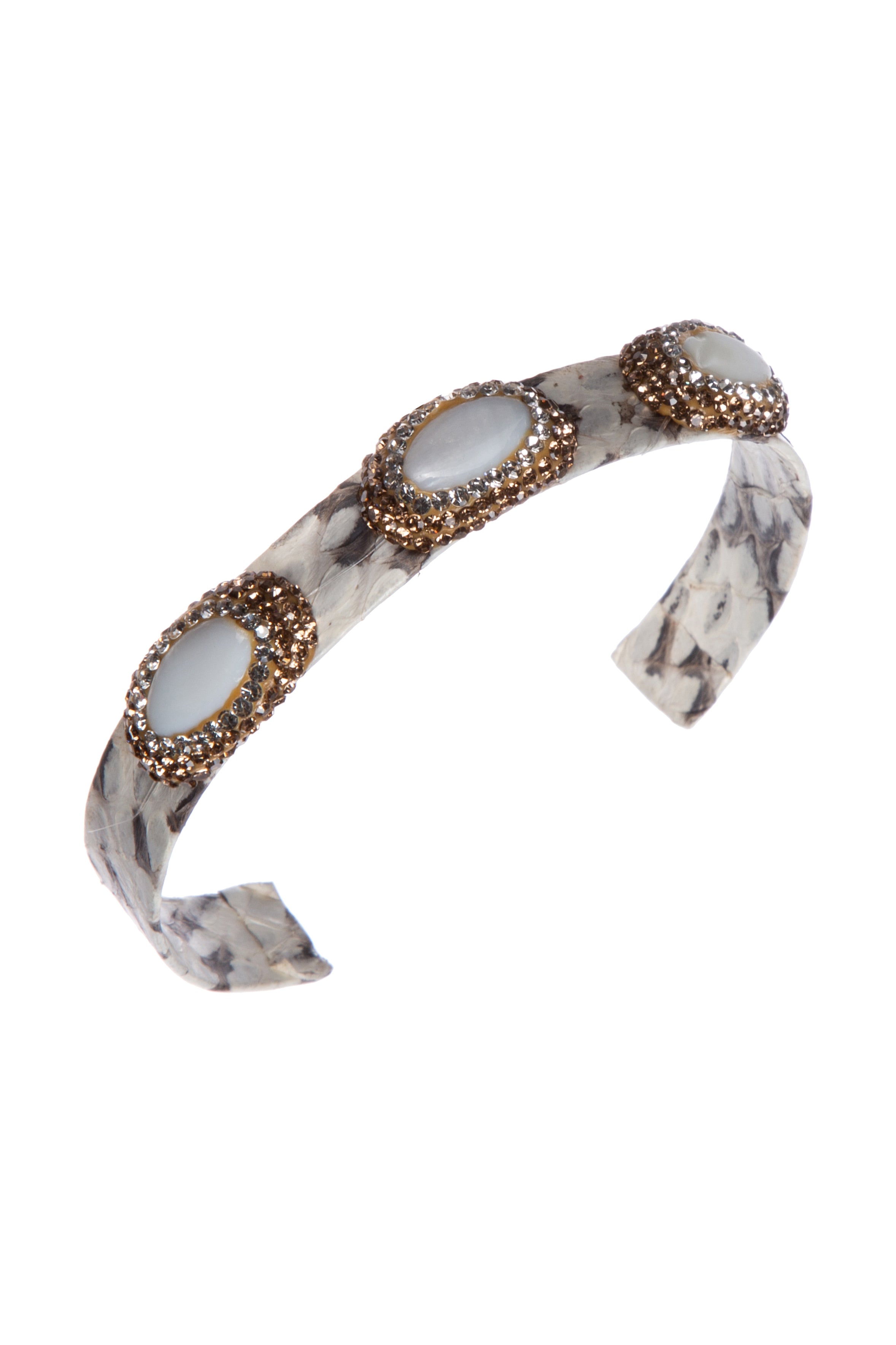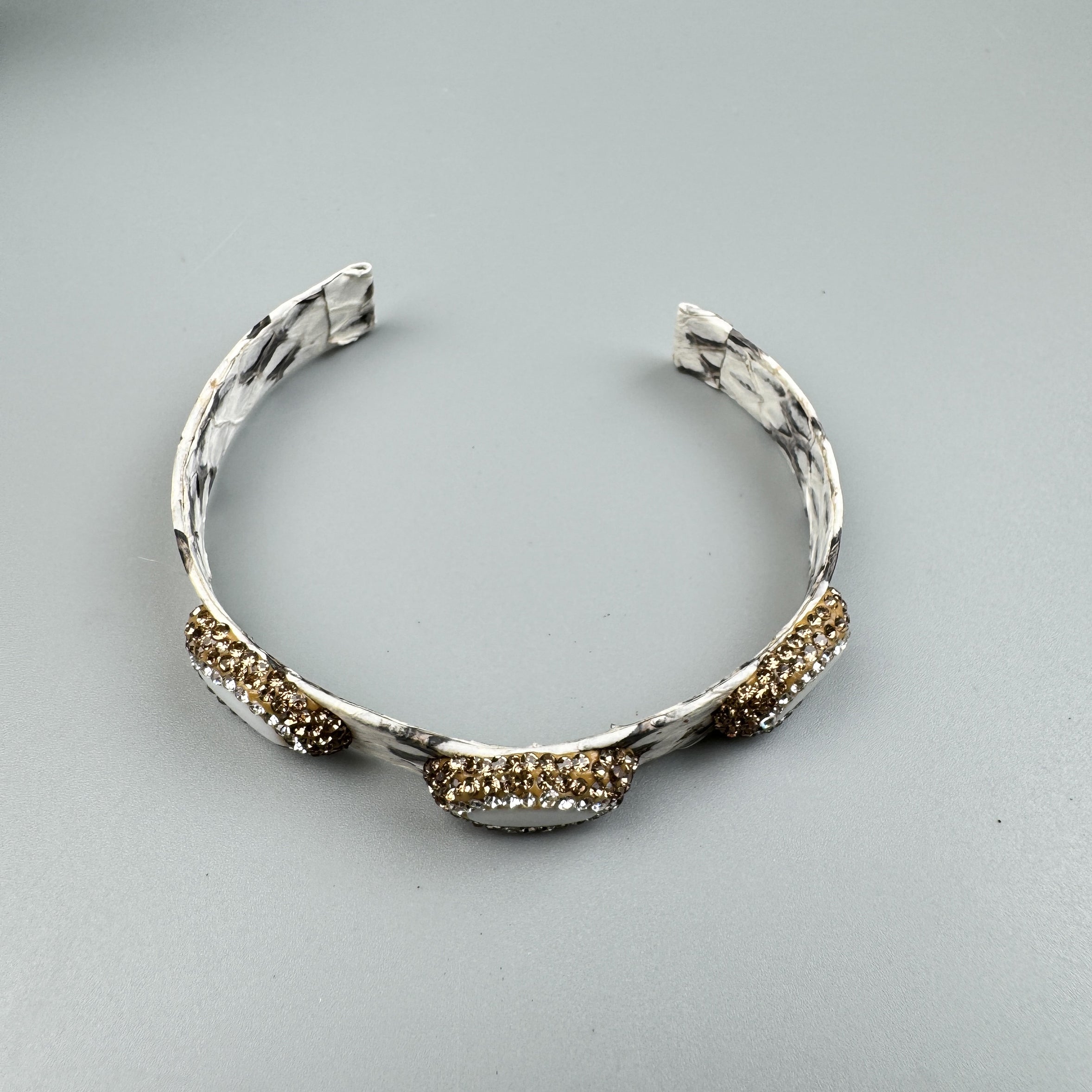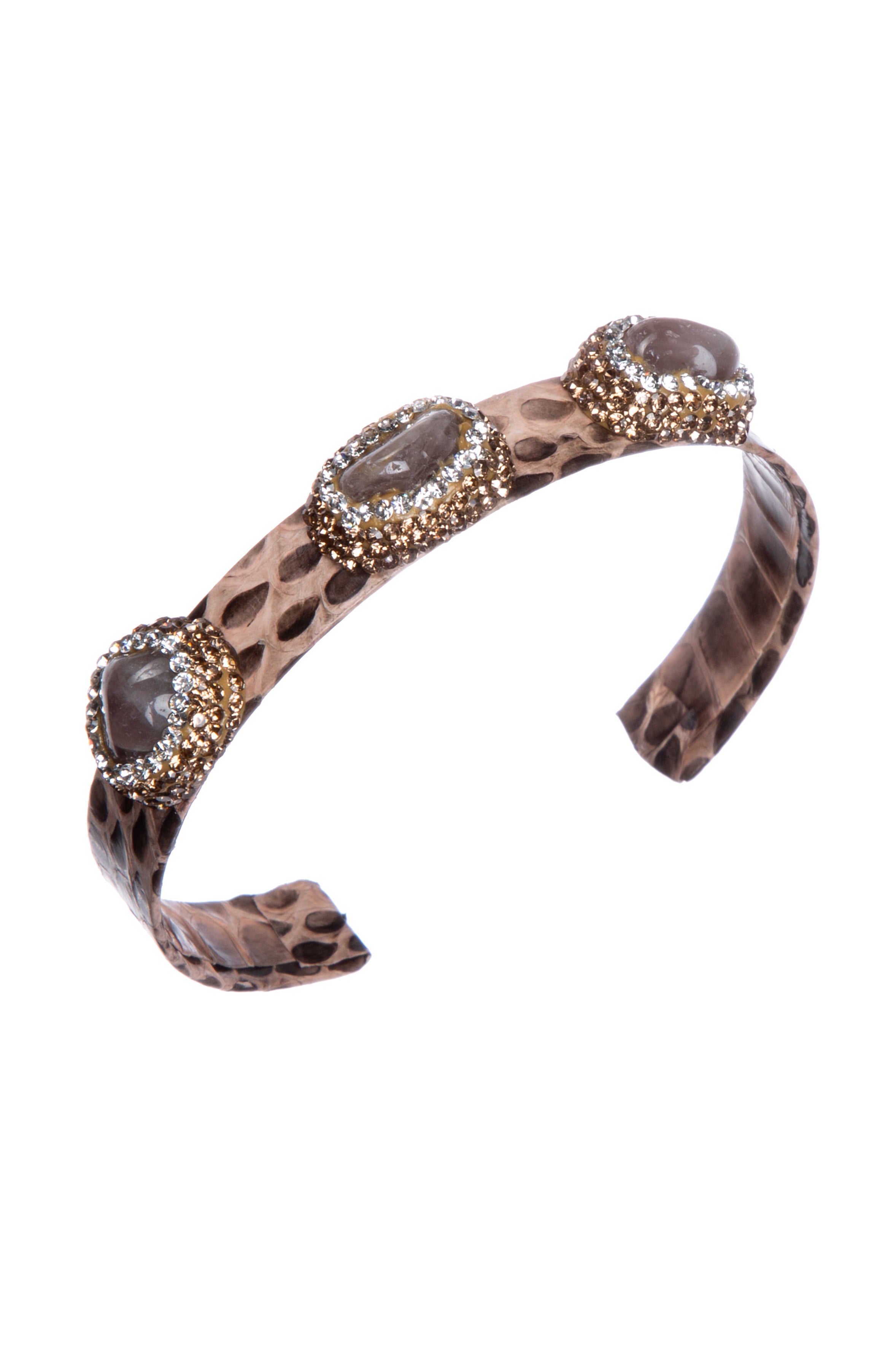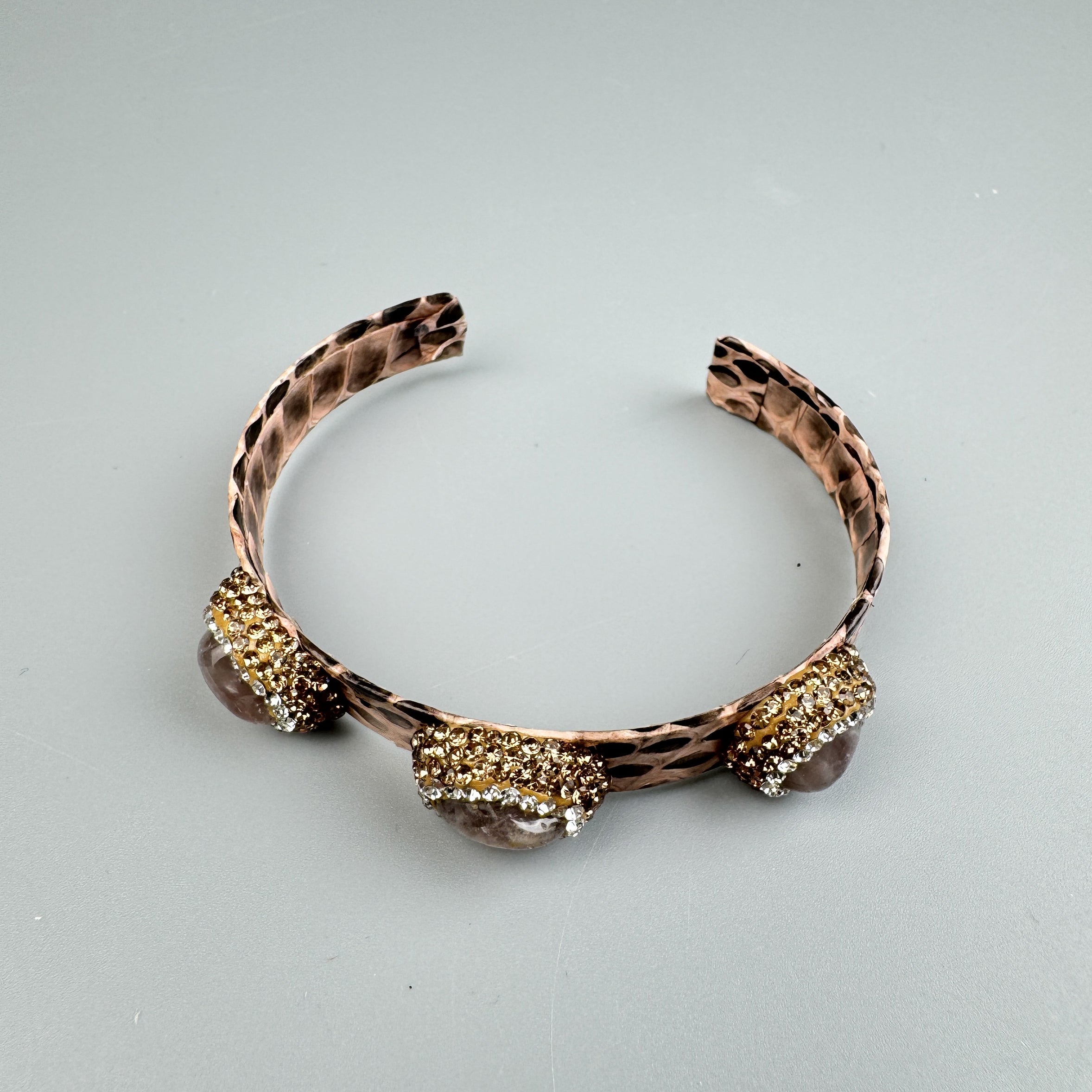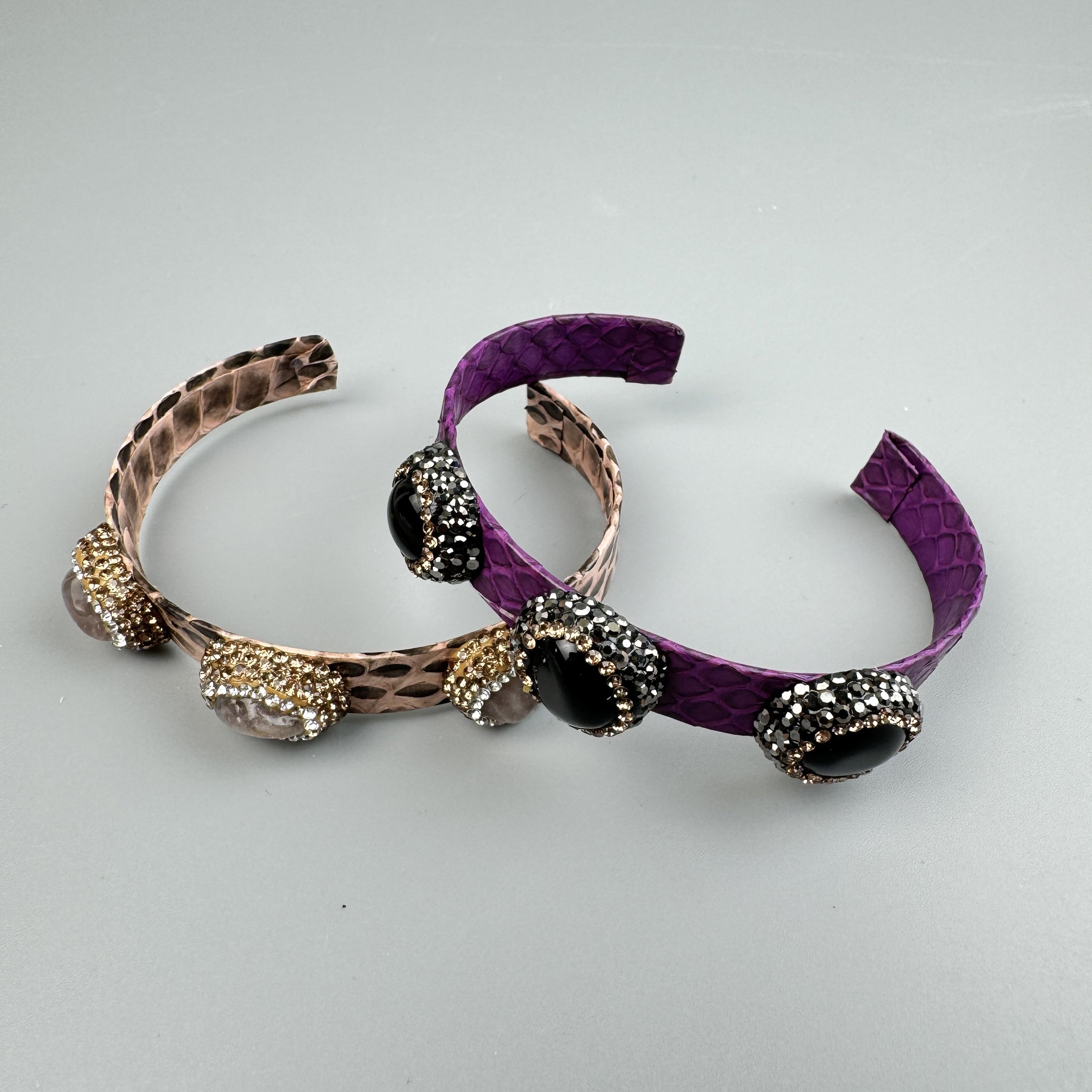 Handmade Natural Stone Rhinestone Leather Cuff Bracelet B4226