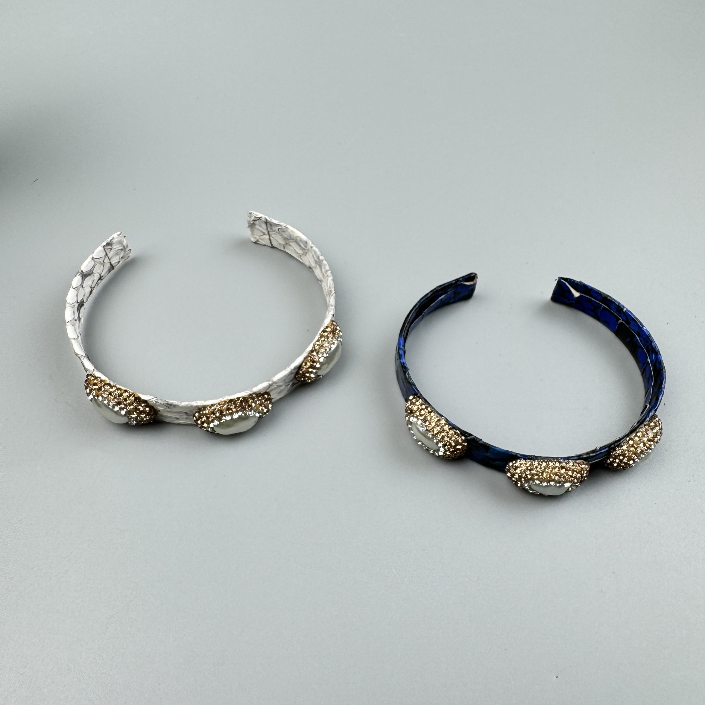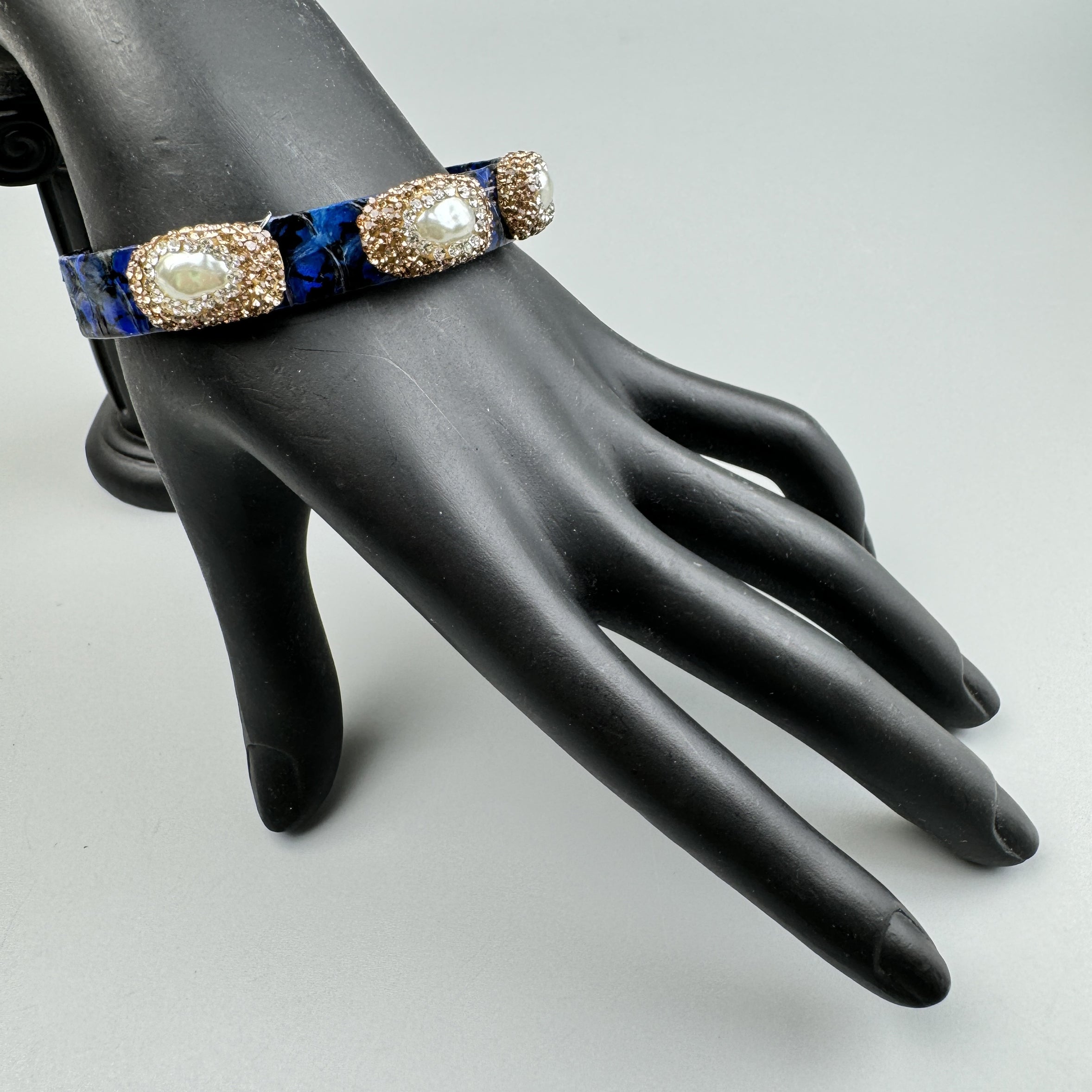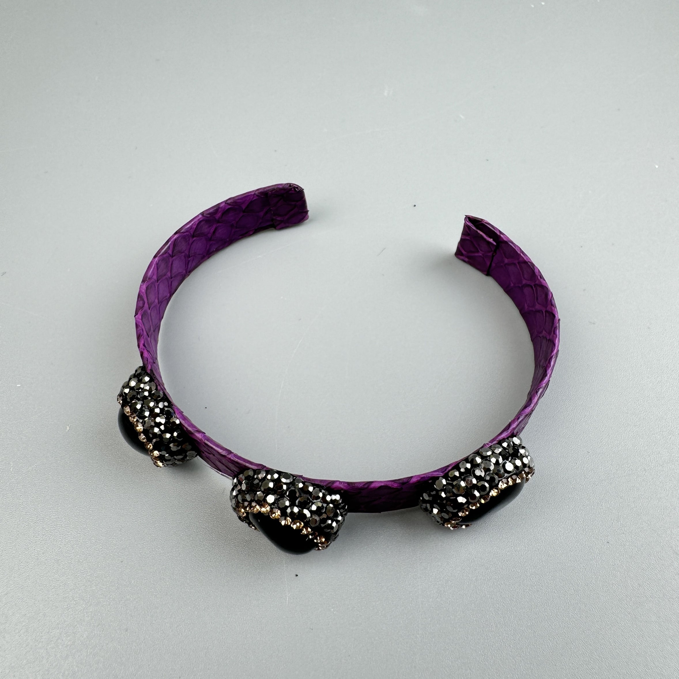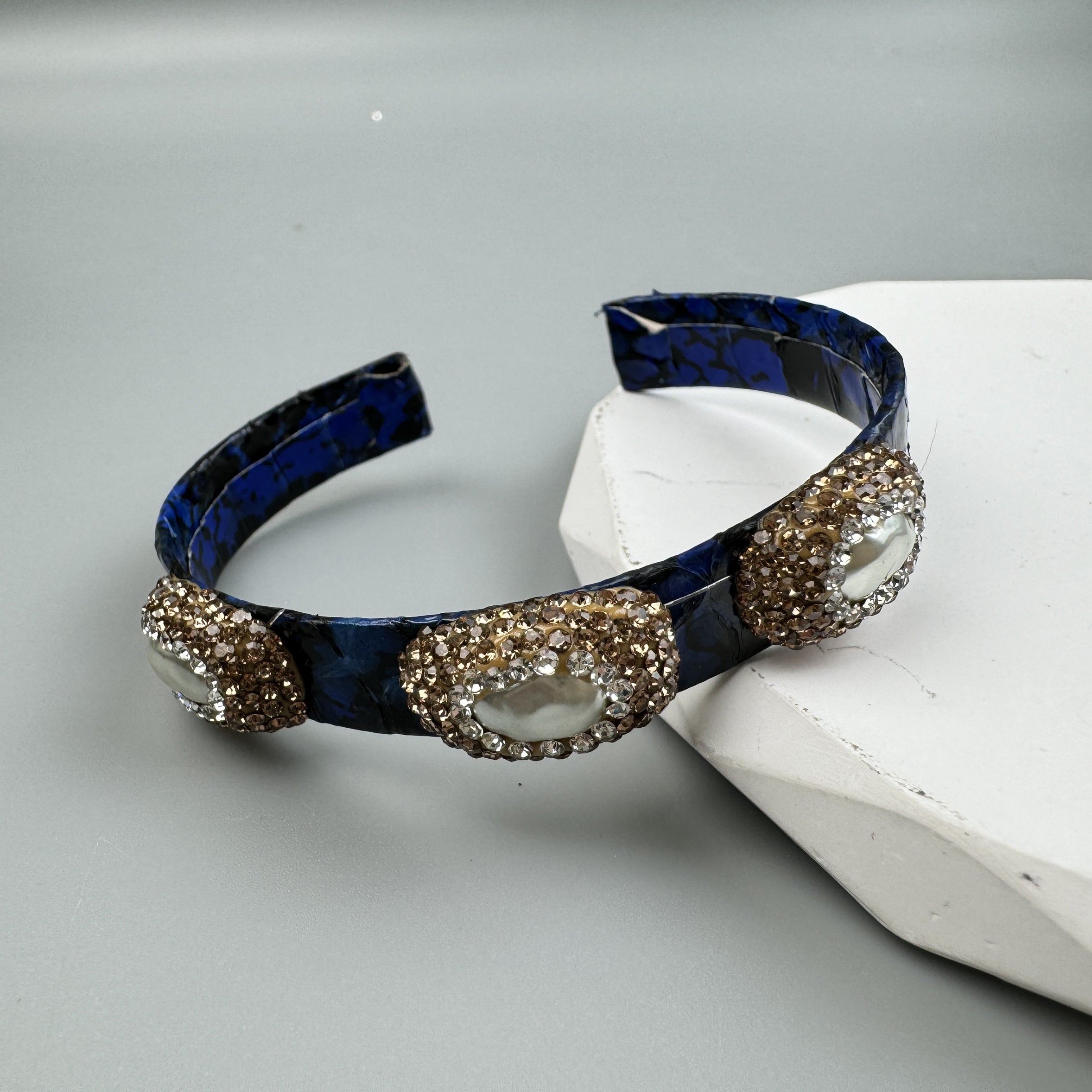 Handmade Natural Stone Rhinestone Leather Cuff Bracelet B4226