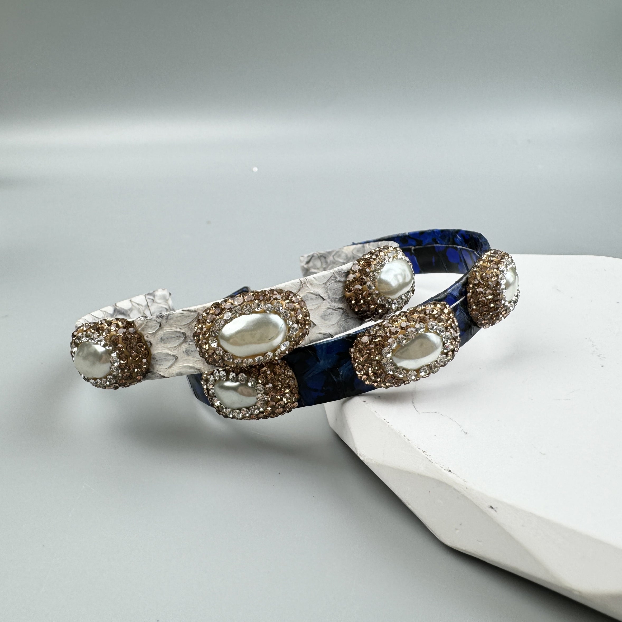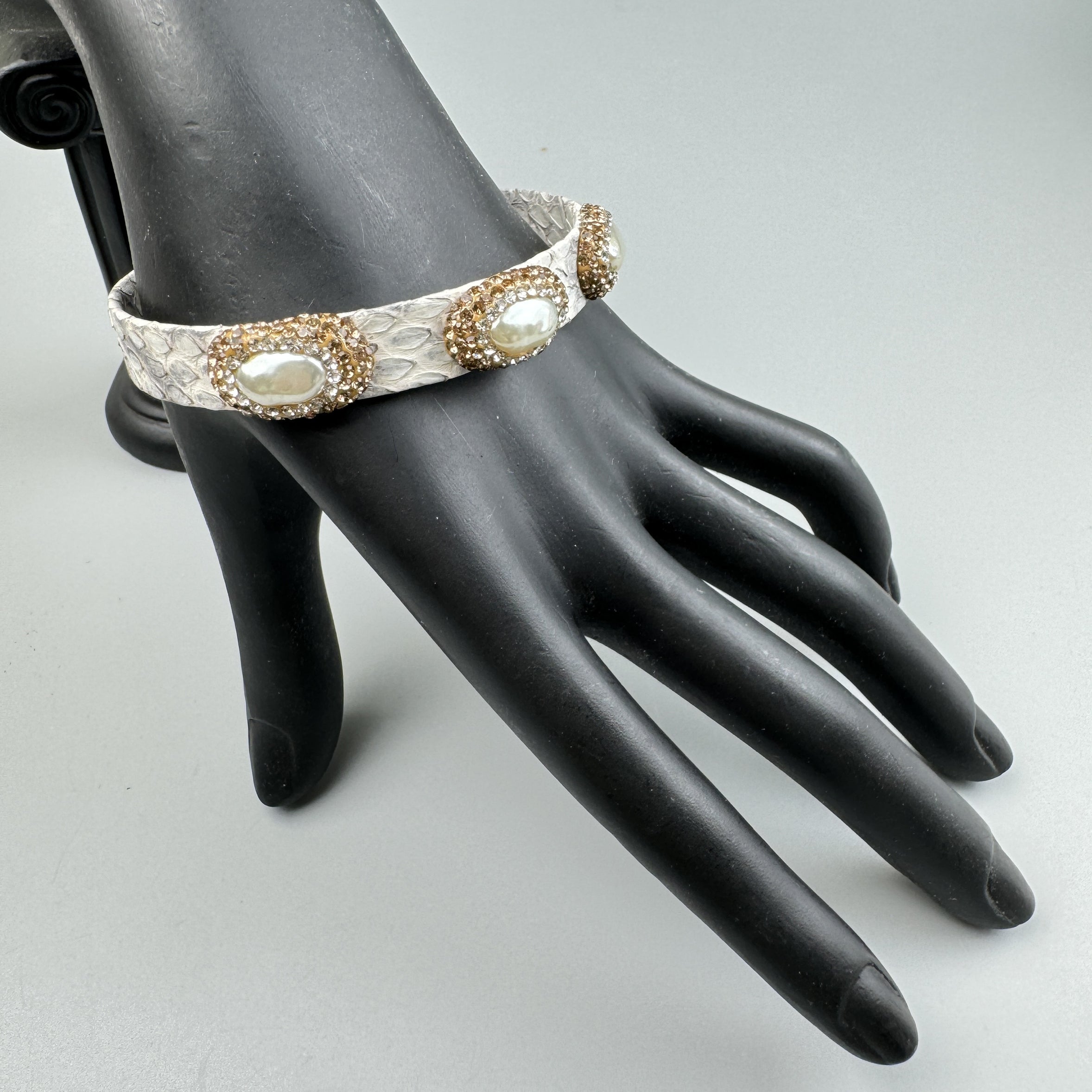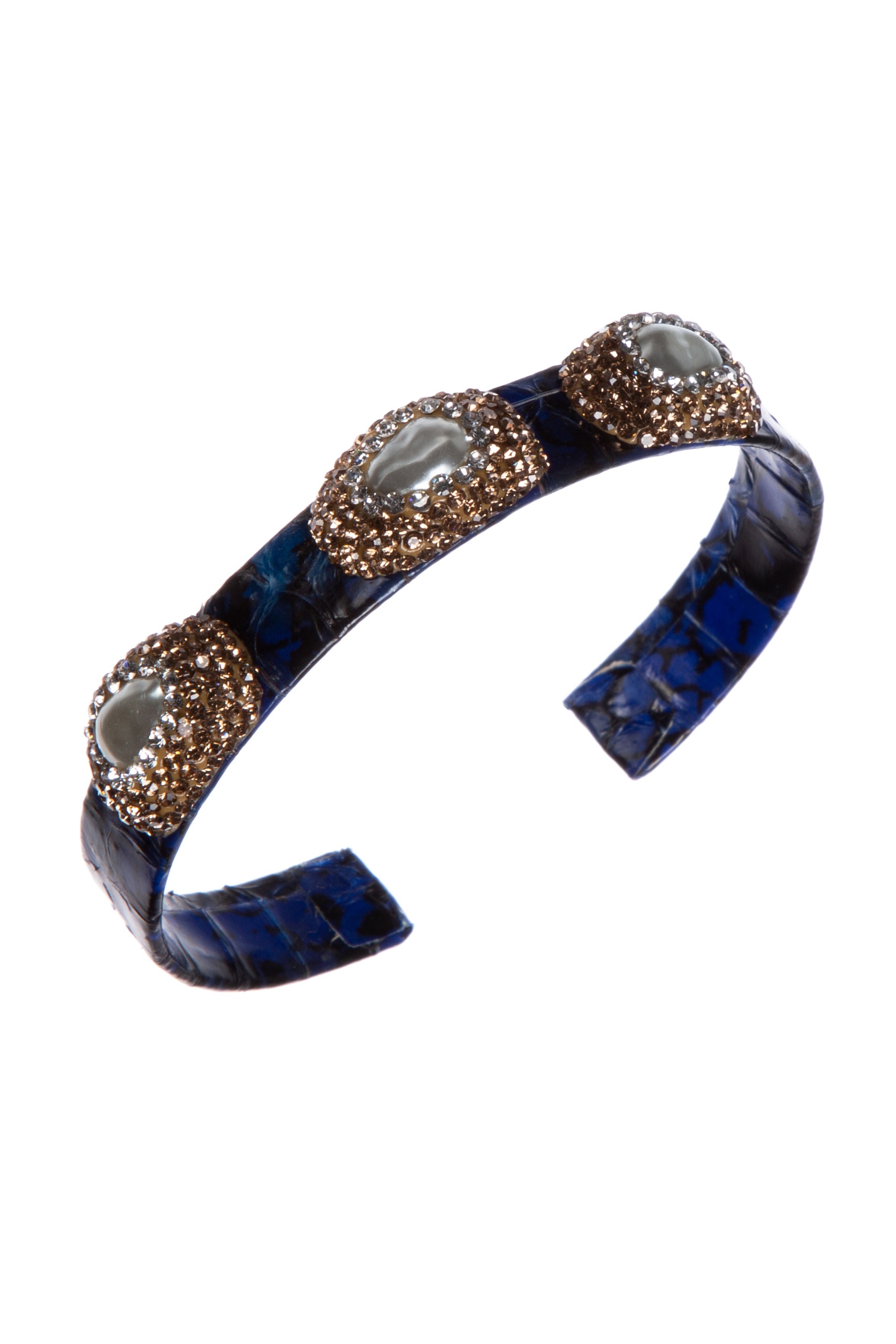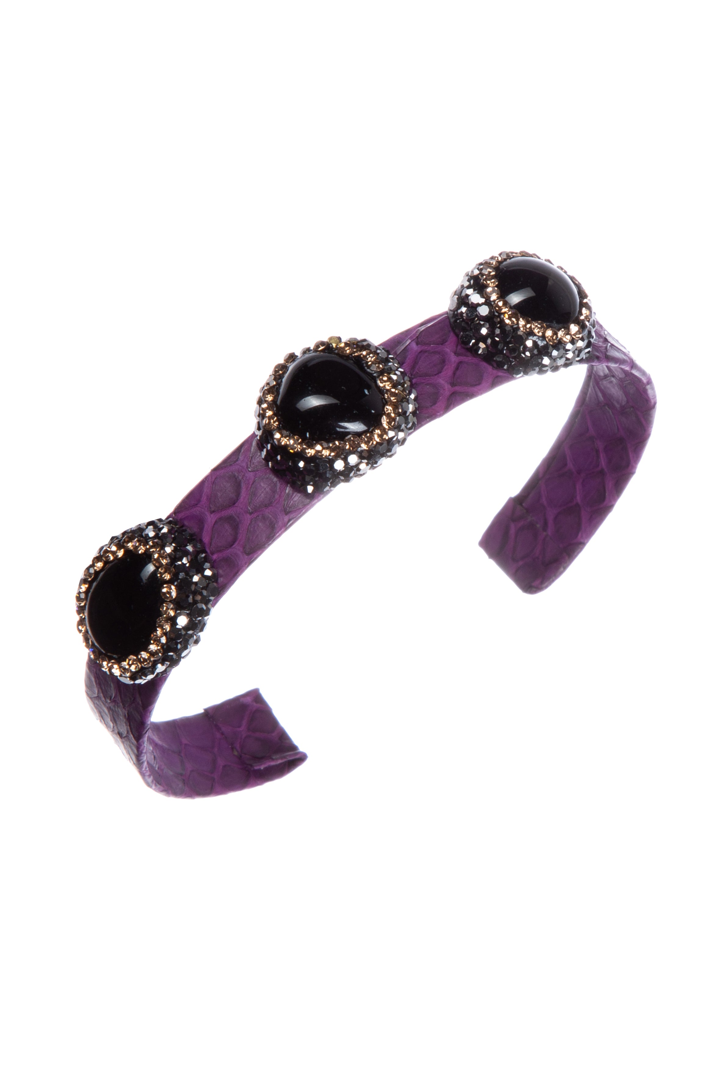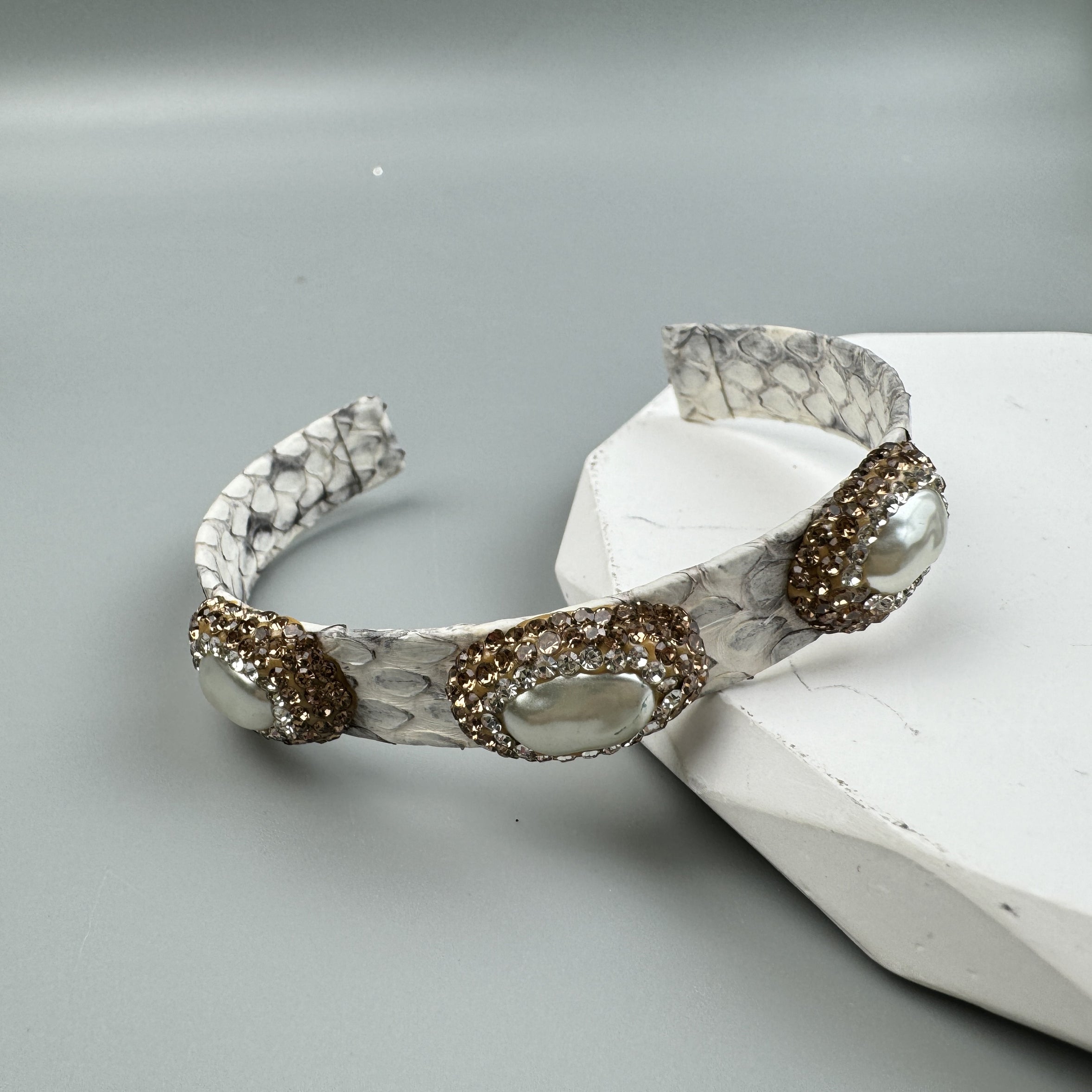Handmade Natural Stone Rhinestone Leather Cuff Bracelet B4226