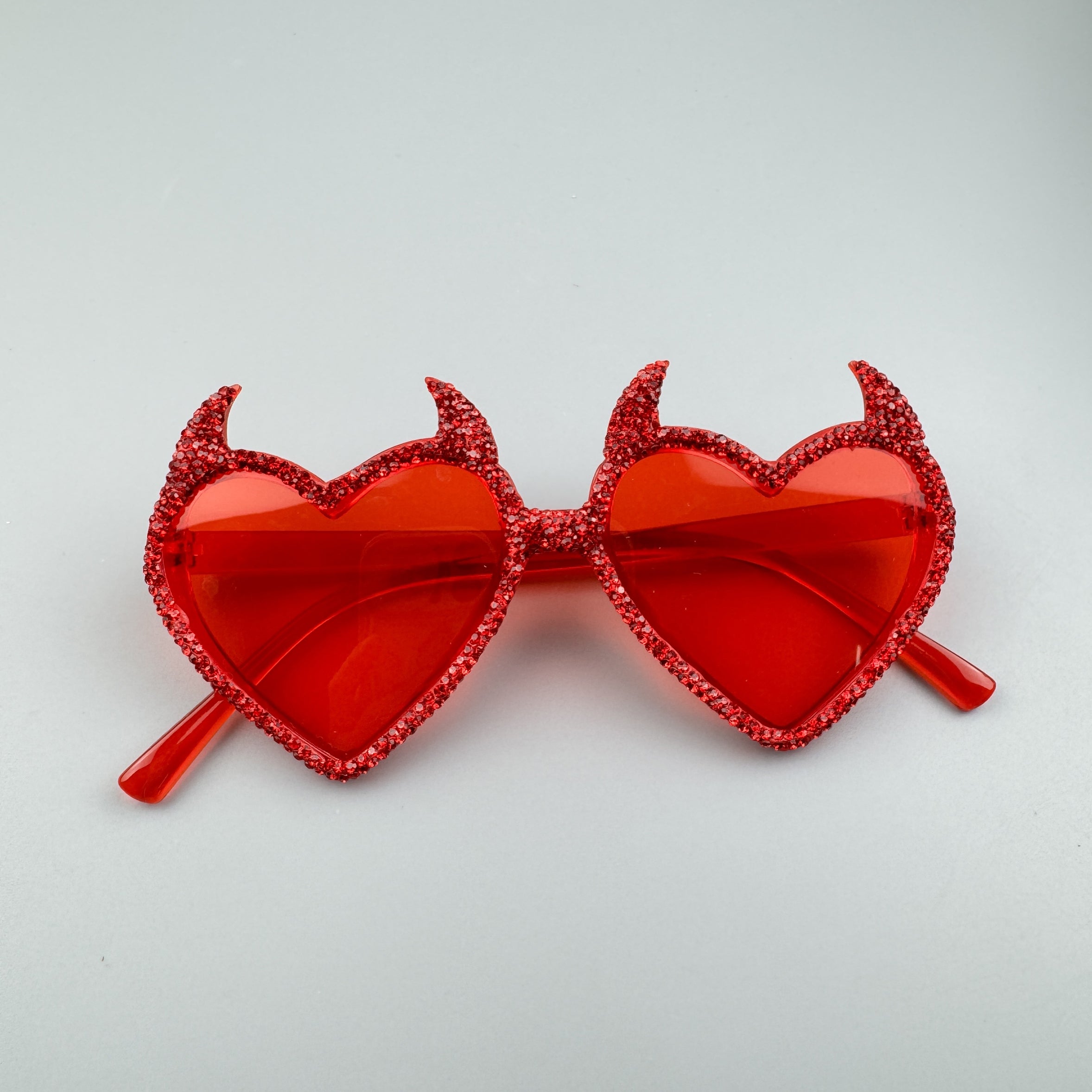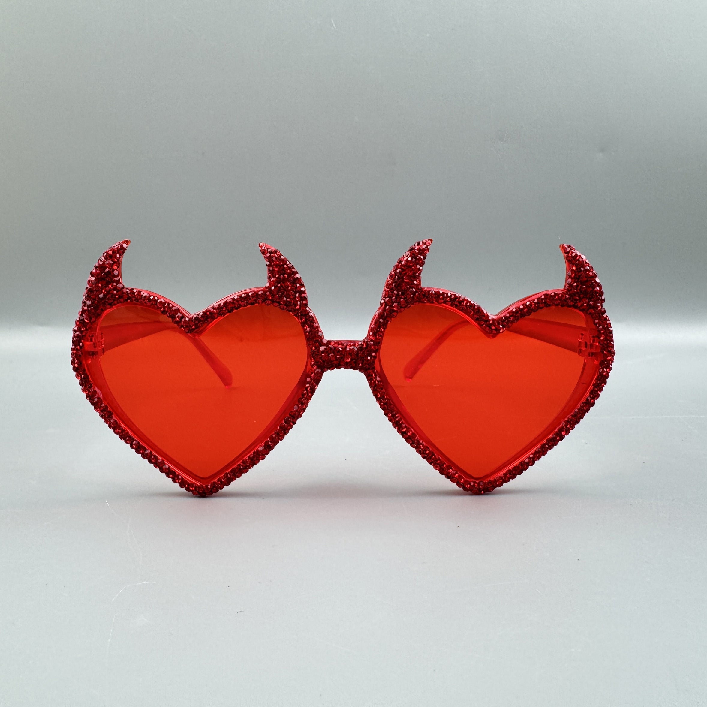 2. Handmade Rhinestone Devil Horn Heart Party Eyeglasses G0535