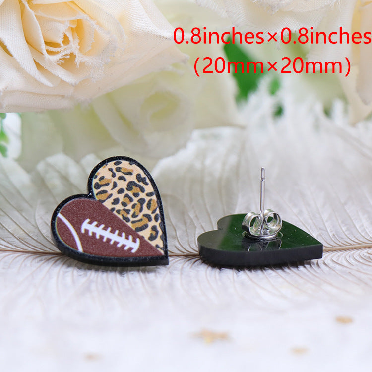 Heart Football Animal Printed Acrylic Earrings E7198