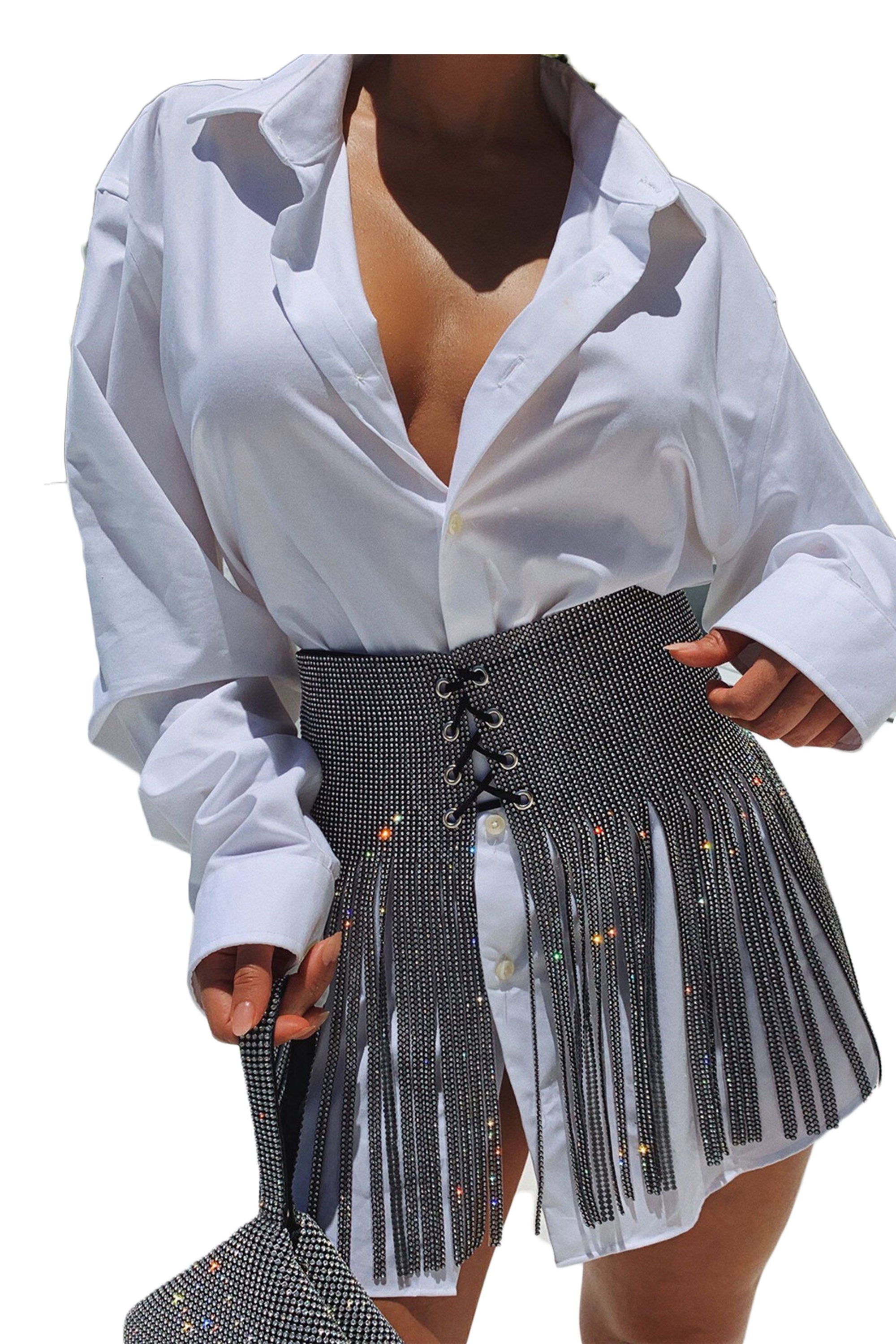 Hollow Tassel Rhinestone Girdle Skirt WA0094