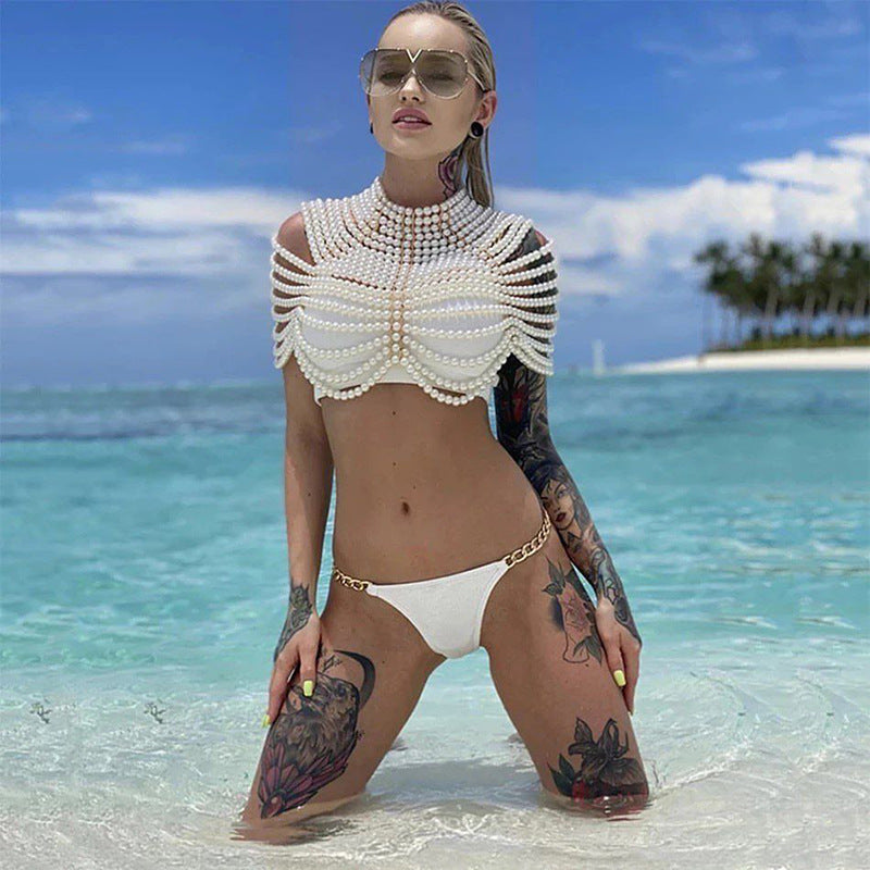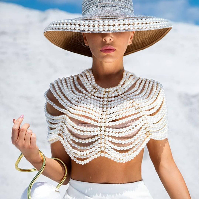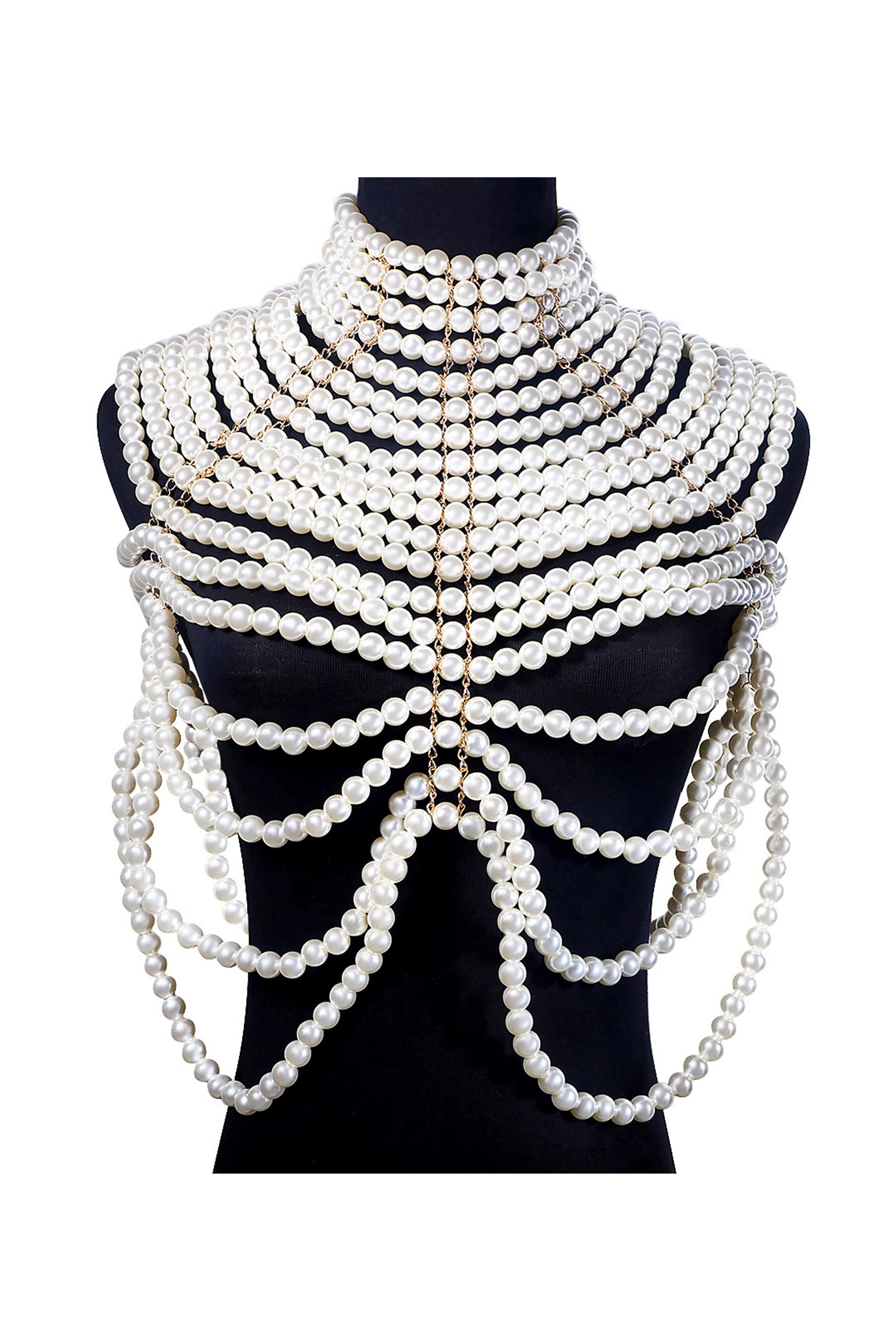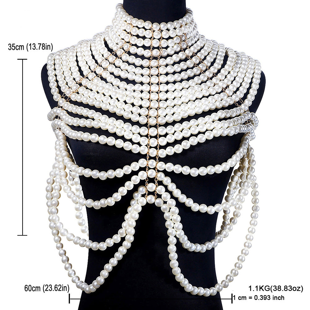 Explore new depths of daring with our Multilayer Pearl Body Chain A0300. Made with high-quality resin and adorned with lustrous pearls, this body chain is sure to make a statement. Measuring 35*60 CM and weighing 1.1kg, it's the perfect accessory for your bold and adventurous style!