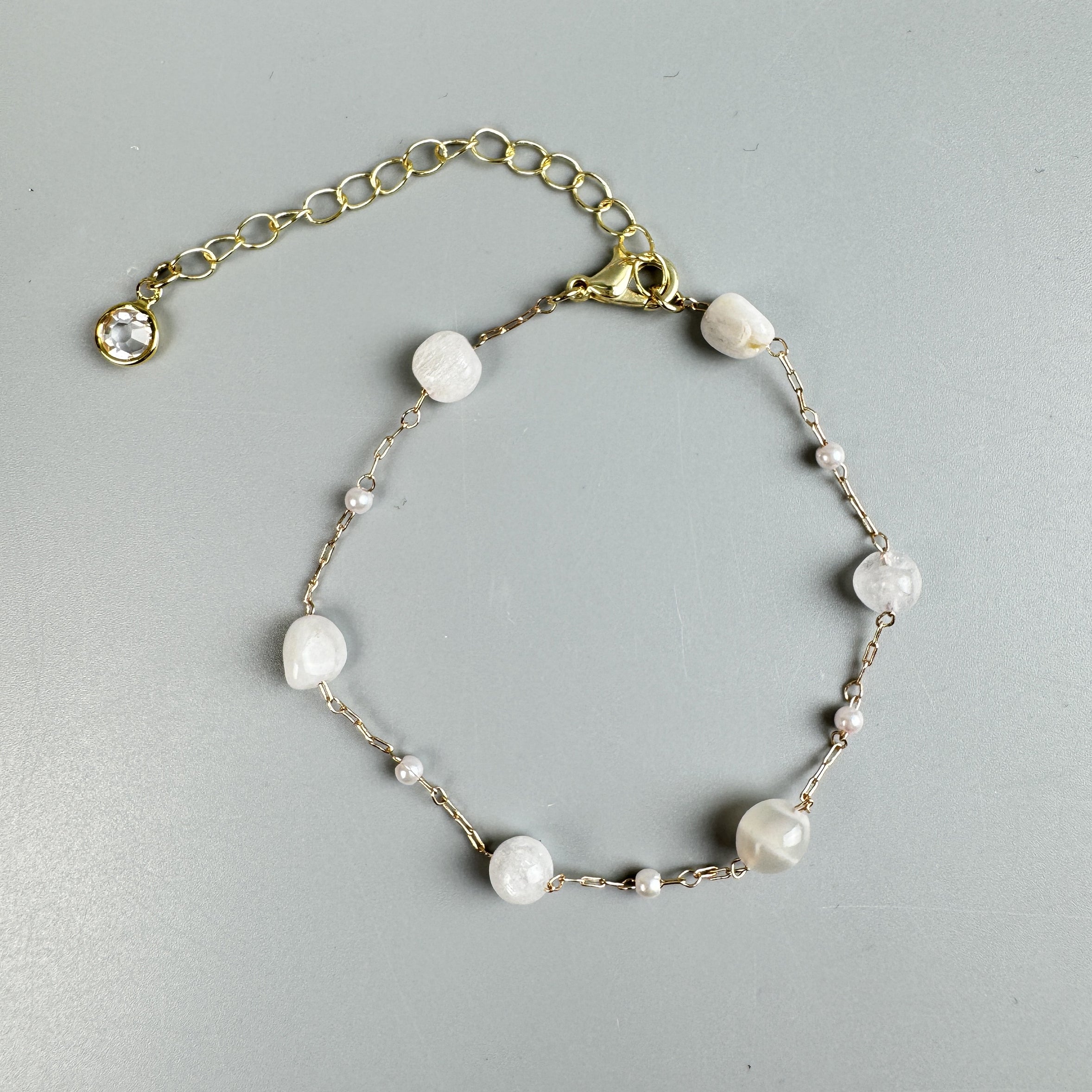 Natutal Stone Pearl Chain Bracelet B3328