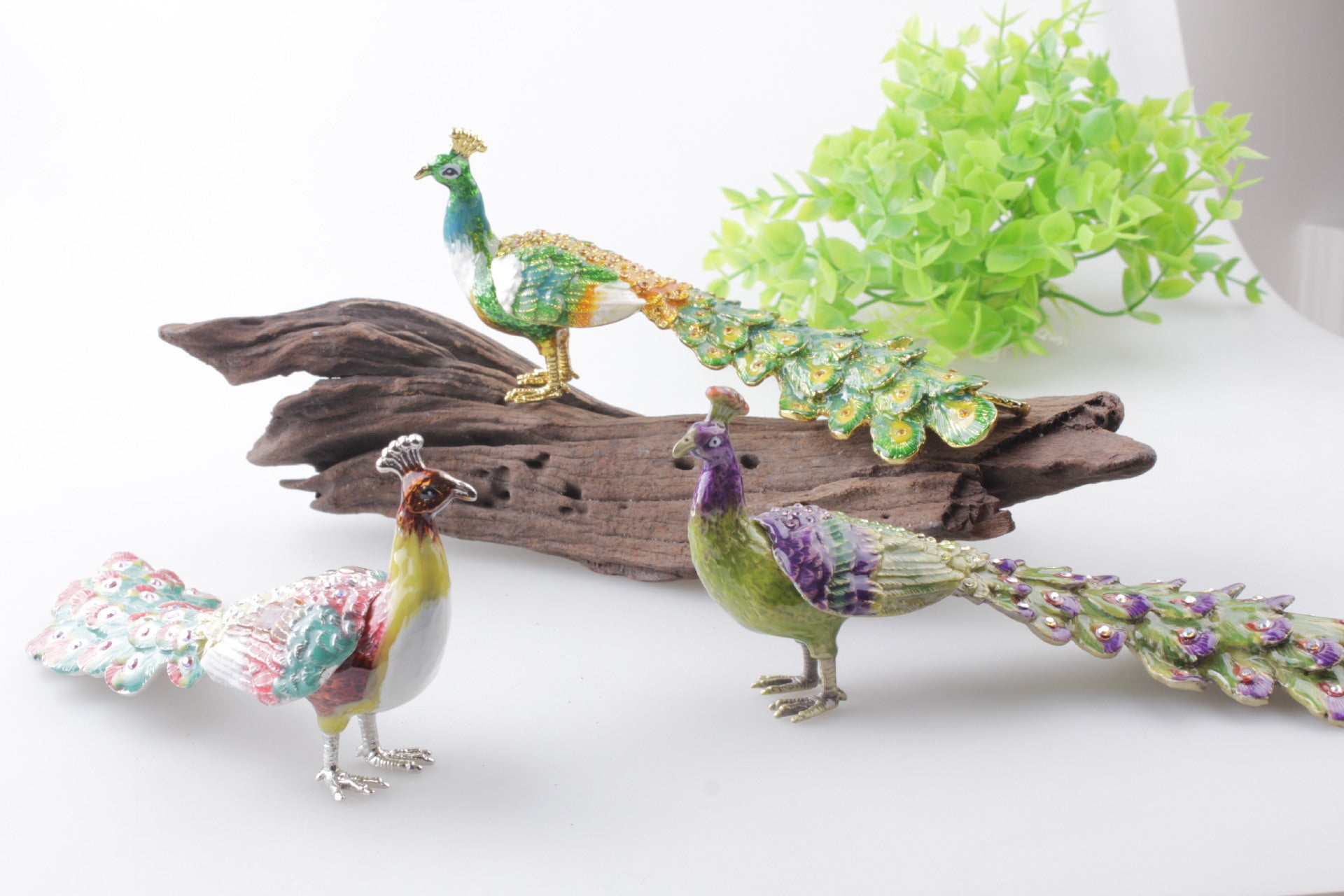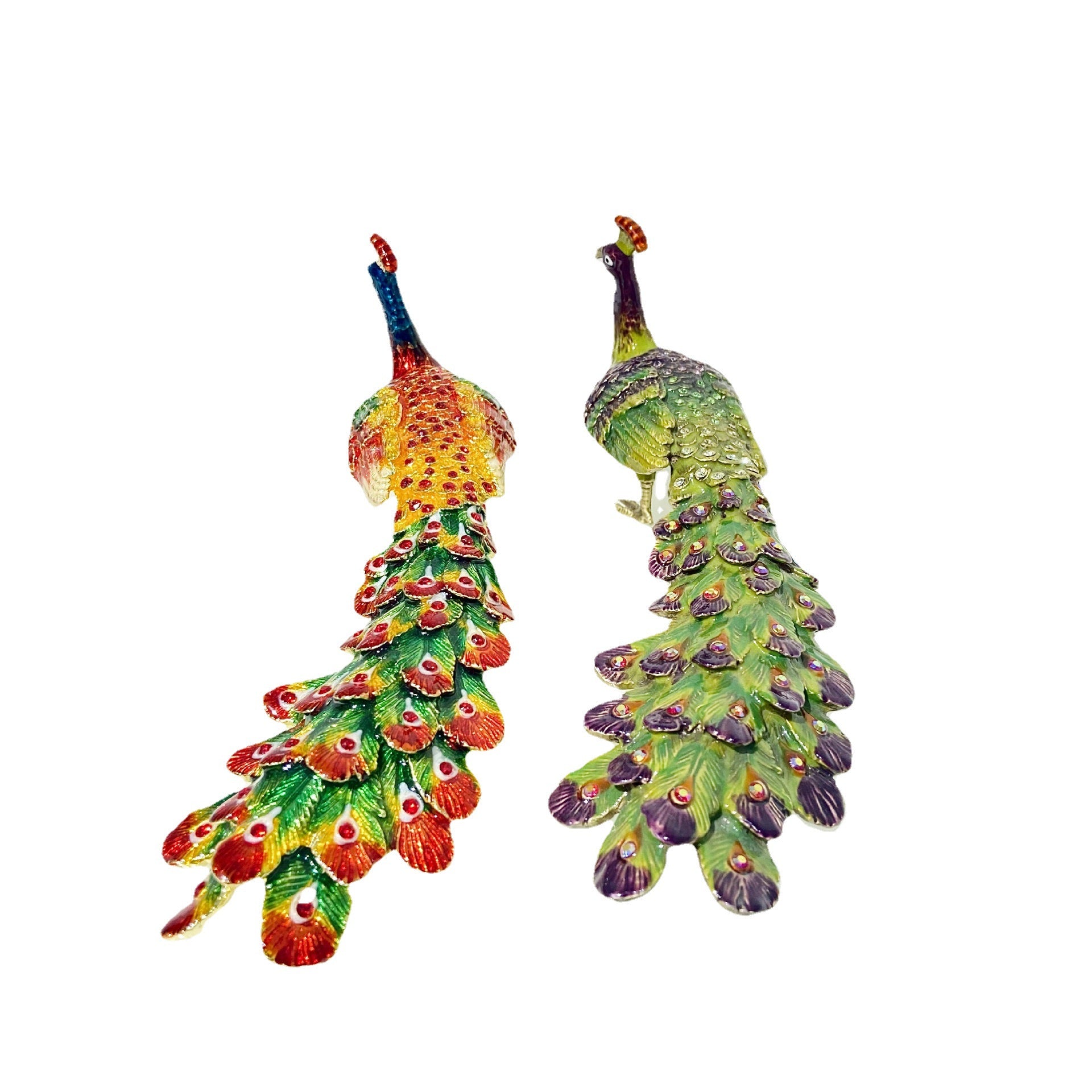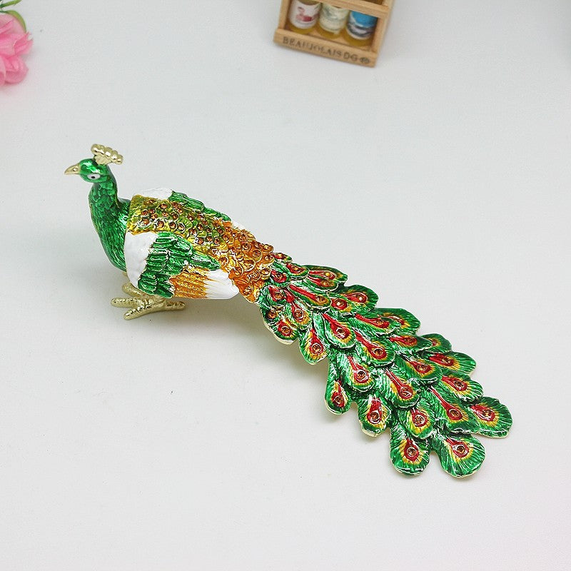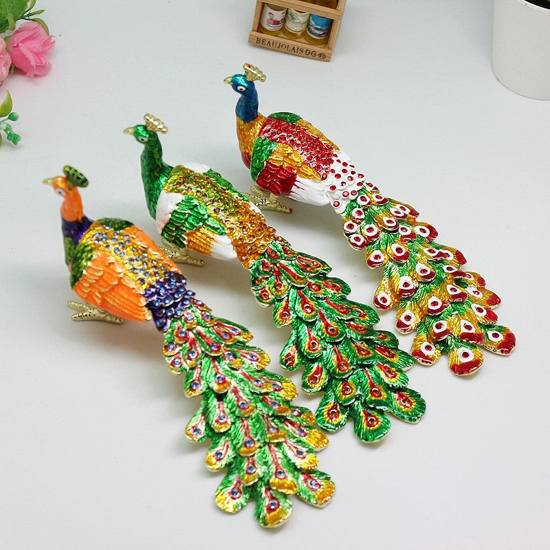 Add a touch of whimsy to your home decor with our Peacock Alloy Enamel Jewelry Box Ornament! Made of durable alloy, this intricate piece doubles as a functional jewelry box. Perfect for storing your favorite baubles, it also makes a great conversation starter.