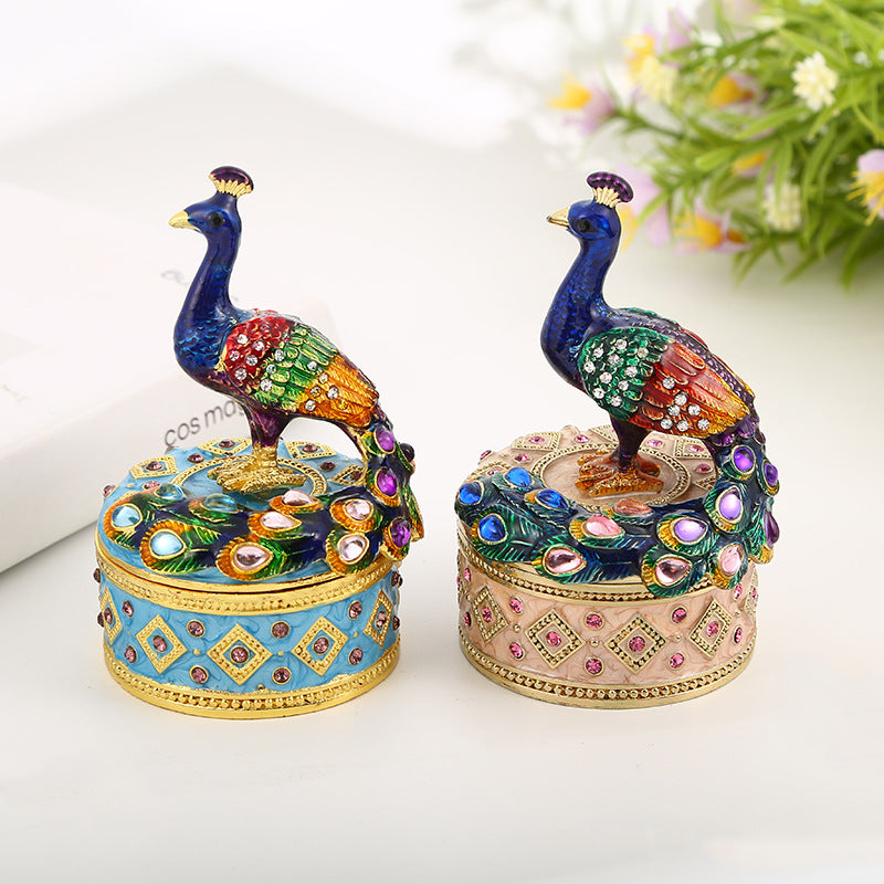 Peacock Rhinestone Jewelry Box Ornaments W1804