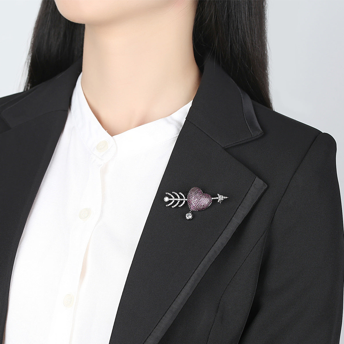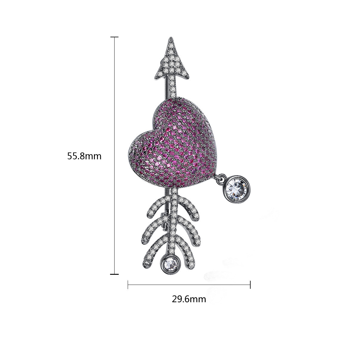 Piercing Arrow Heart Cubic Zirconia Brooch PA4392