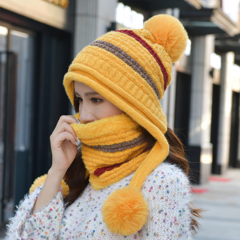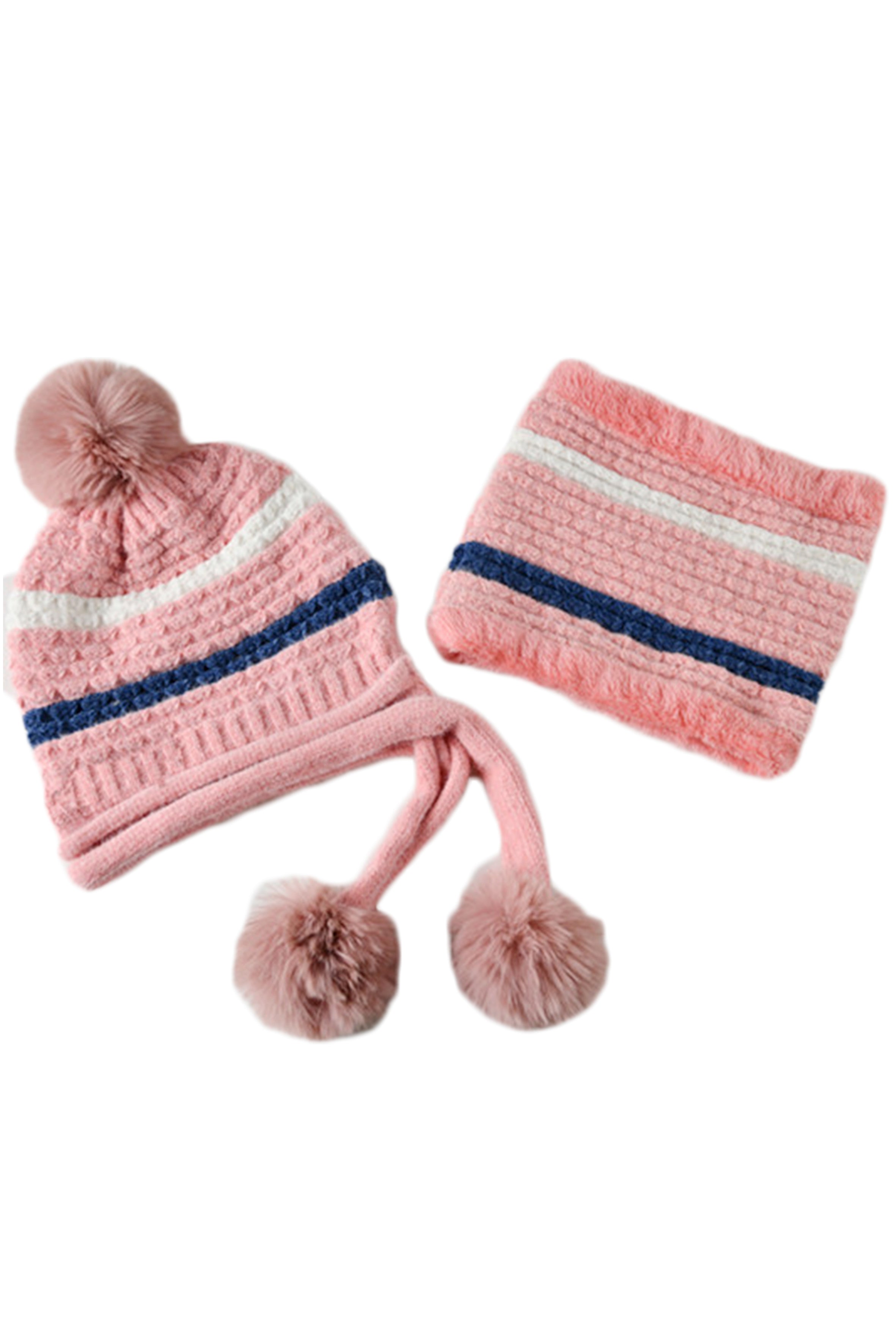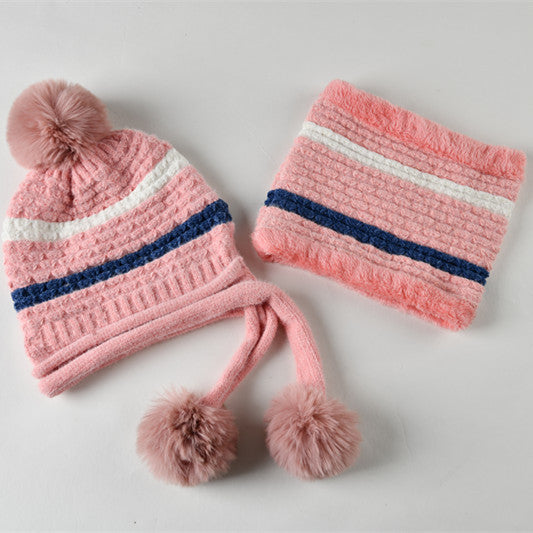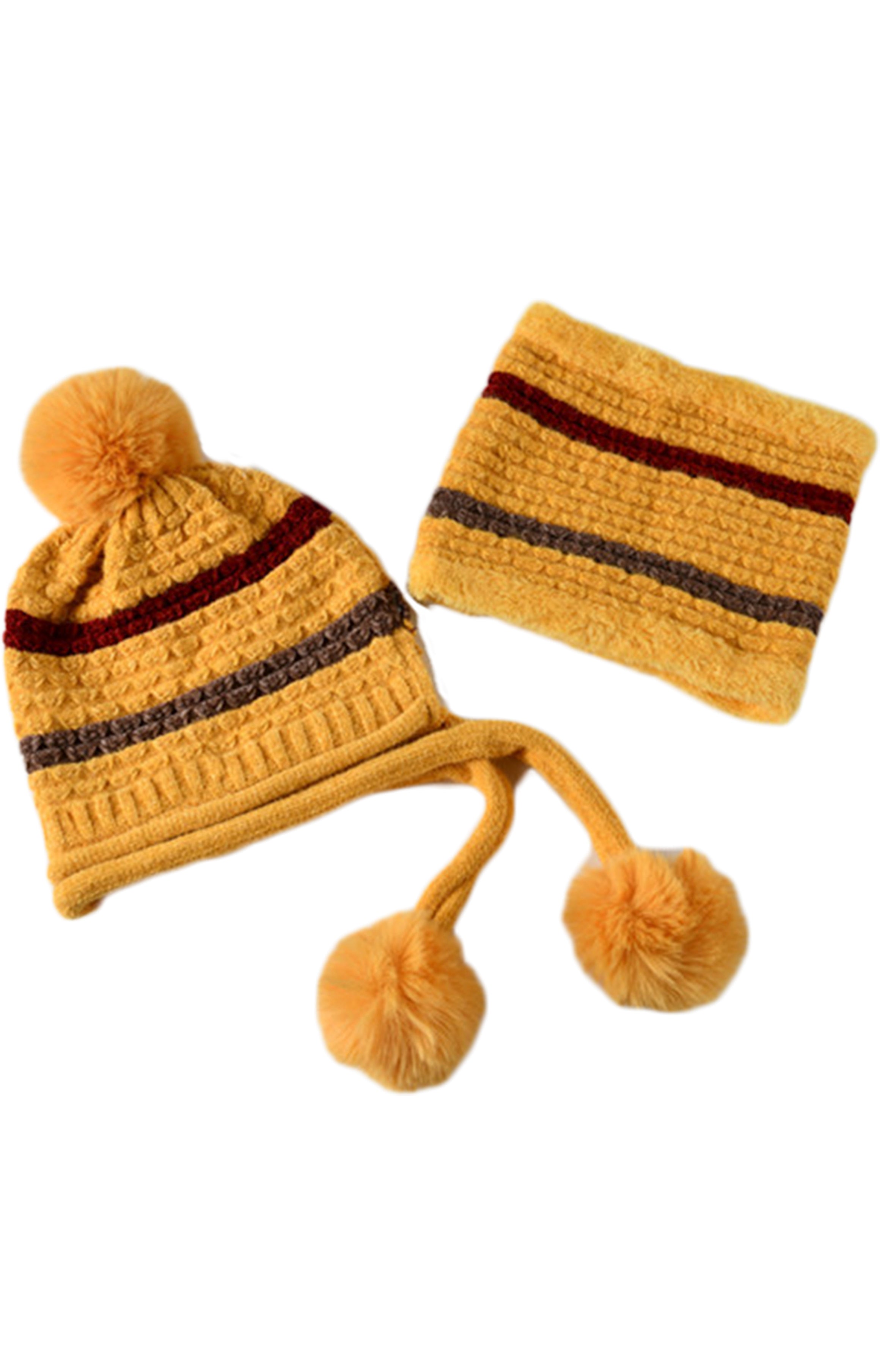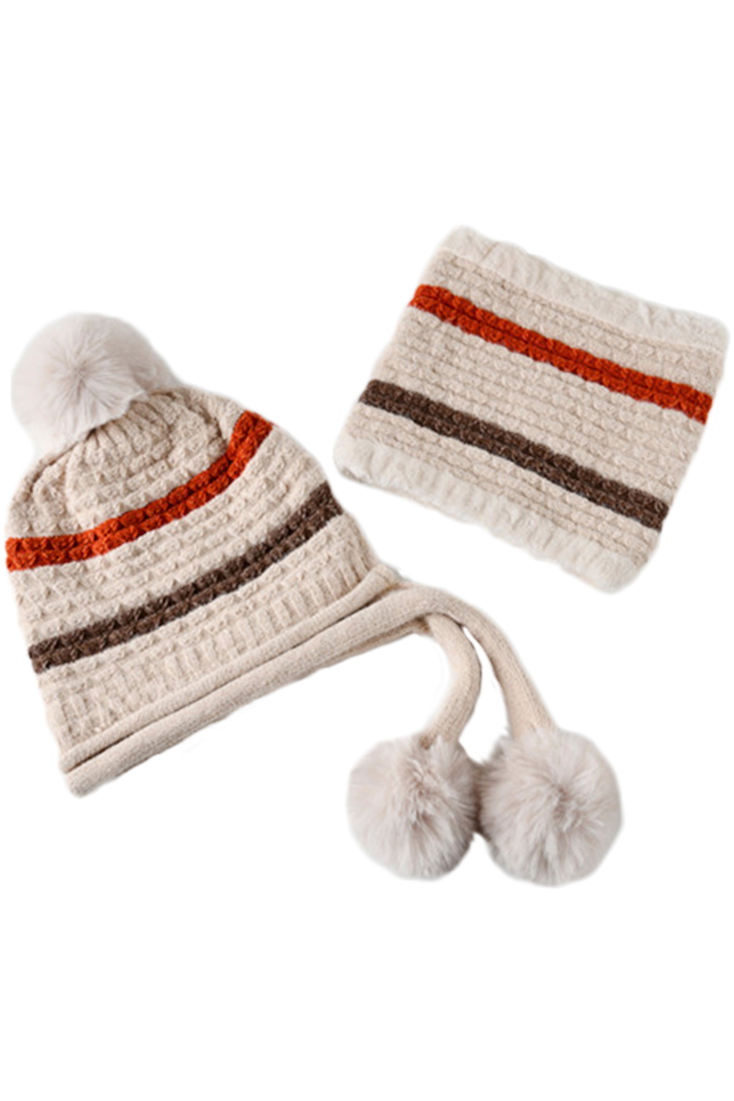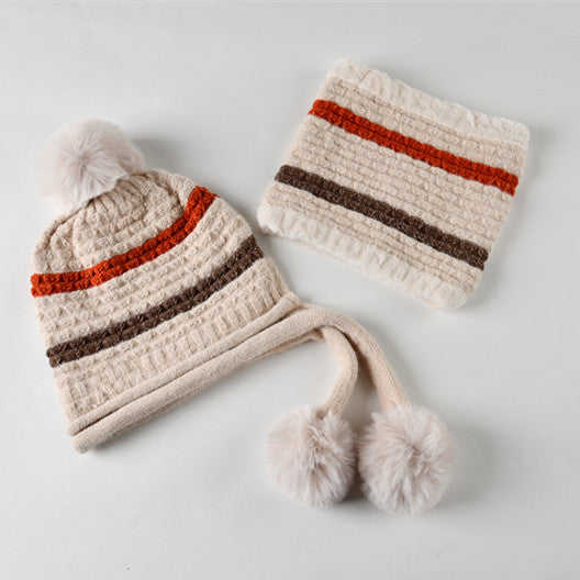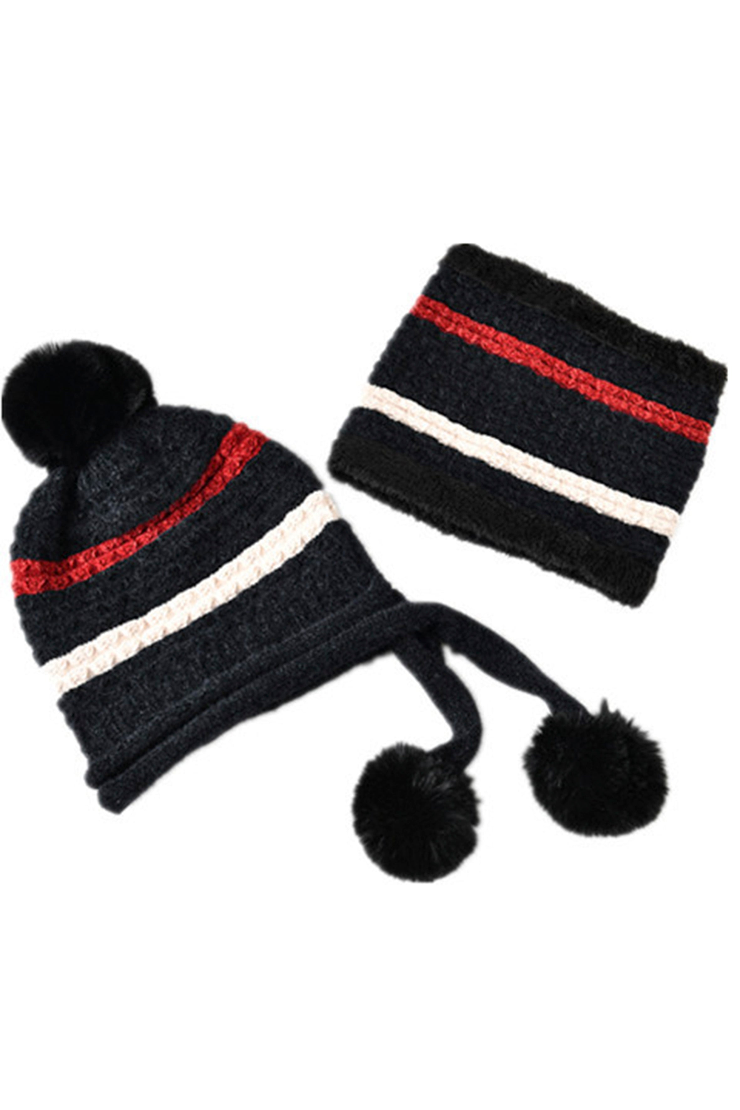 Pompom Knitted Bib Beanie Set C0225