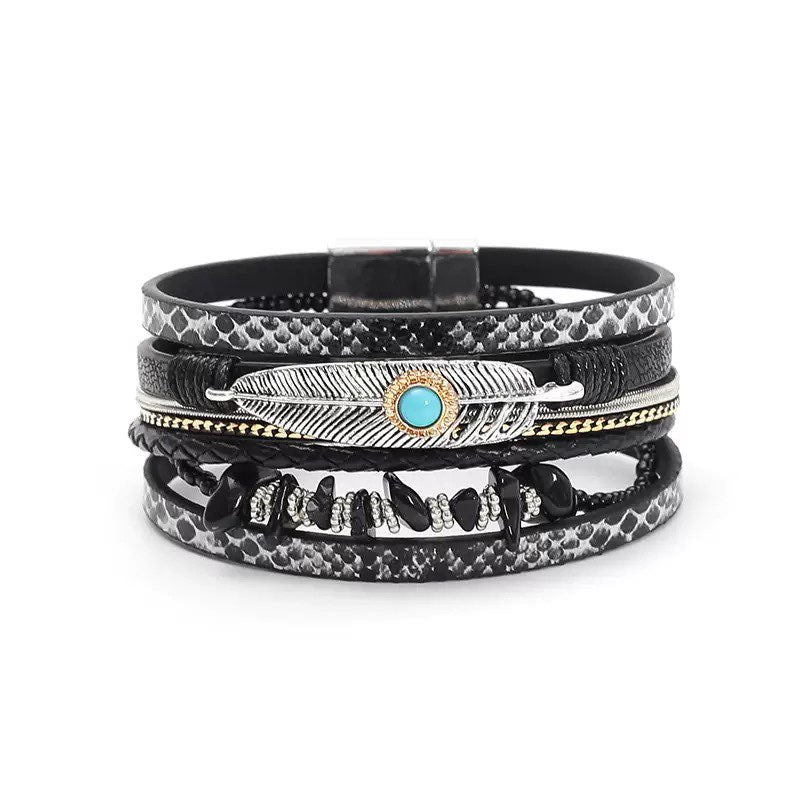 Feather Turquoise Leather Magnetic Bracelets B3779