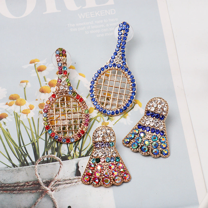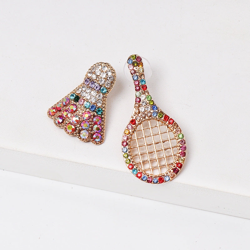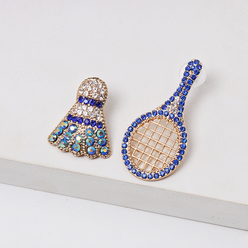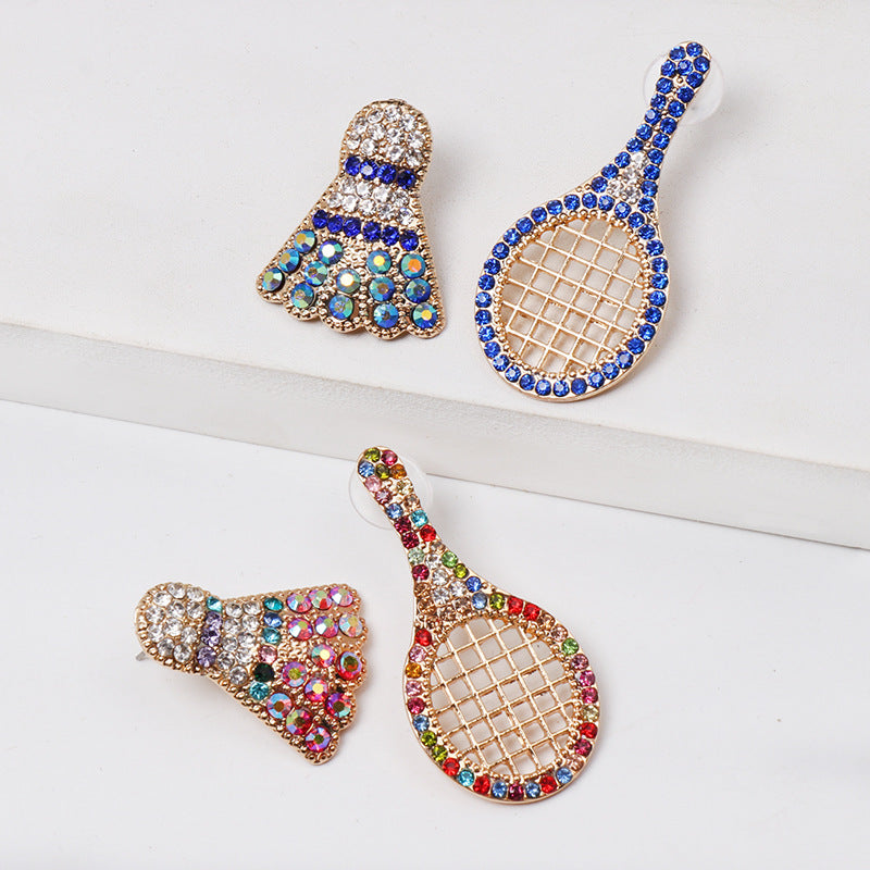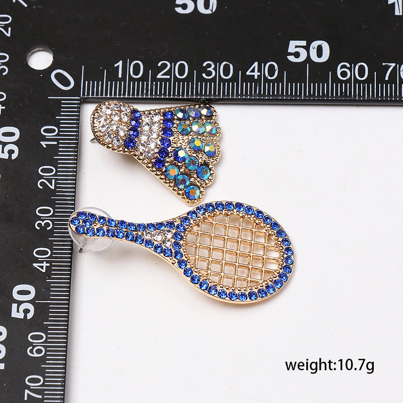 Rhinestone Badminton Racket Stud Earrings E3509