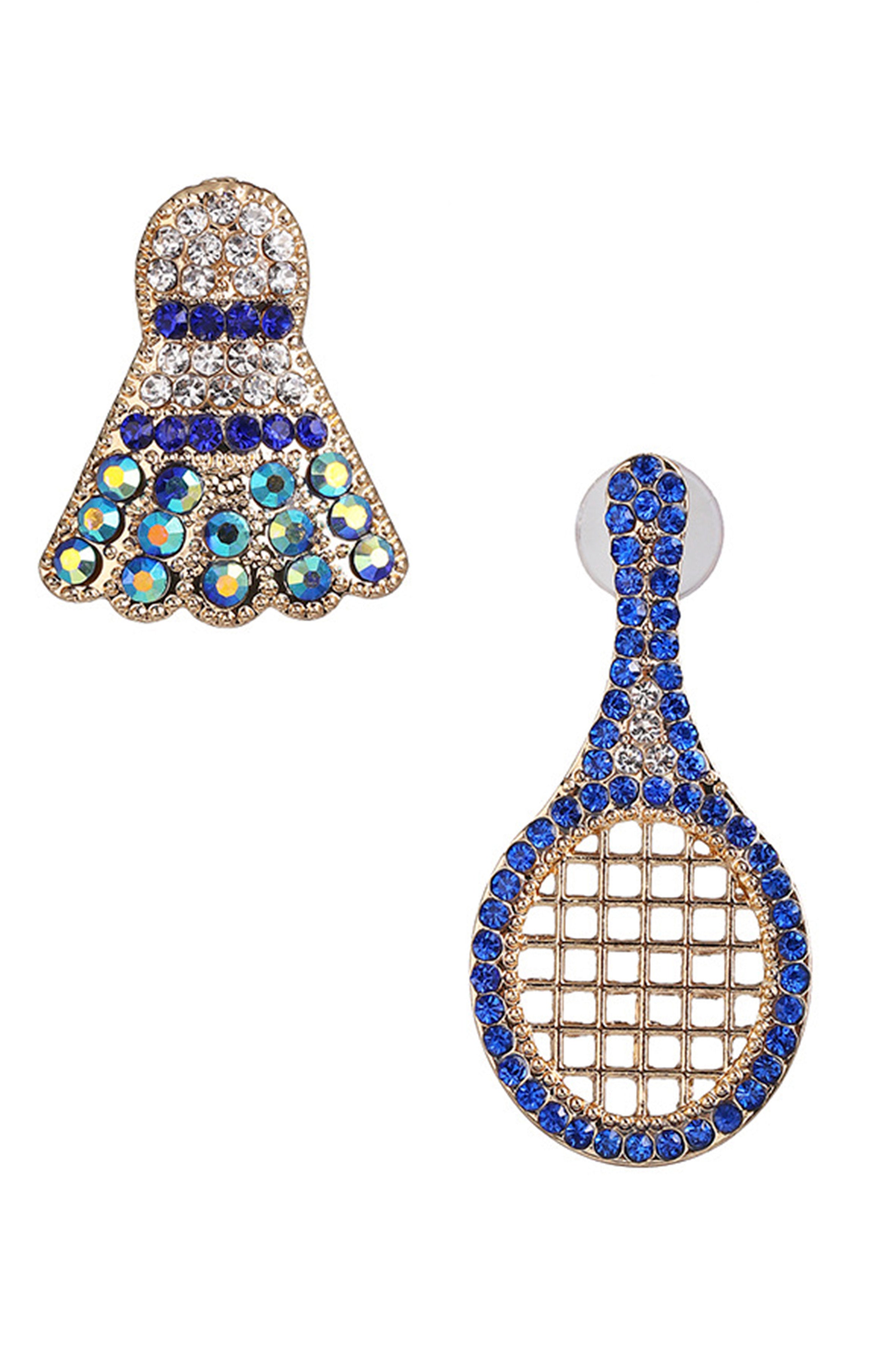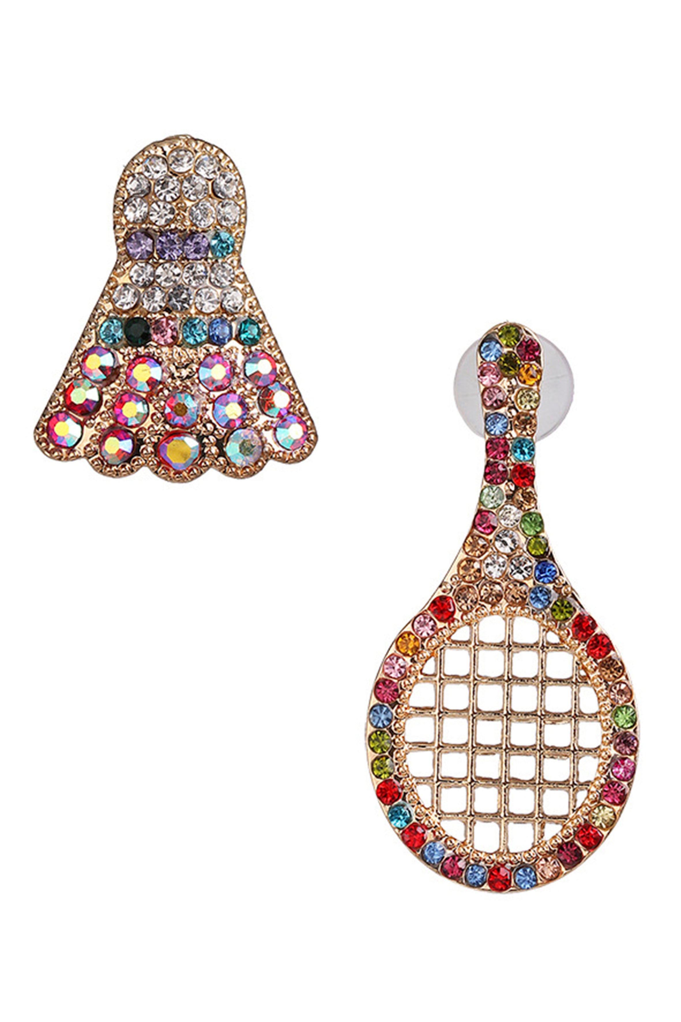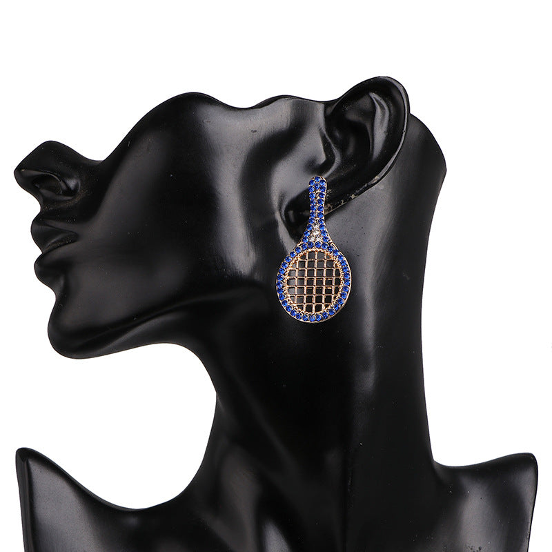 Rhinestone Badminton Racket Stud Earrings E3509