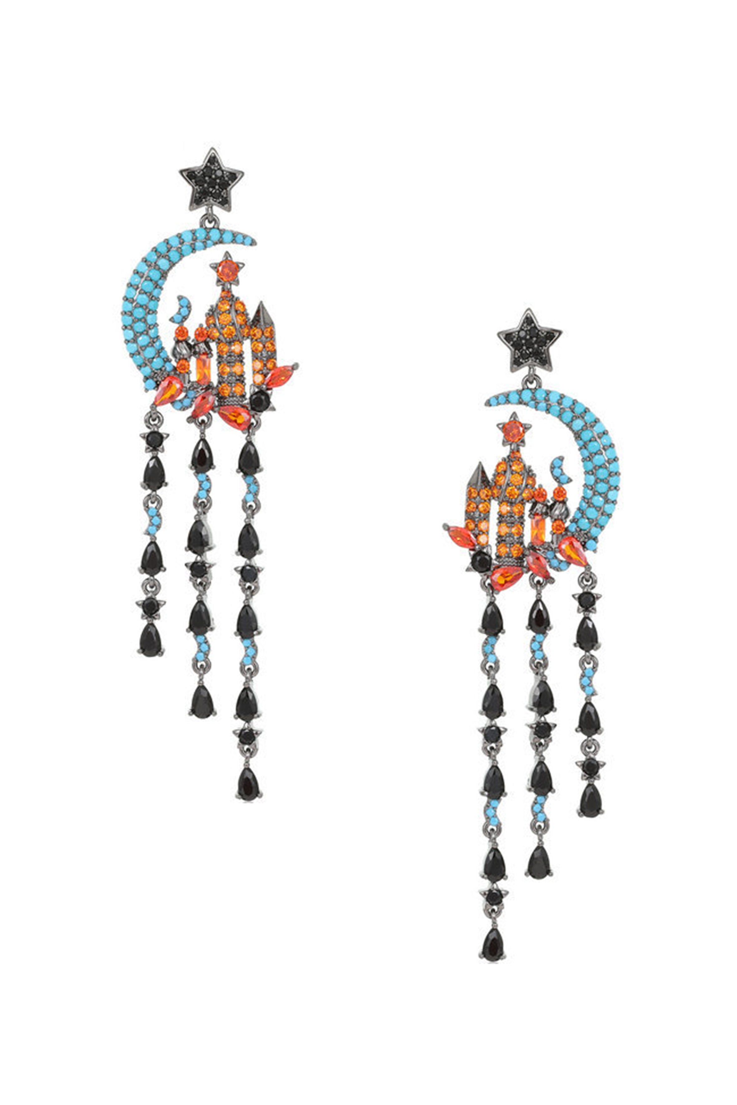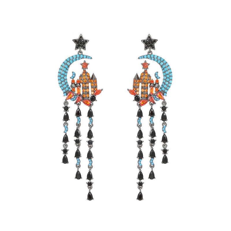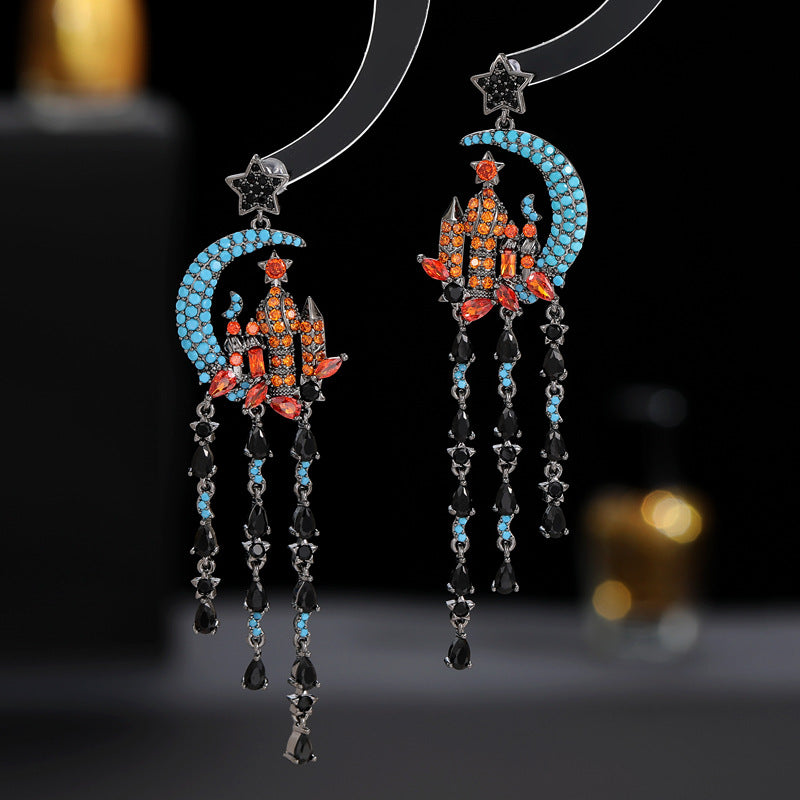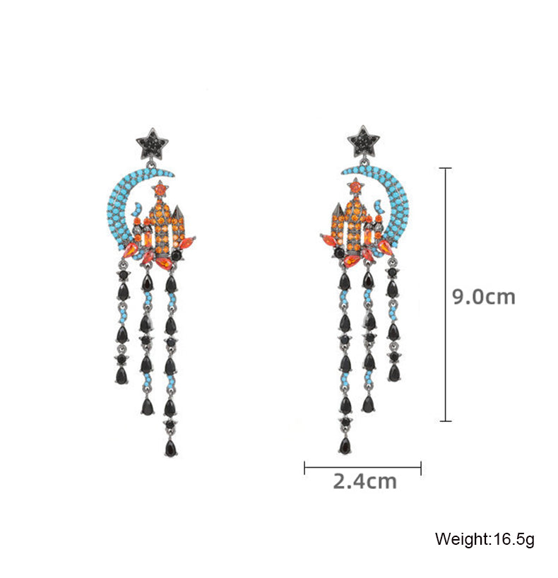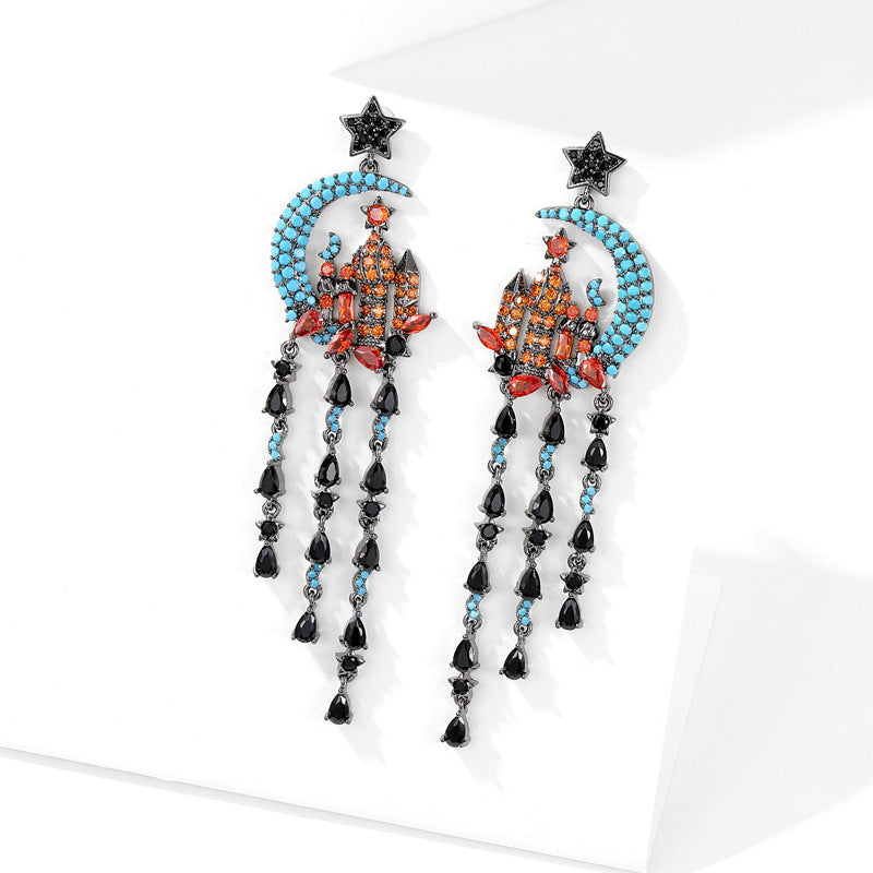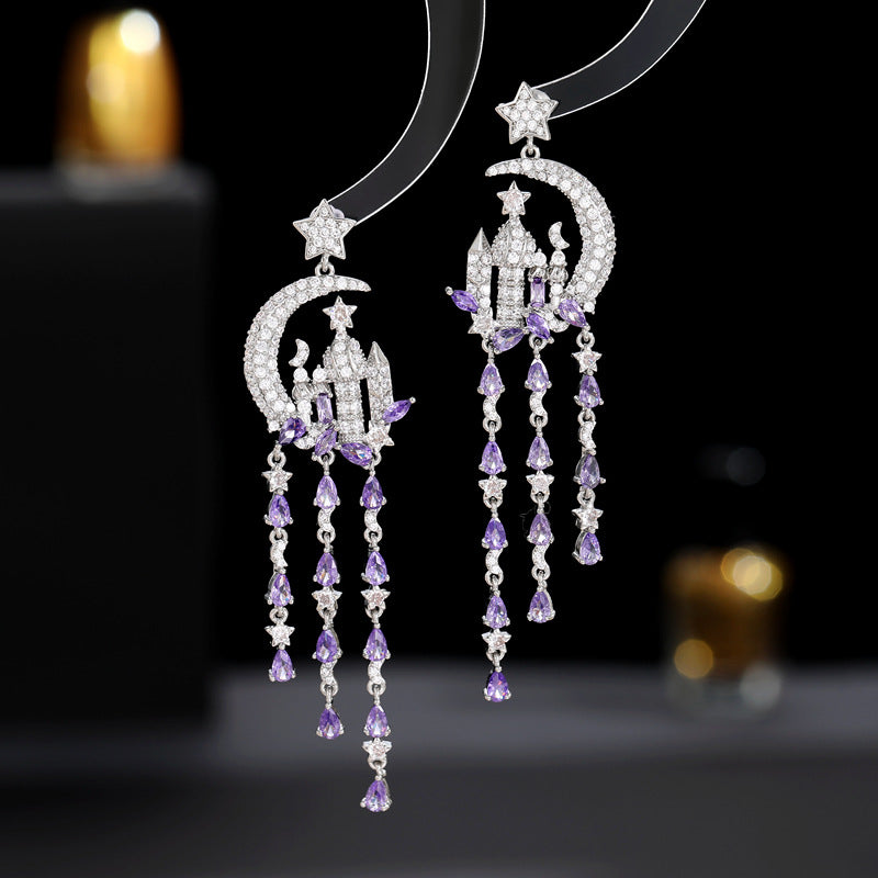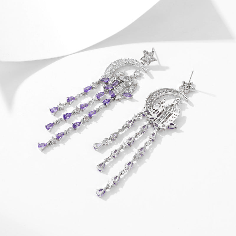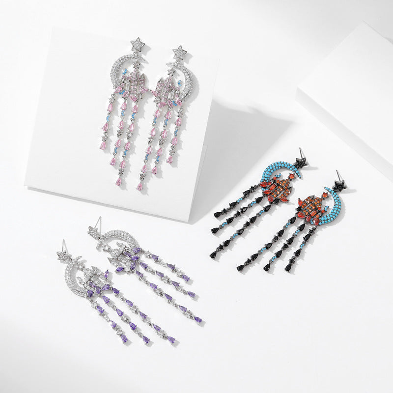 Star Moon Castle Tassel Cubic Zirconia Earrings E8013