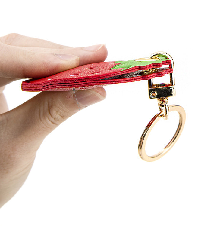 Strawberry Pu Leather Airtag Cover Keychain K1309