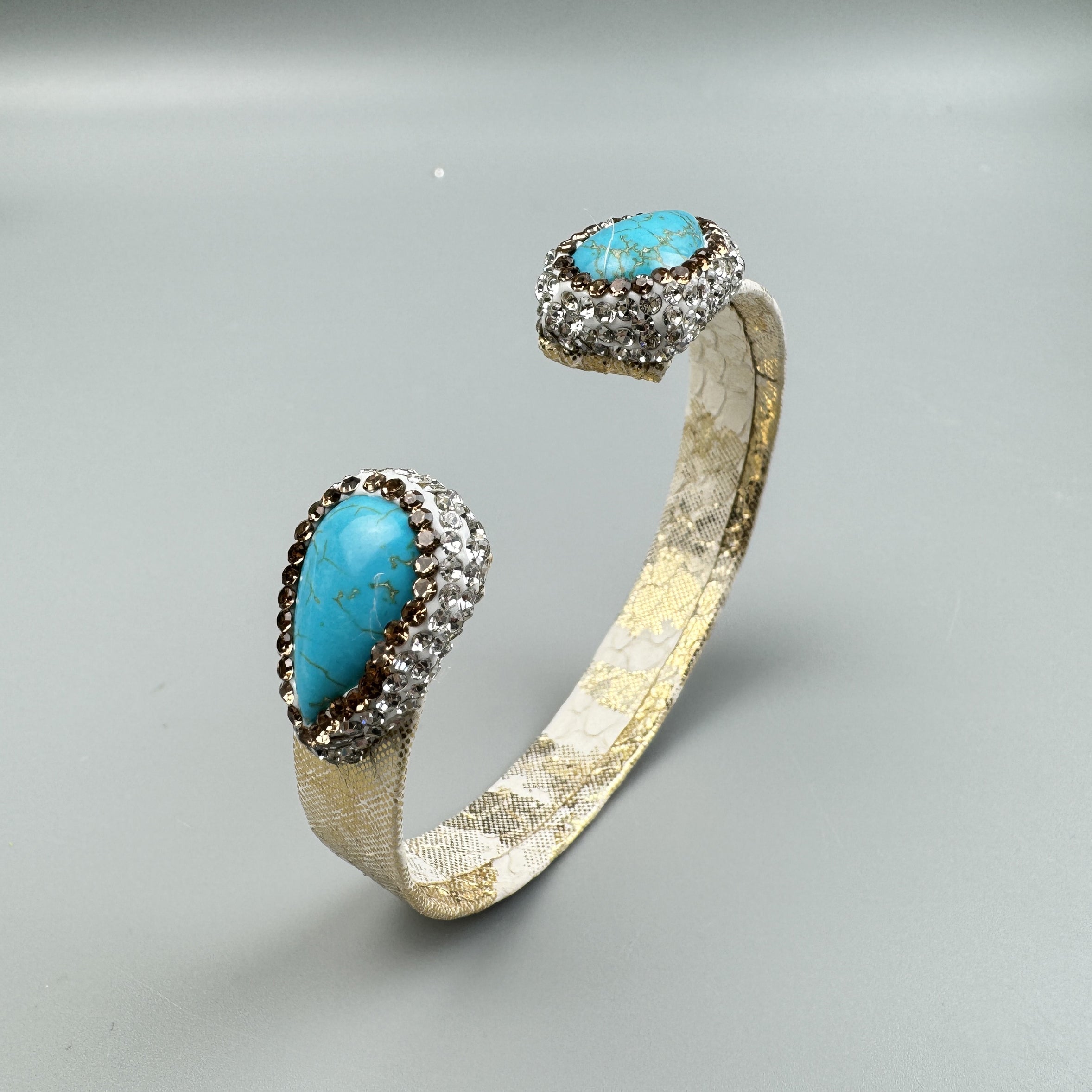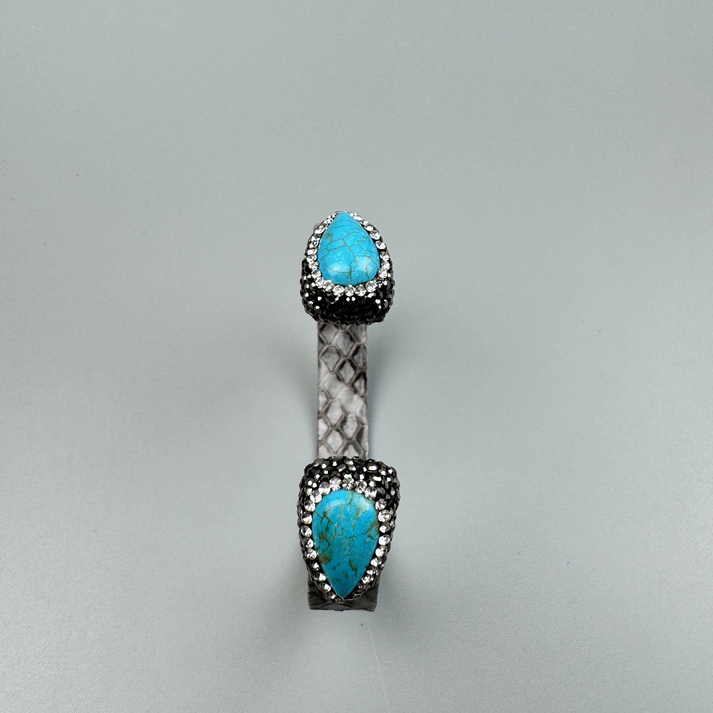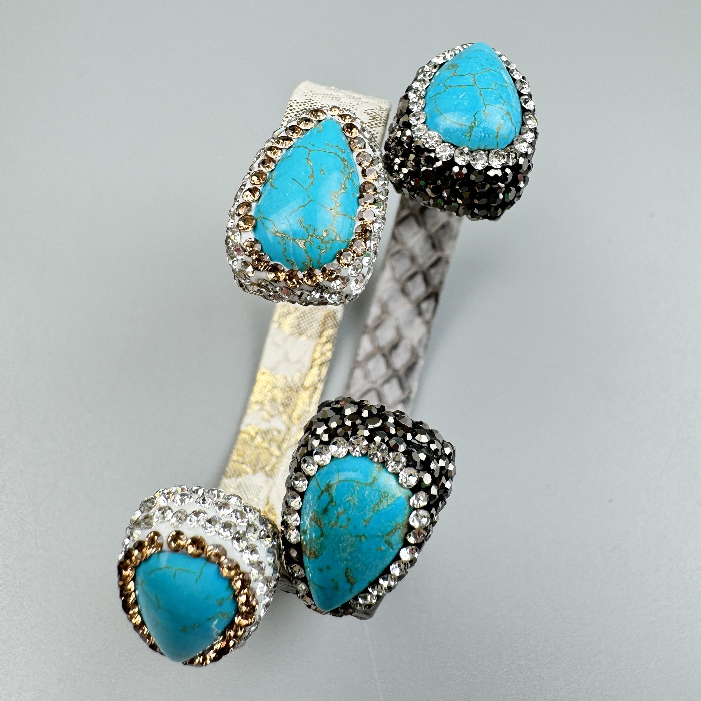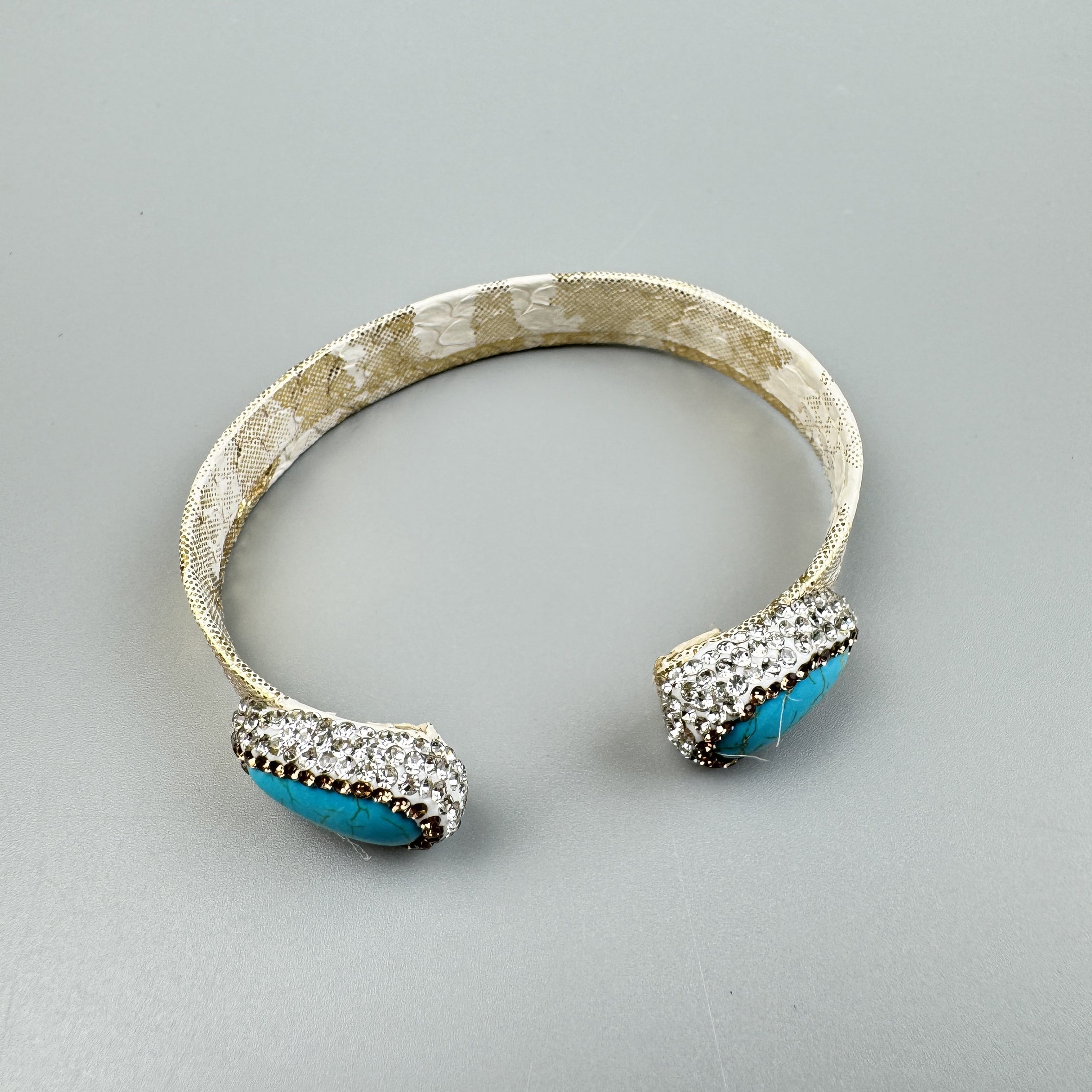 Turquoise Rhinestone Leather Cuff Bracelet B4231
