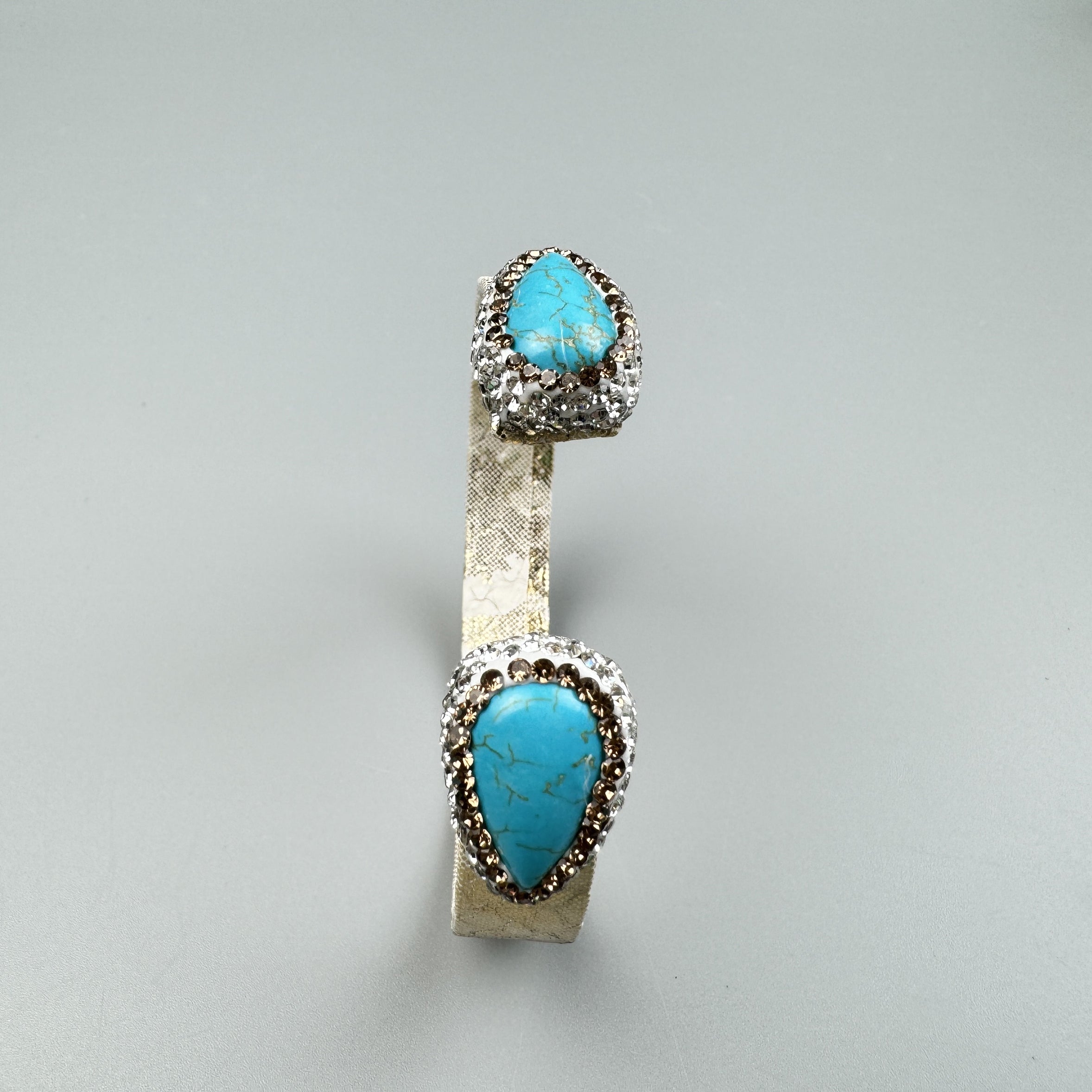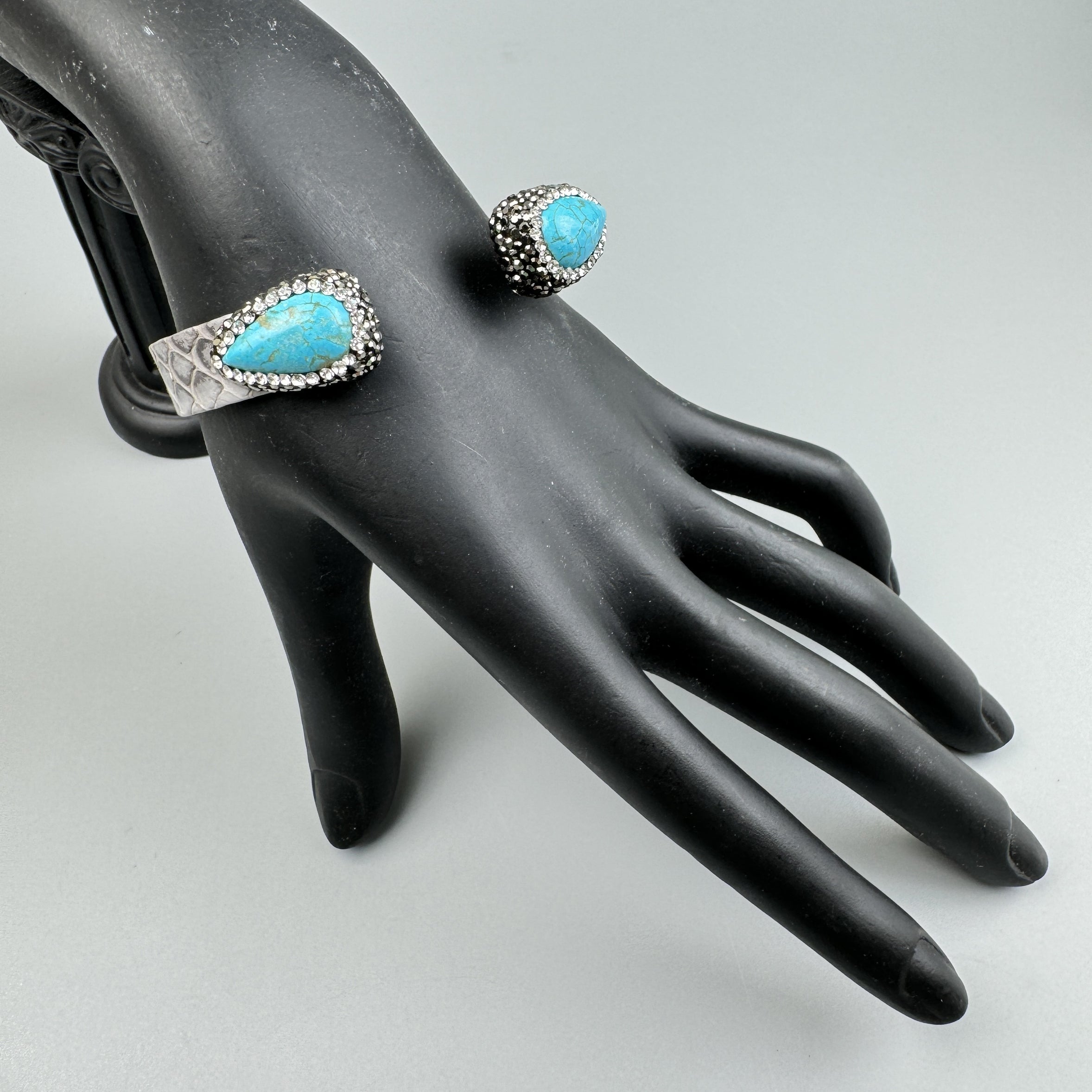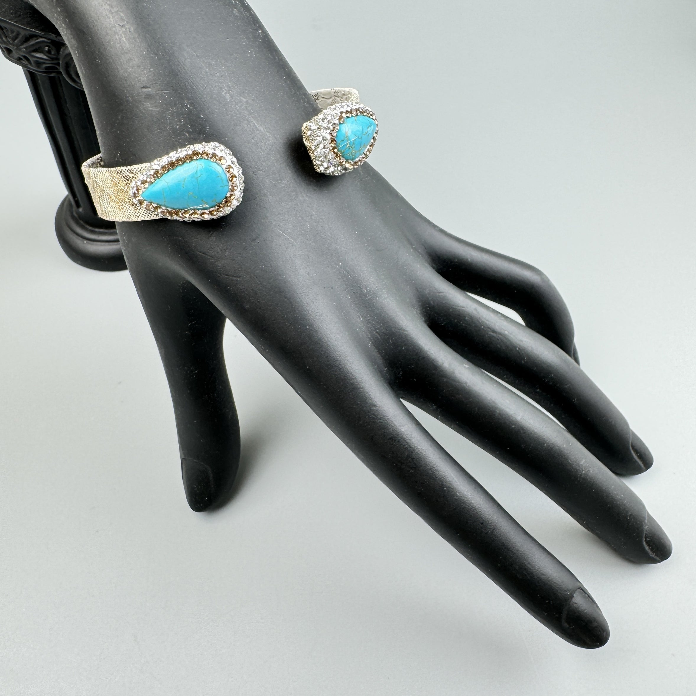 Turquoise Rhinestone Leather Cuff Bracelet B4231