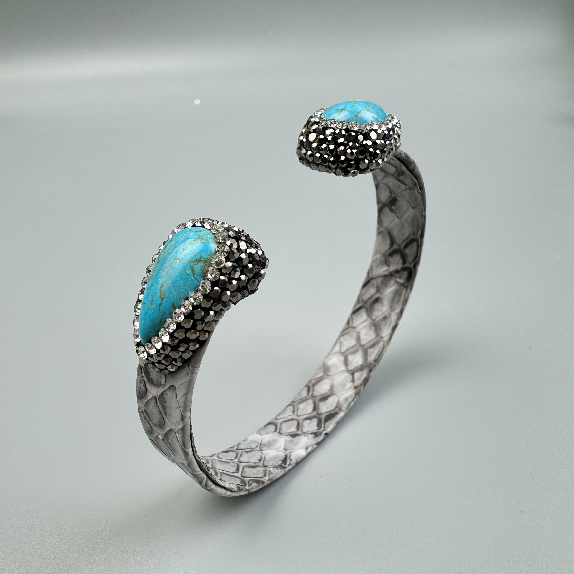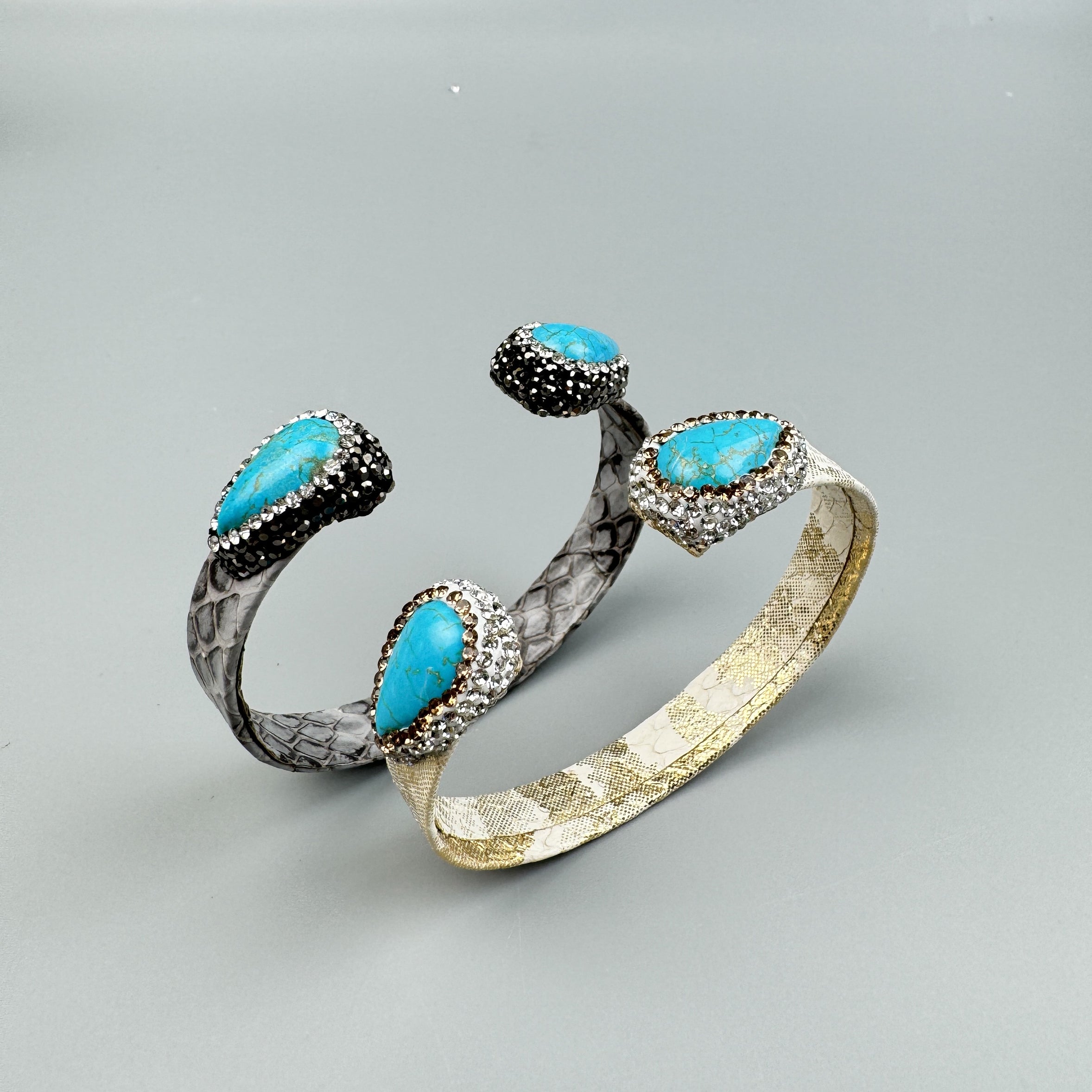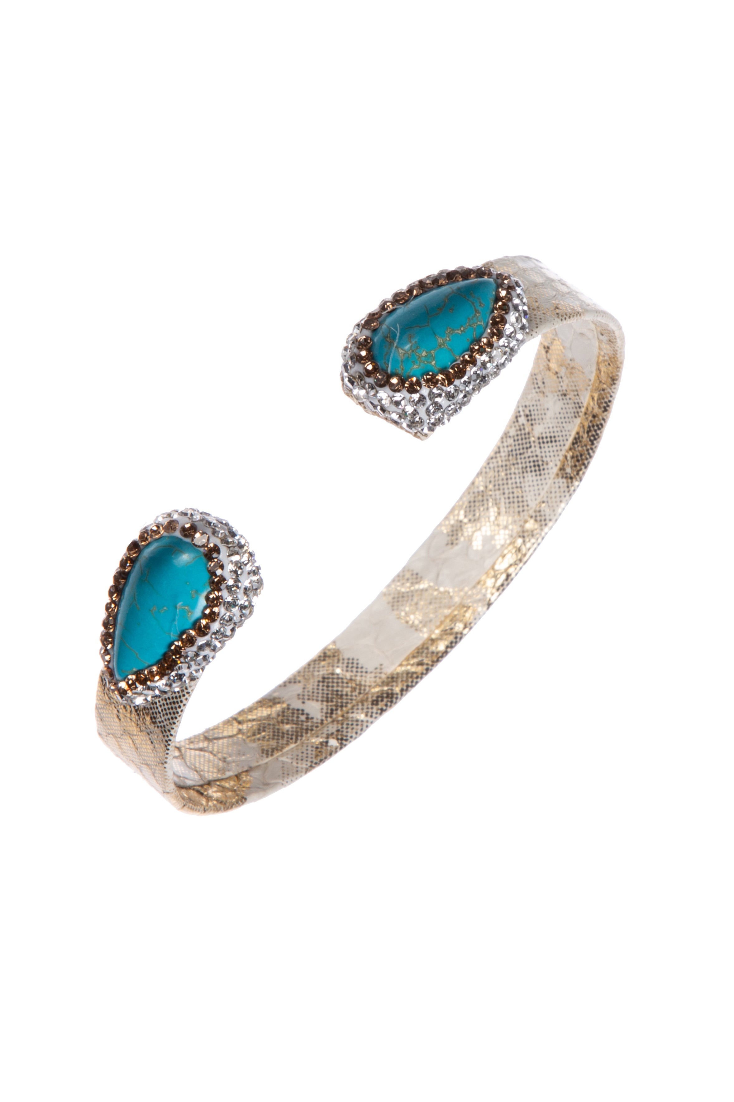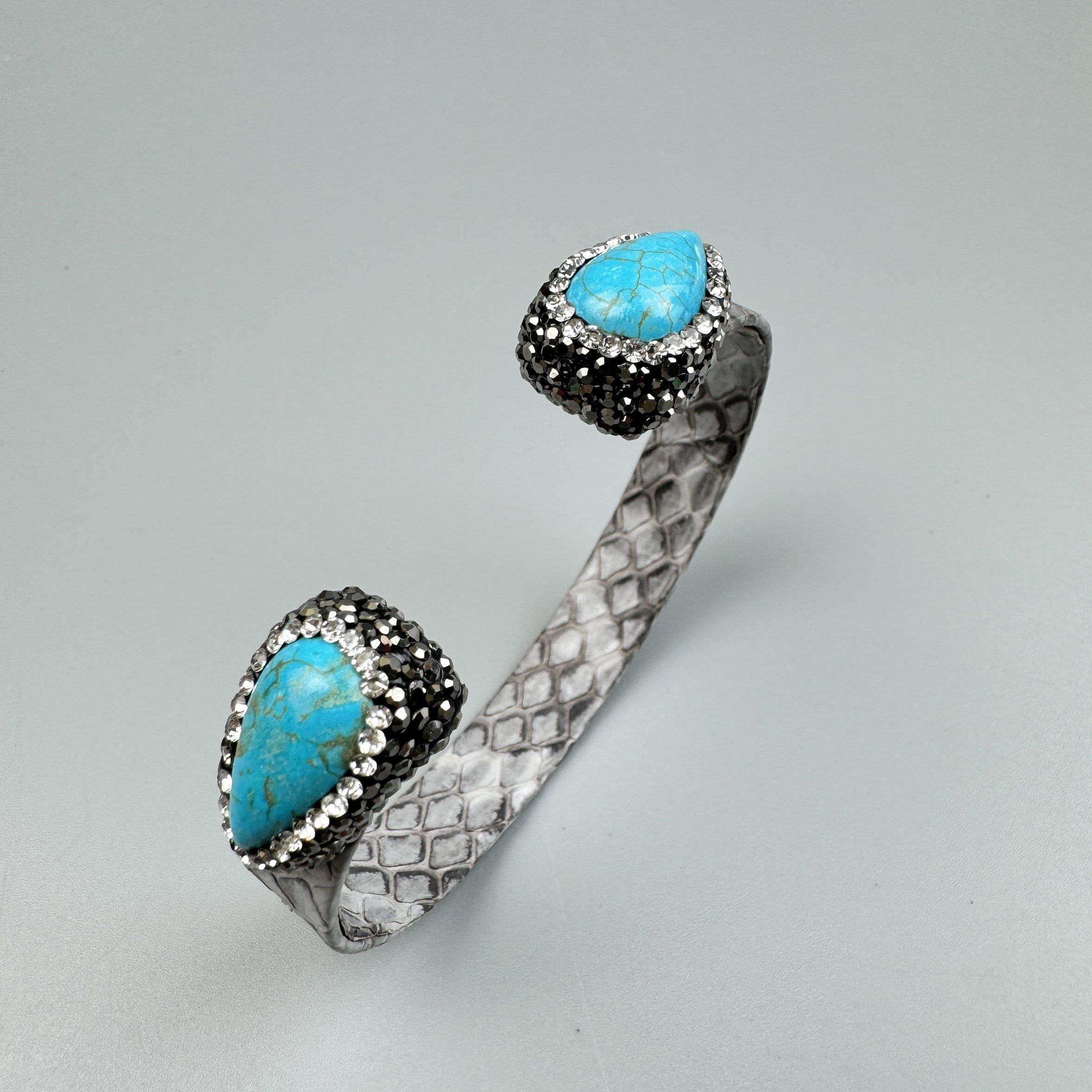 Turquoise Rhinestone Leather Cuff Bracelet B4231