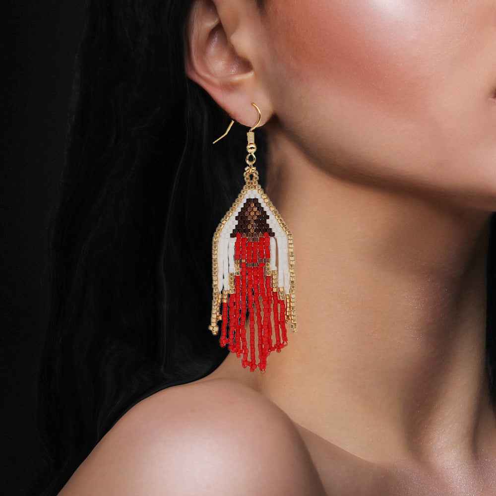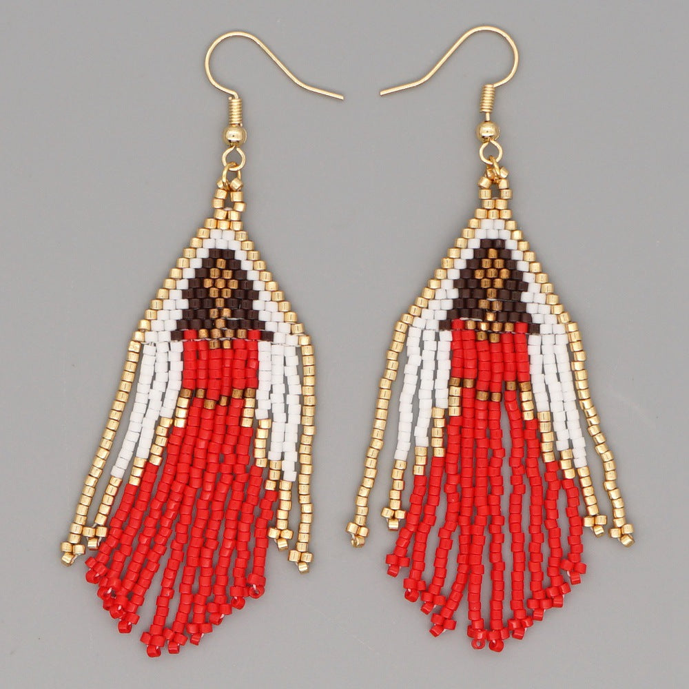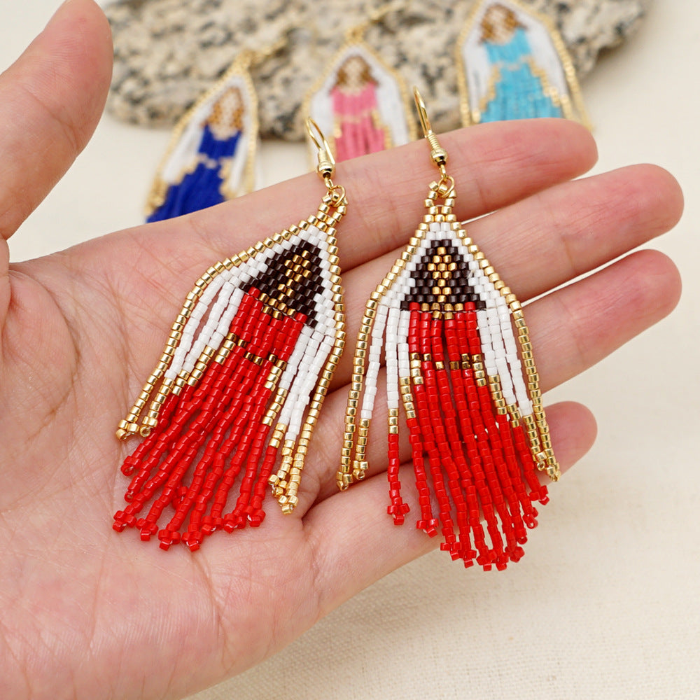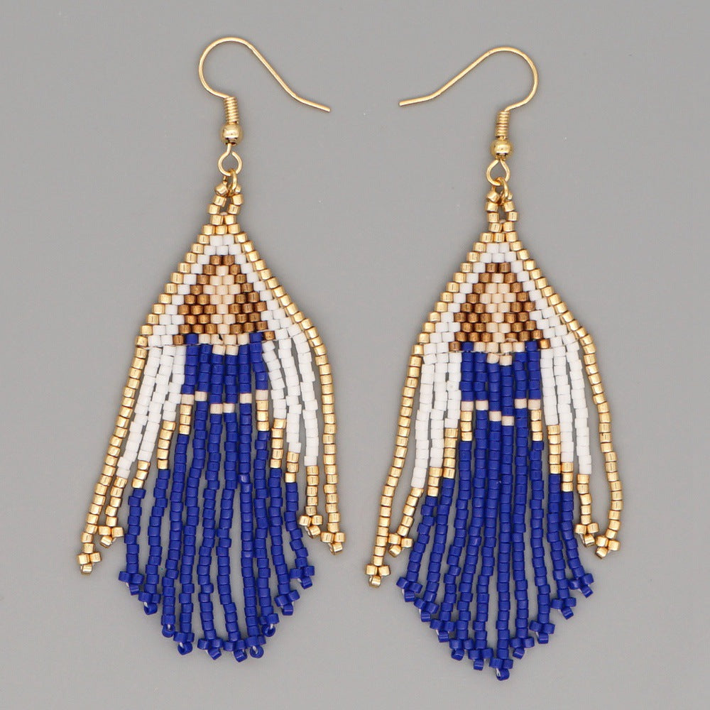 Virgin Mary Seed Bead Tassel Earrings E4925