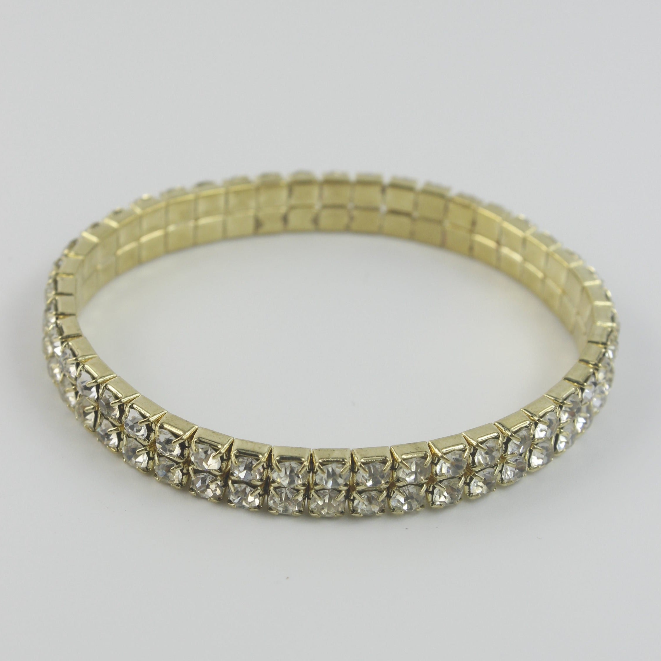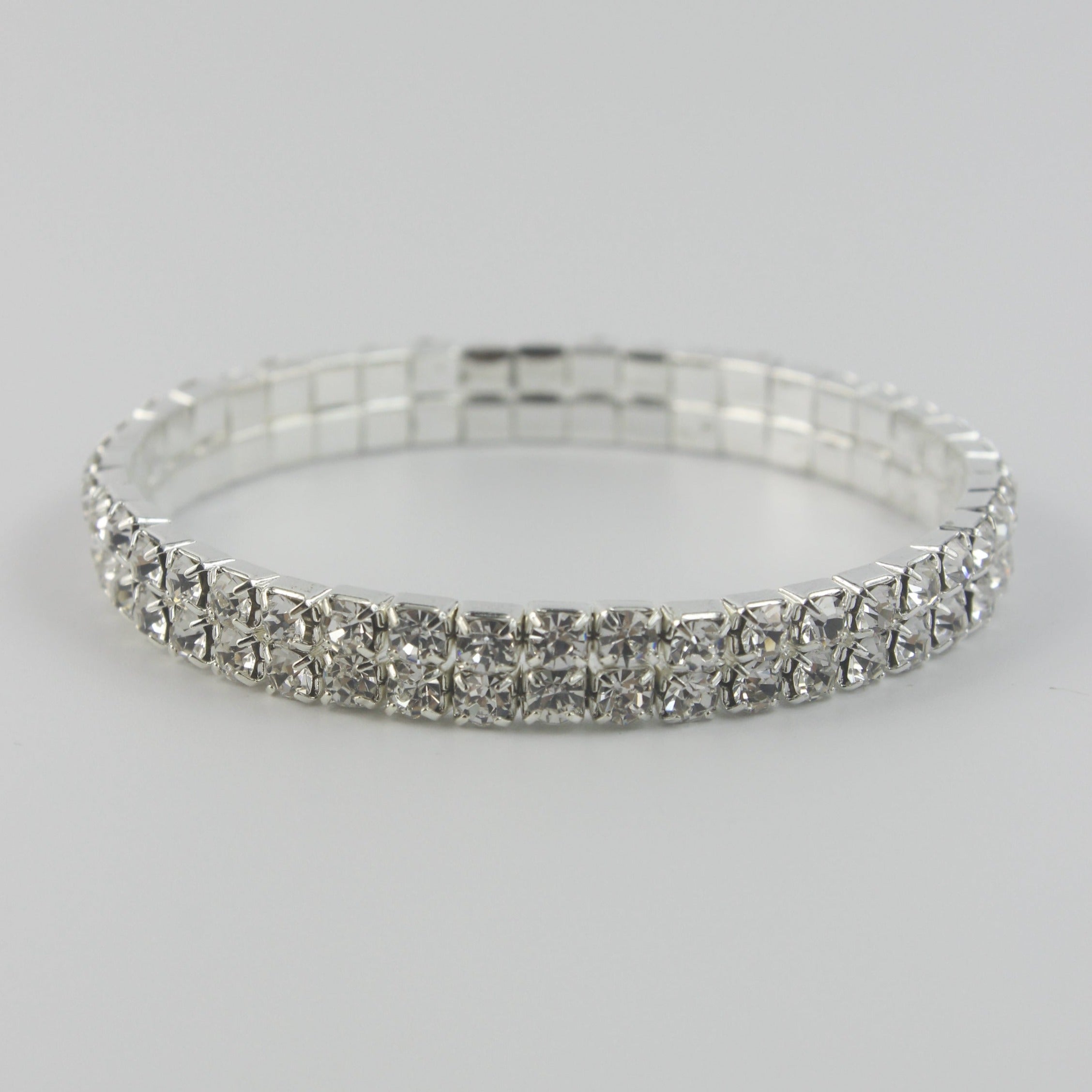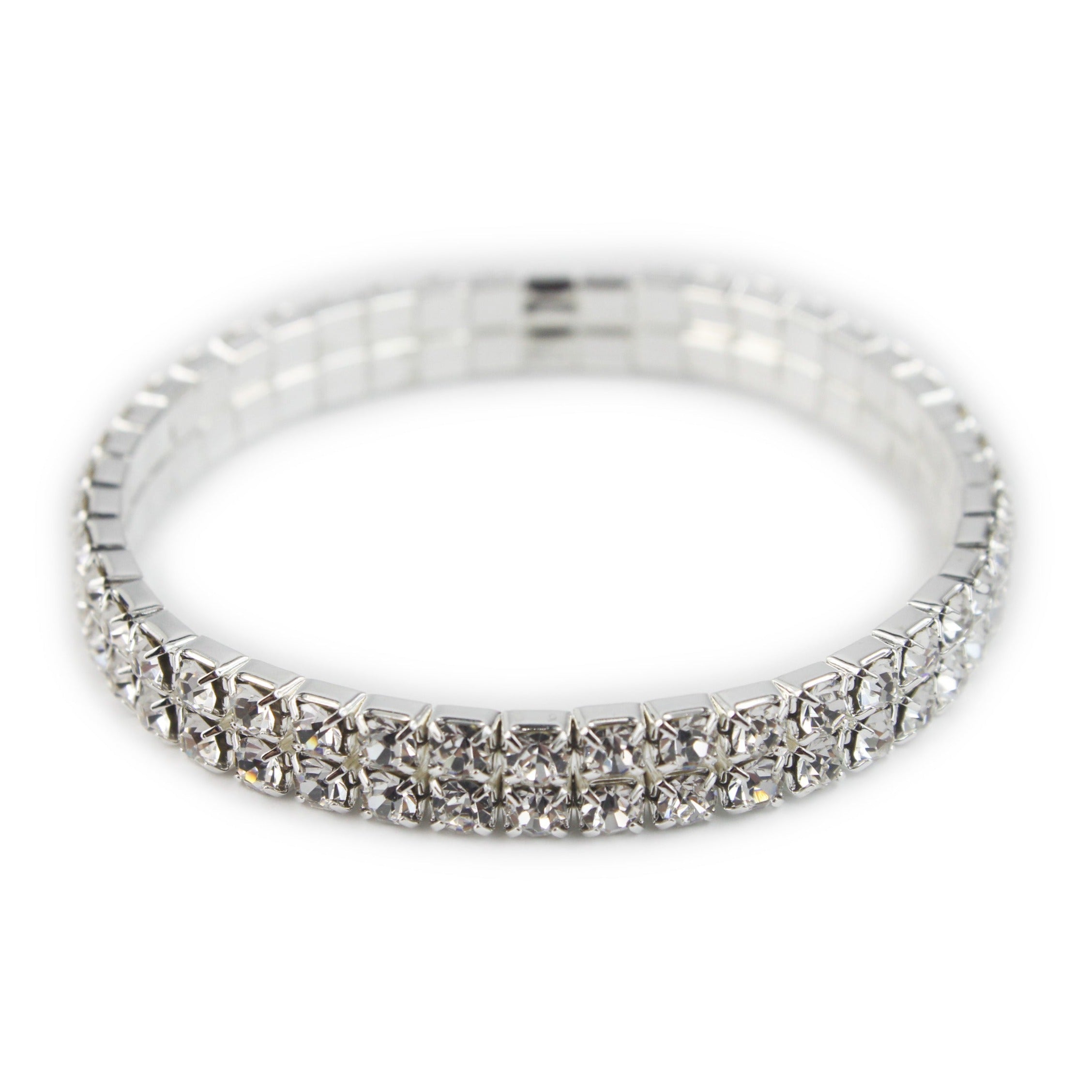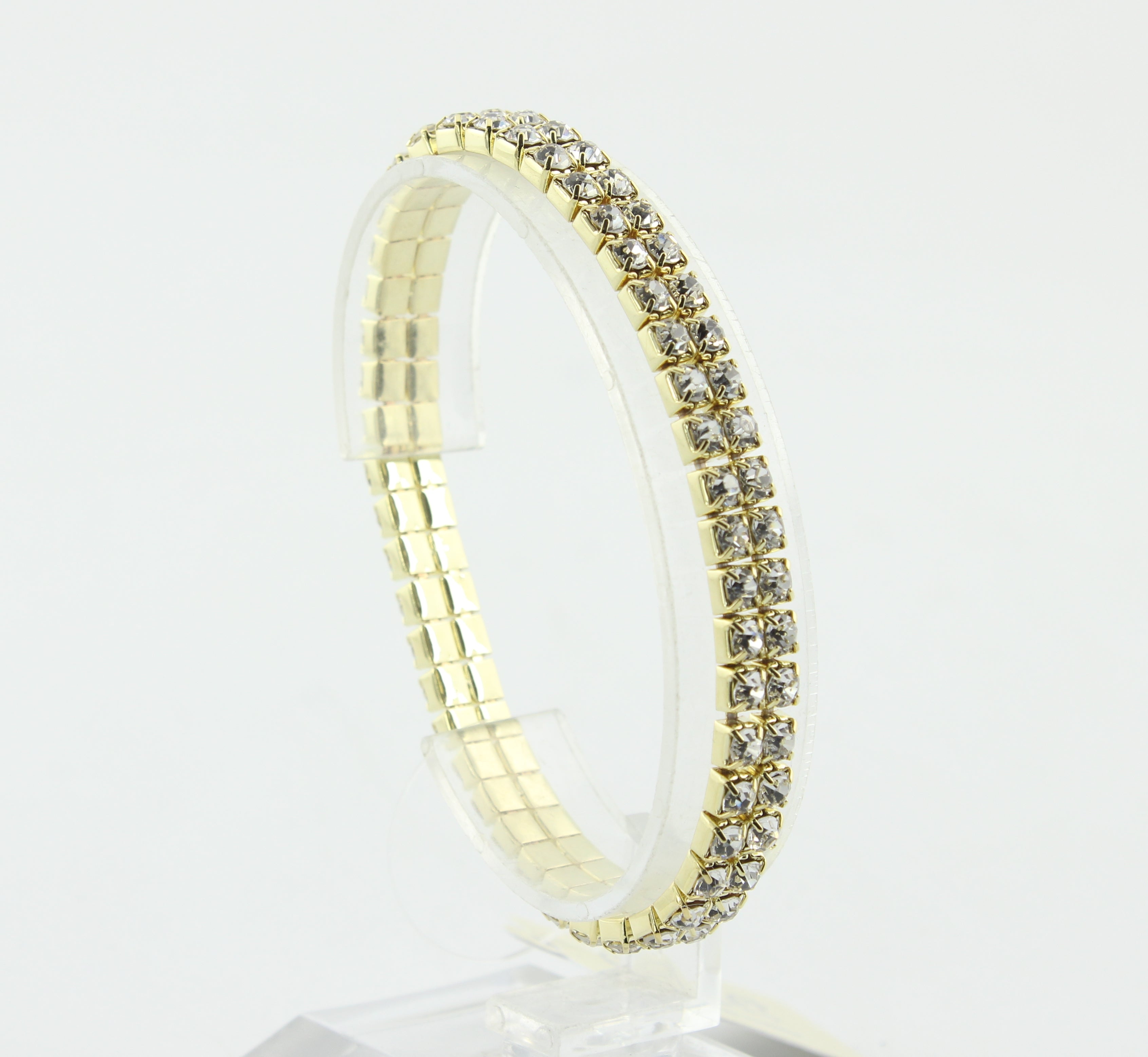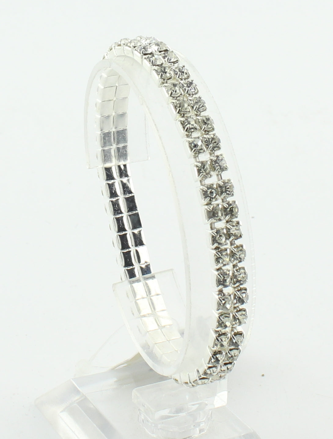 This elegant bracelet features strands of faceted glittering crystal rhinestones.