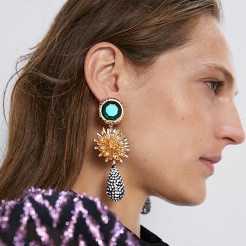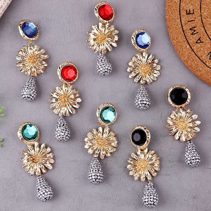 Pendientes colgantes de aleación con diseño floral E3550-1