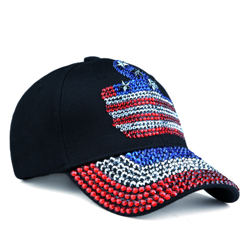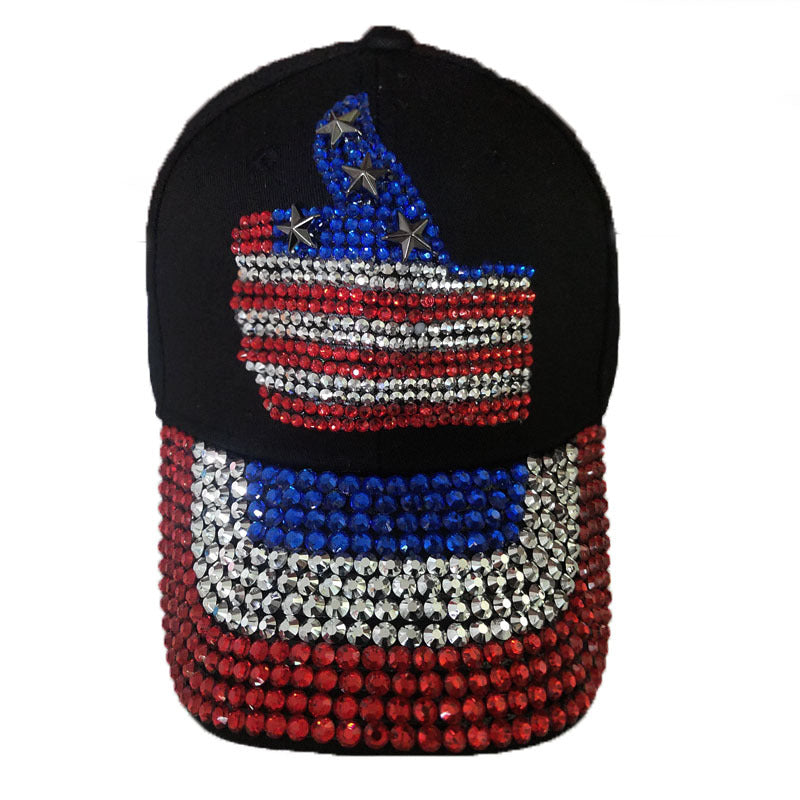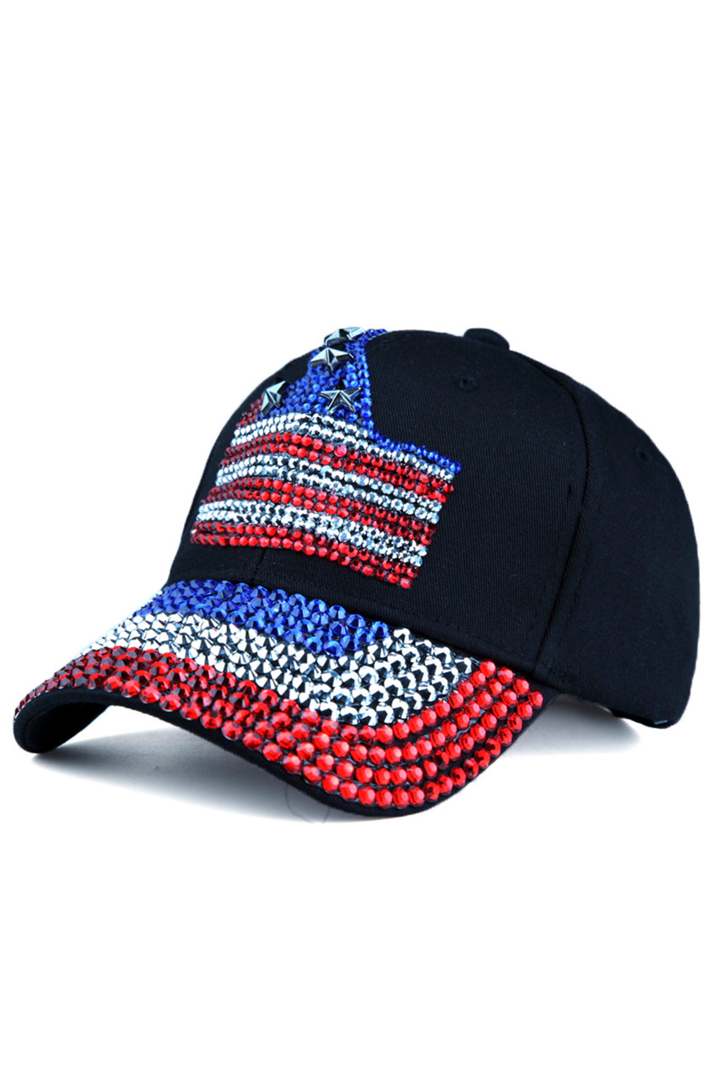 Gorra con diamantes de imitación y palma con bandera estadounidense C0559
