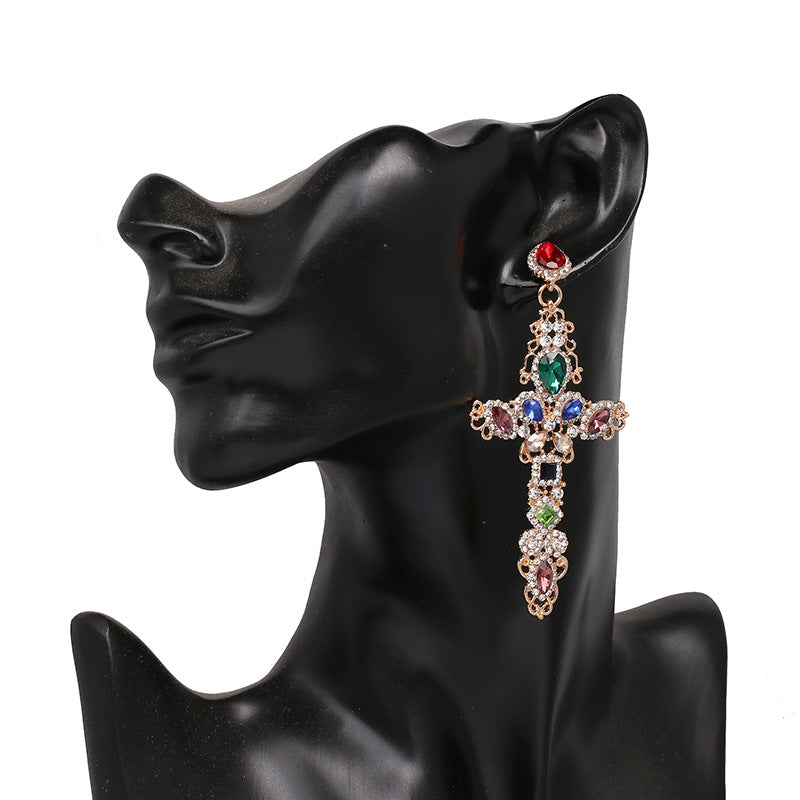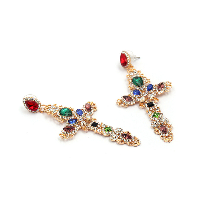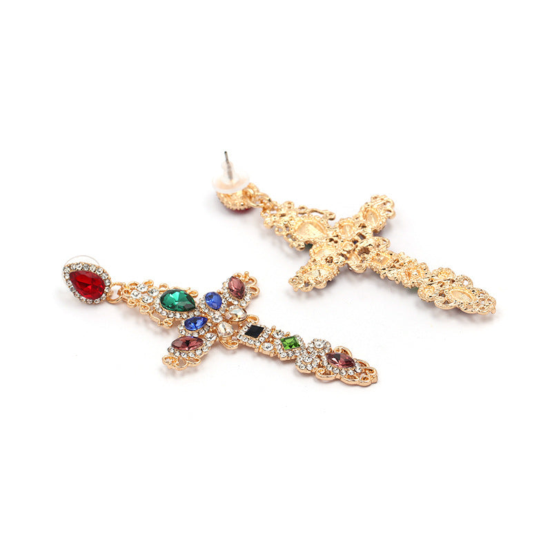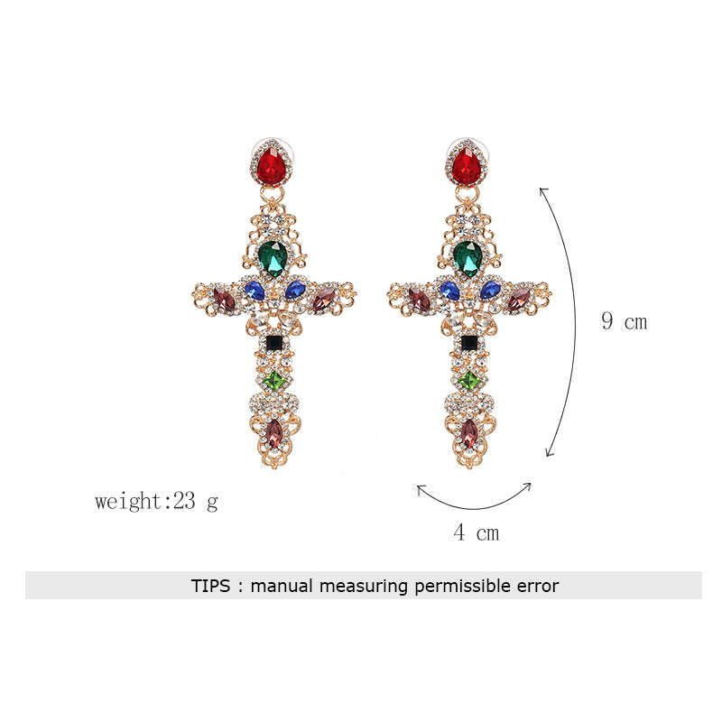 Pendientes de diamantes de imitación en forma de cruz E3153