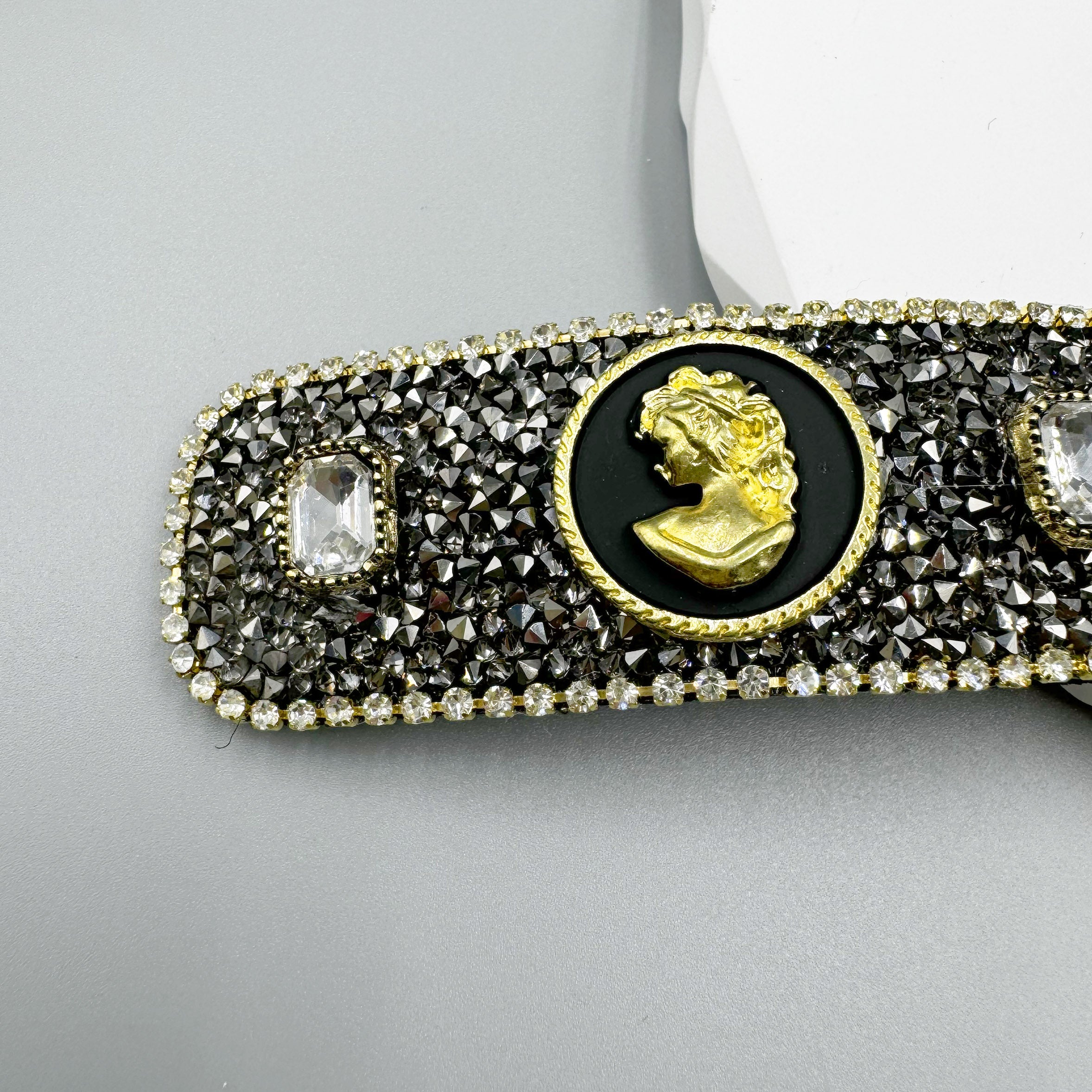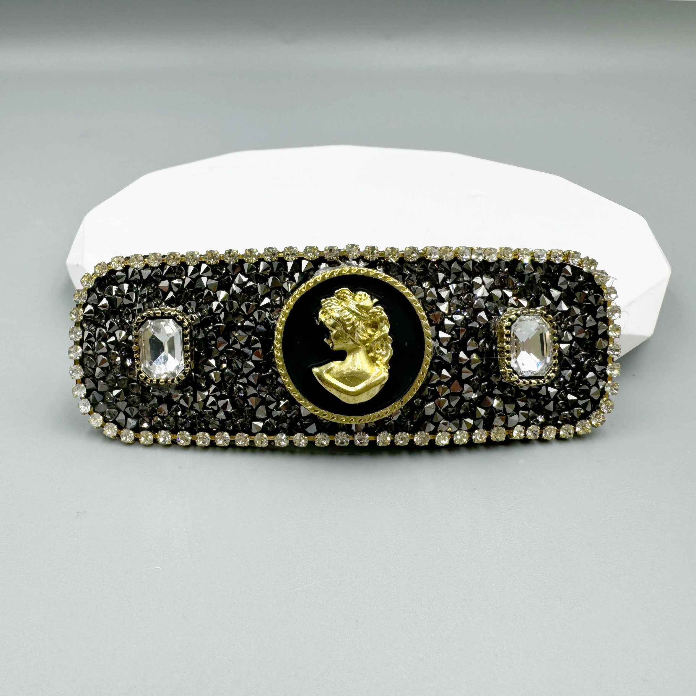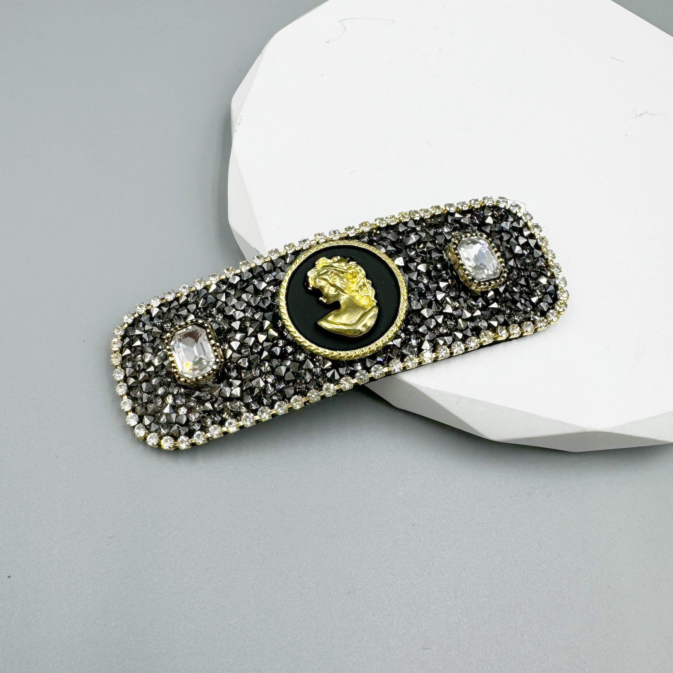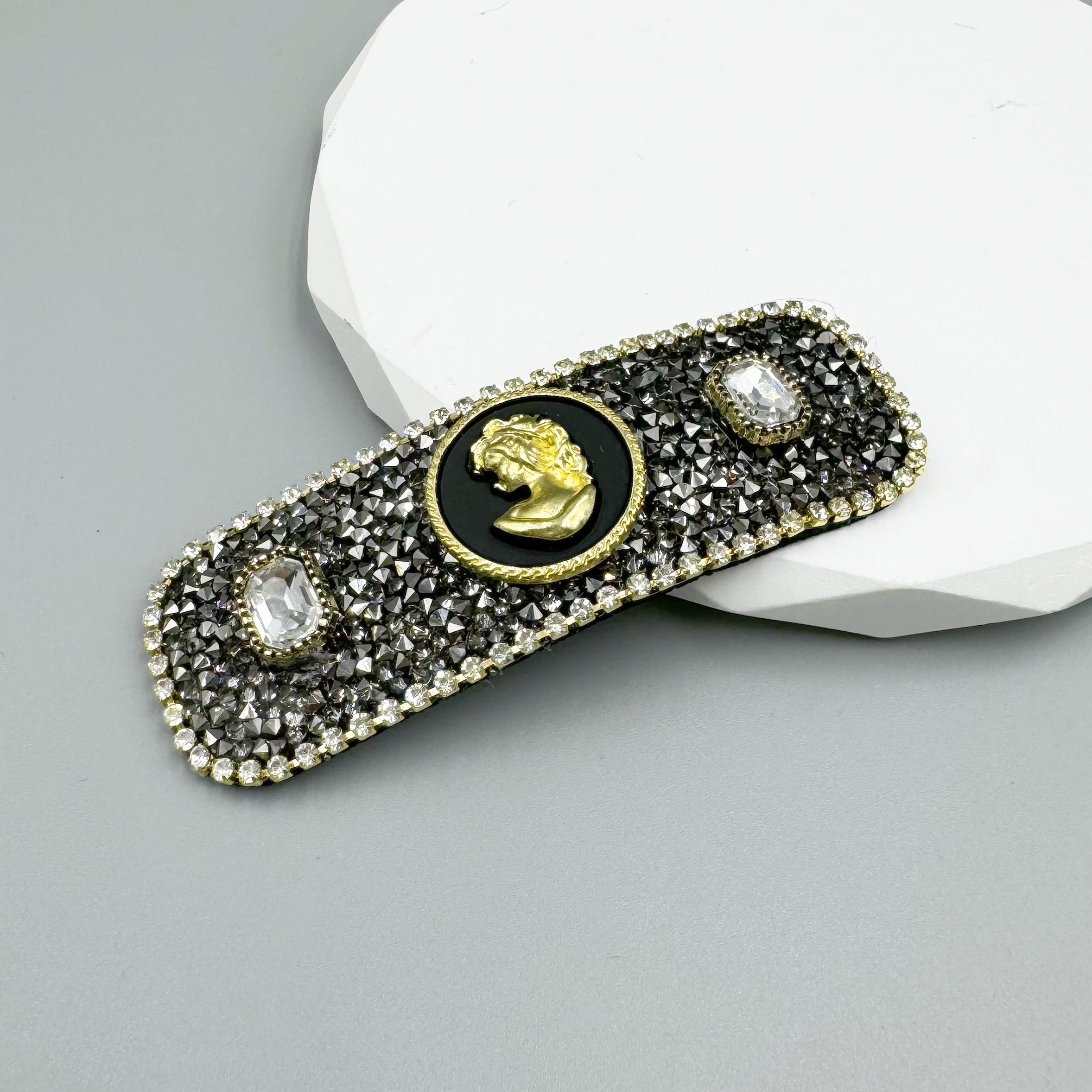 Horquilla para el pelo rectangular con diamantes de imitación y forma de círculo L4733