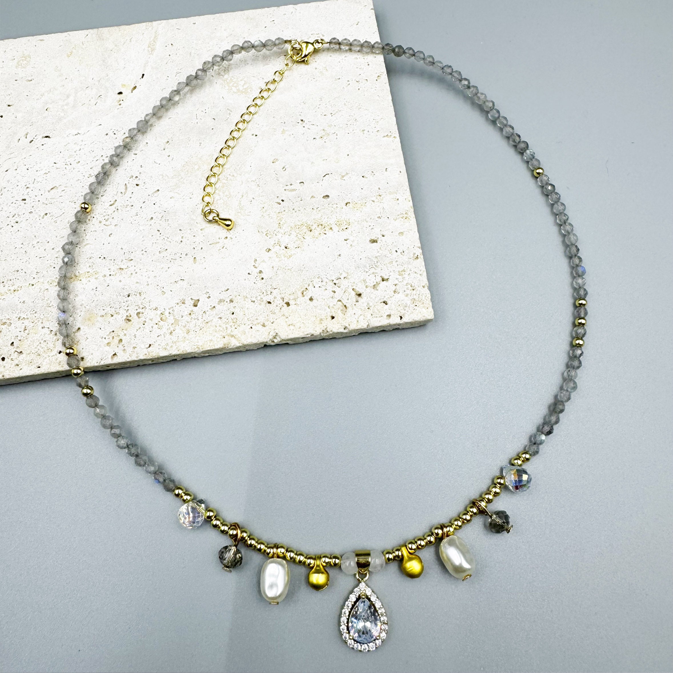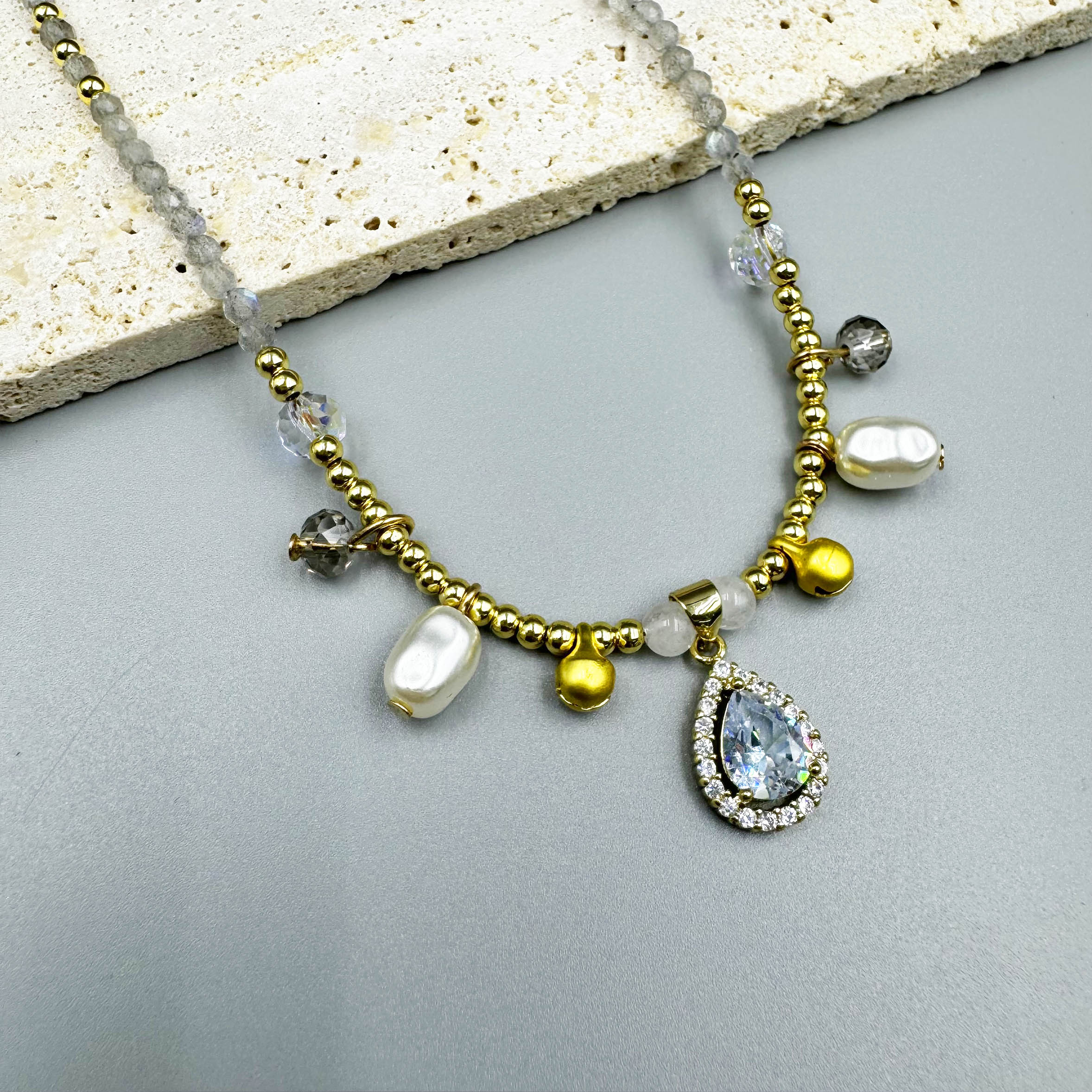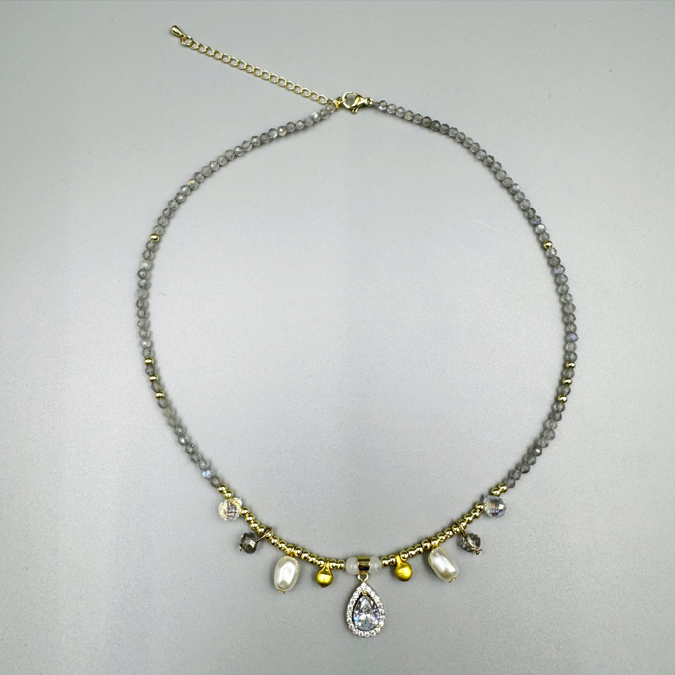 Collar corto con colgante de lágrima y piedra labradorita N5347