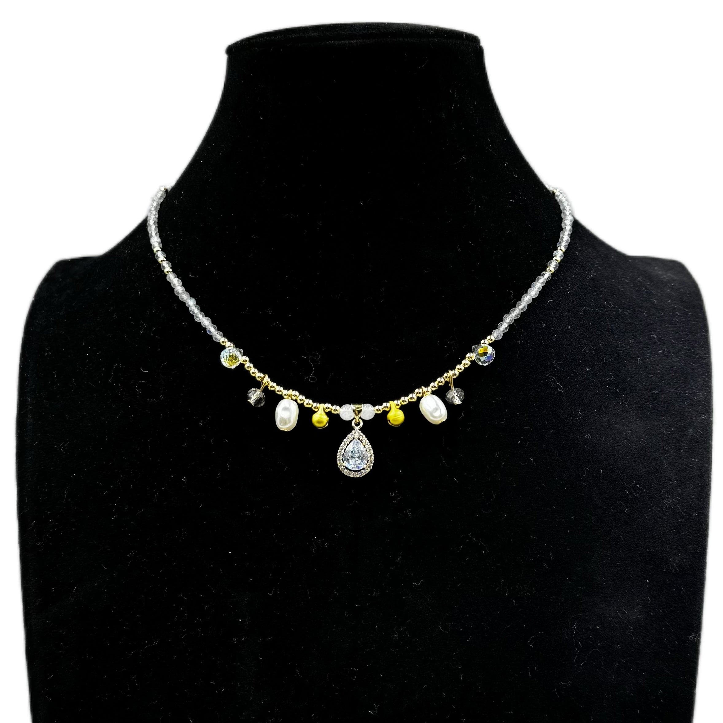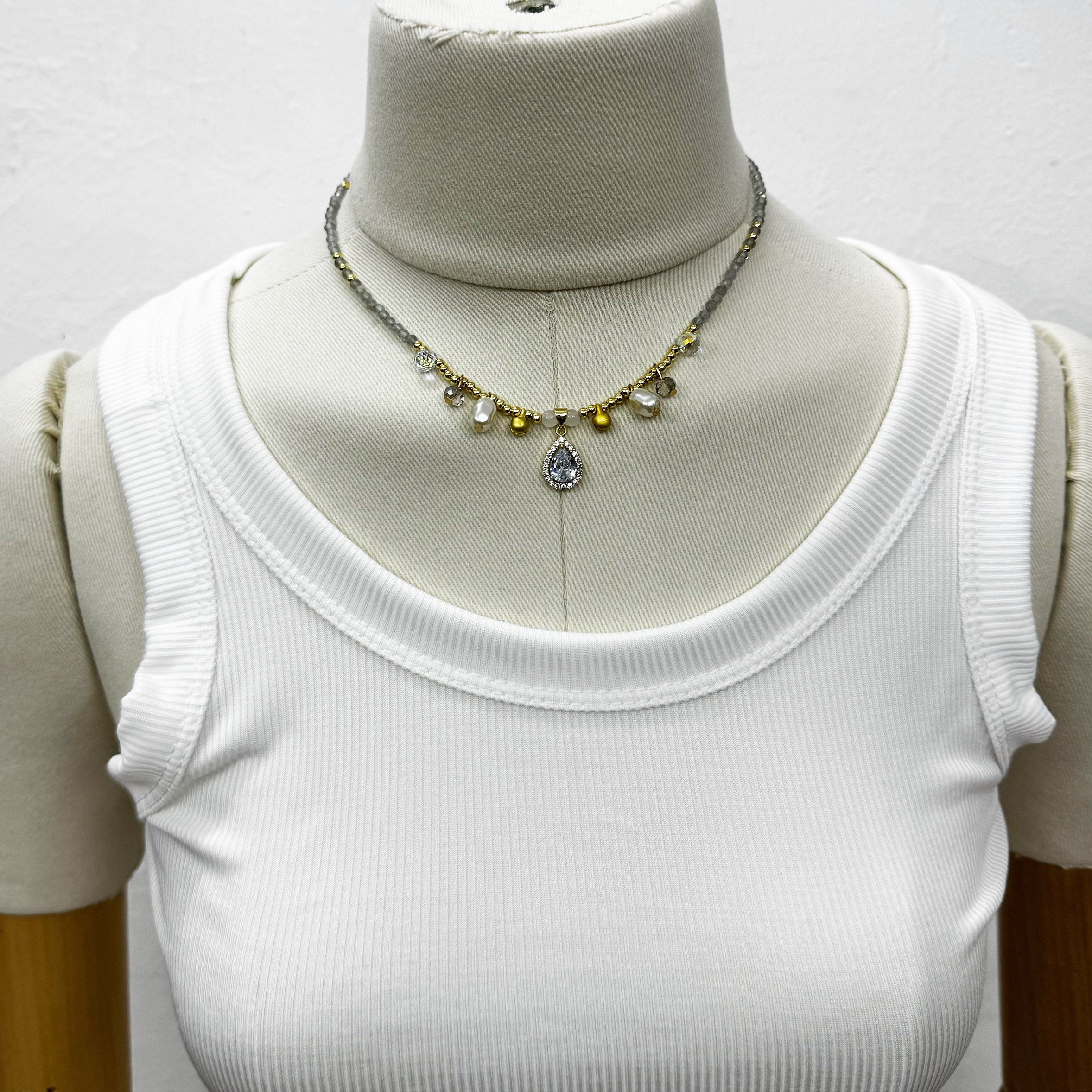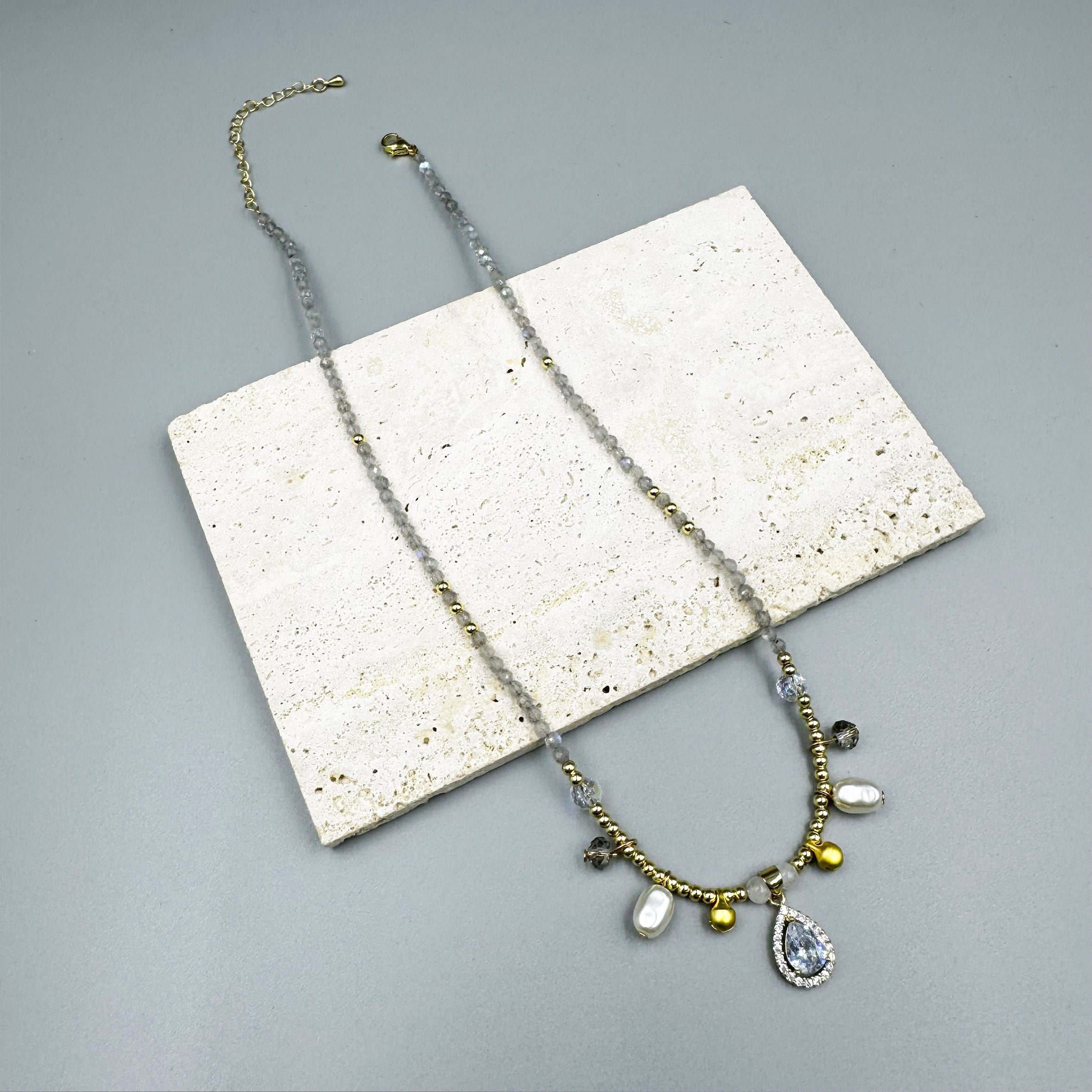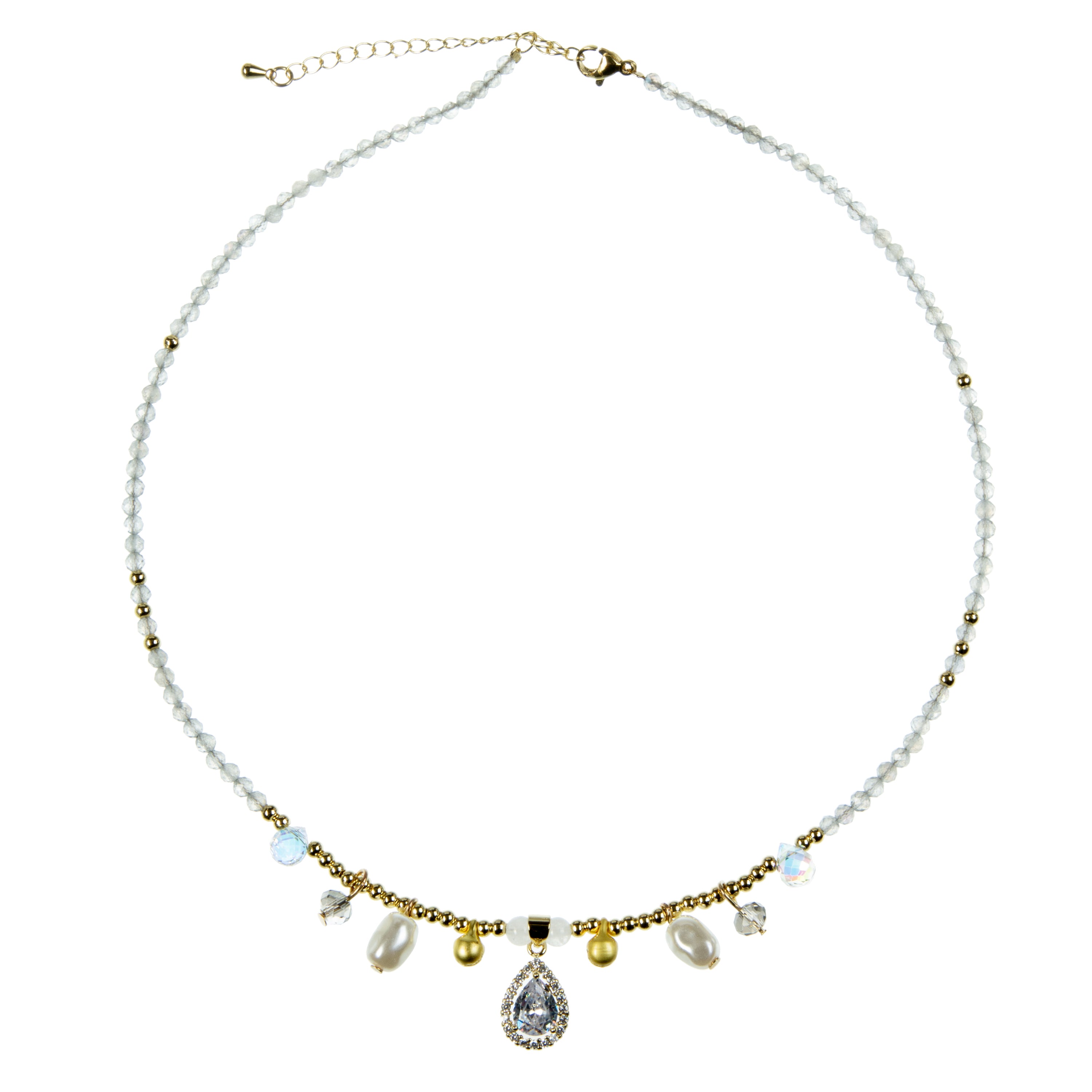 Collar corto con colgante de lágrima y piedra labradorita N5347