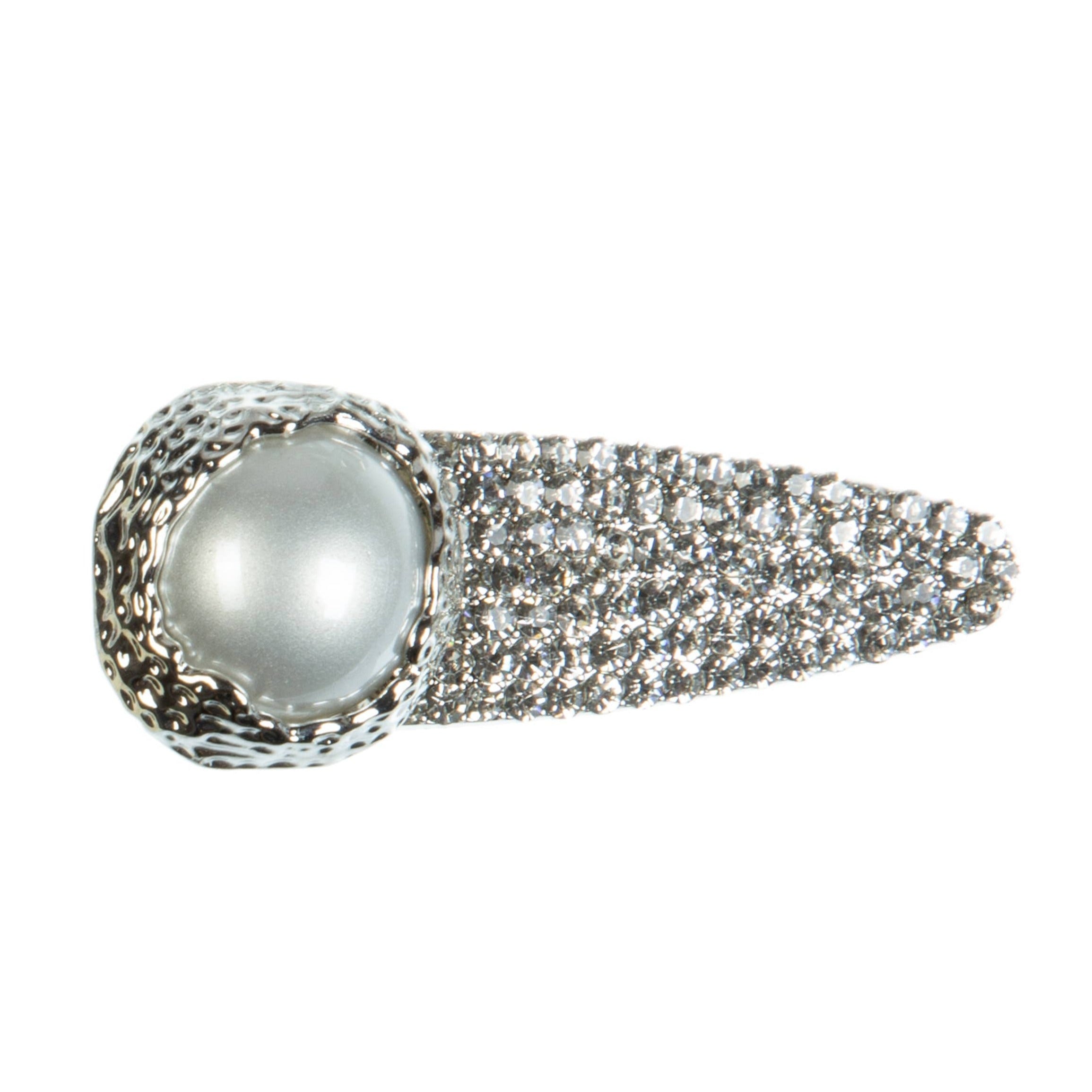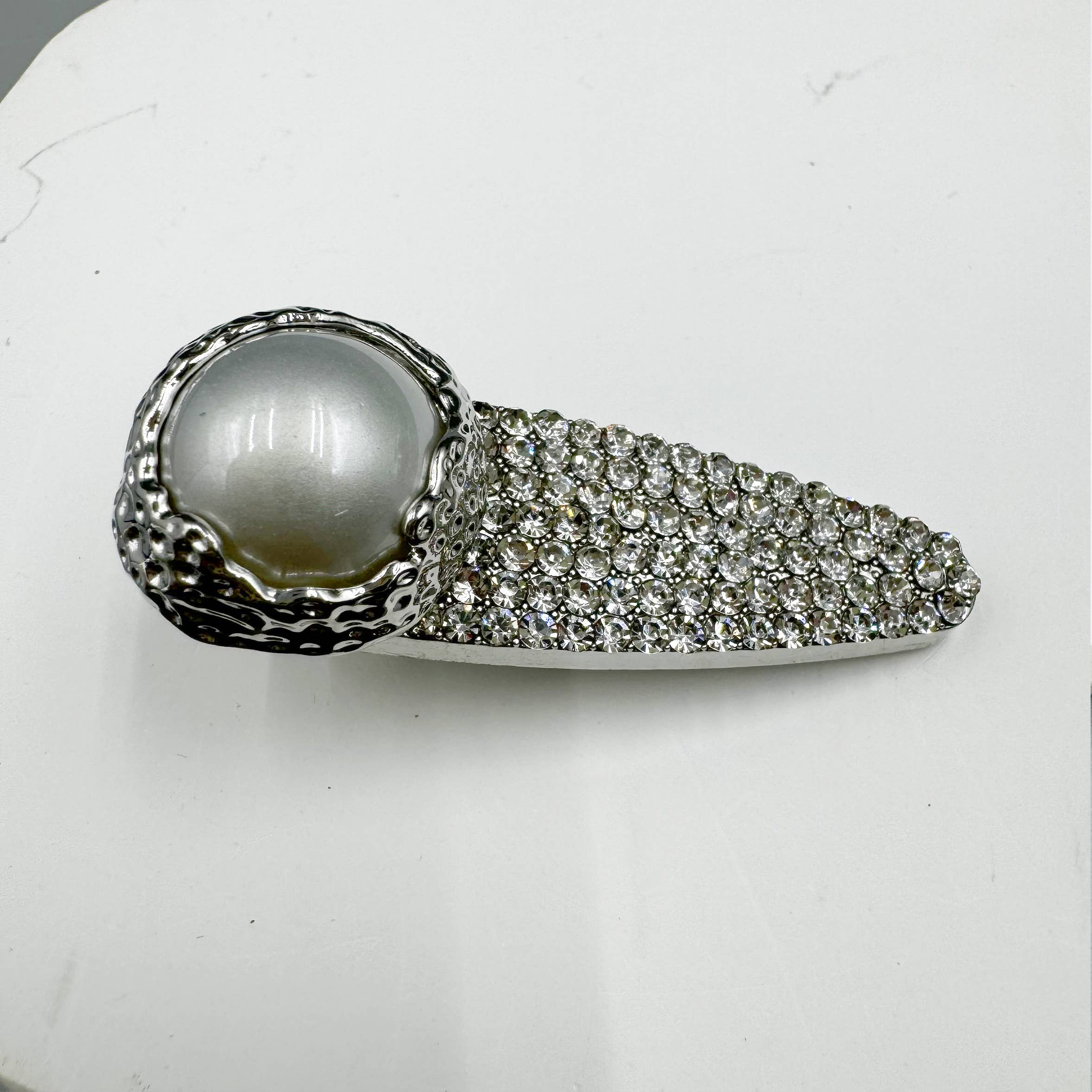 This elegant duckbilled clip features a beautiful combination of sparkling rhinestones and lustrous pearls crafted from high-quality alloy. Add a touch of sophistication to any hairstyle with this luxurious accessory.