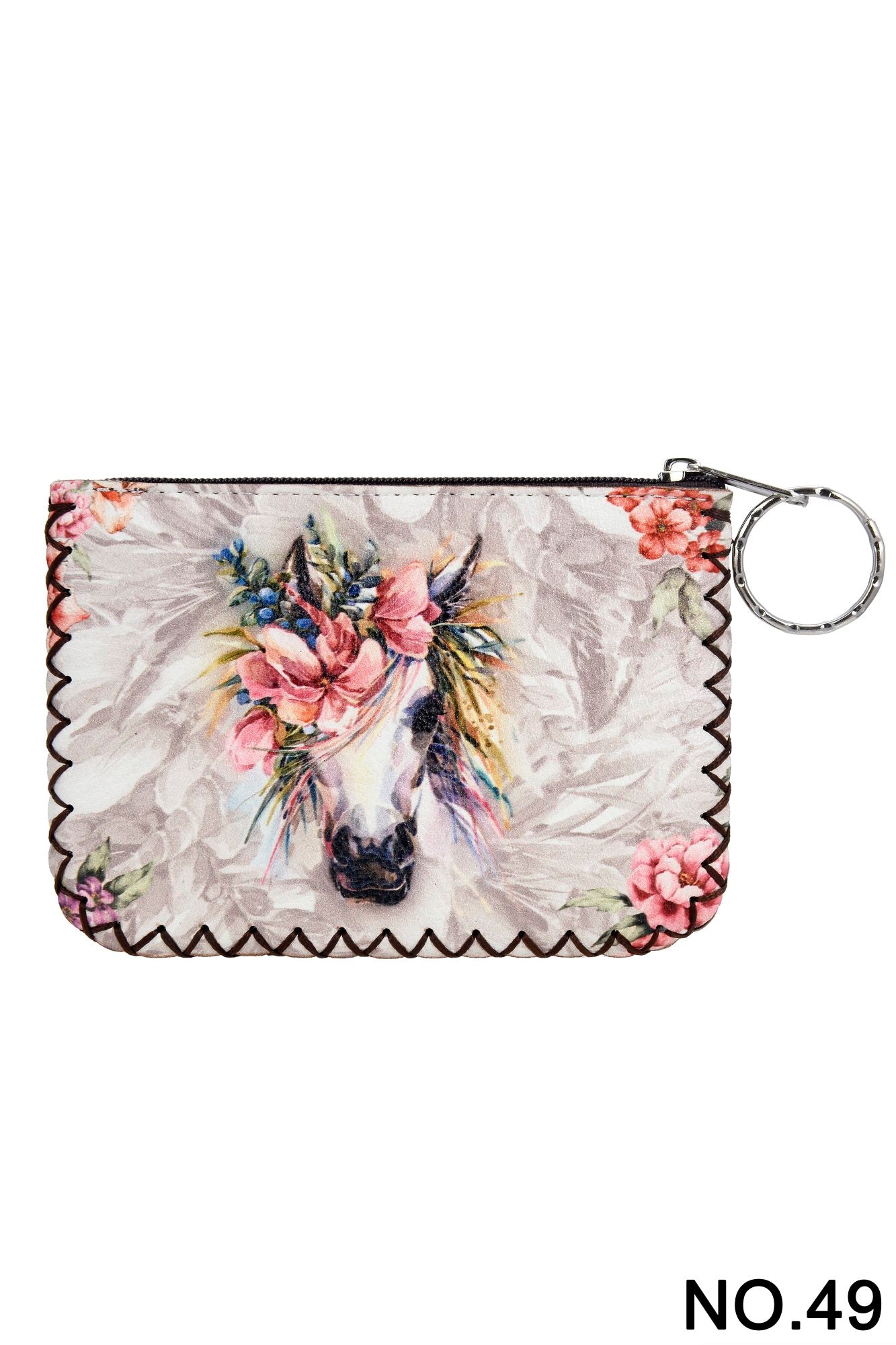 Floral Horse Print Hand Stitch Coin Purse HB0665 - NO.49
