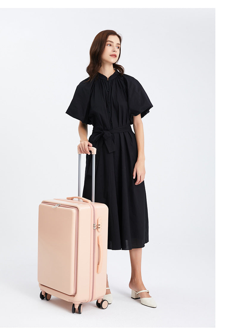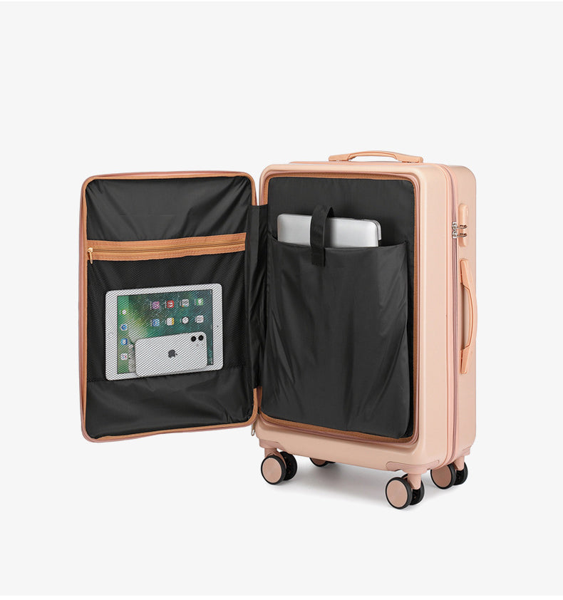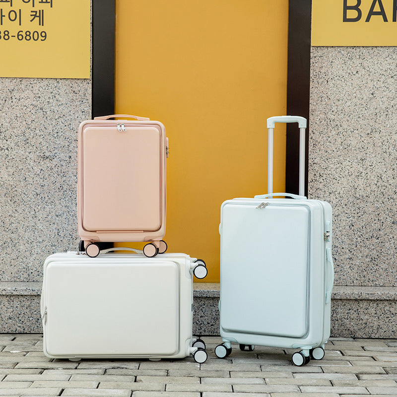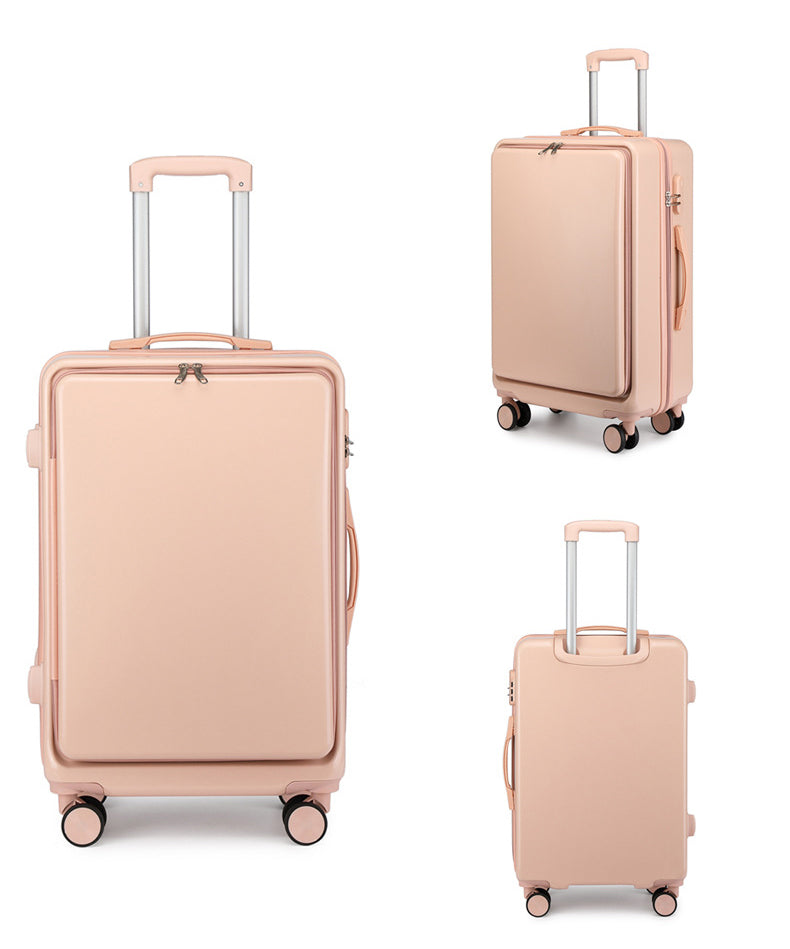 - This cleverly designed luggage is perfect for your next adventure. The front opening allows for easy access to your belongings, while the durable materials, ABS and PVC, provide reliable protection. Say goodbye to struggling with traditional top-opening luggage, and hello to convenience and peace of mind.