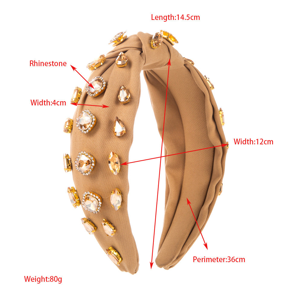 This Rhinestone Knotted Fabric Headband L4558 is expertly crafted with high-quality fabric, dazzling rhinestones, and durable alloy. Measuring at 4 CM in width and weighing 80g, it provides both style and comfort. Elevate your look with this elegant and lightweight headband.