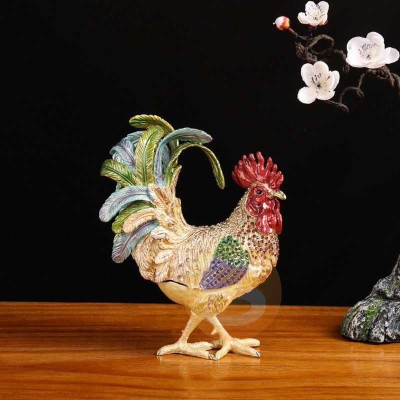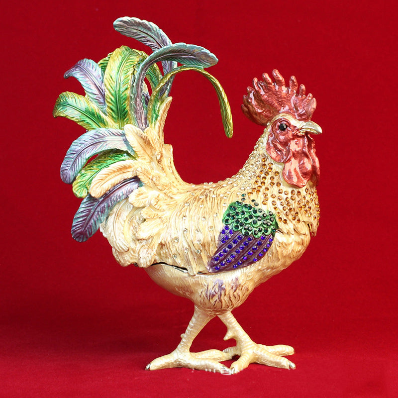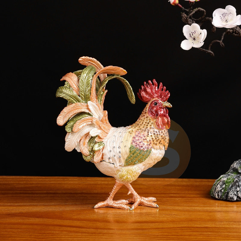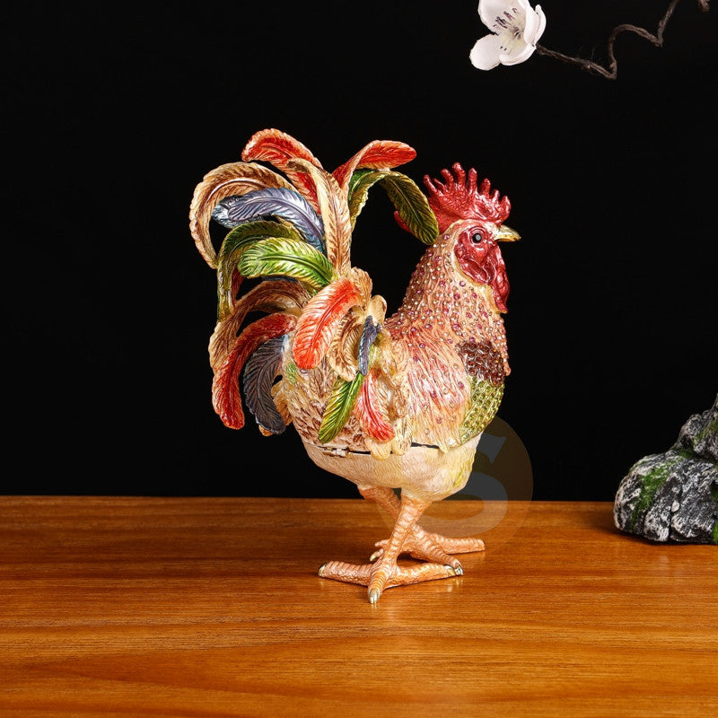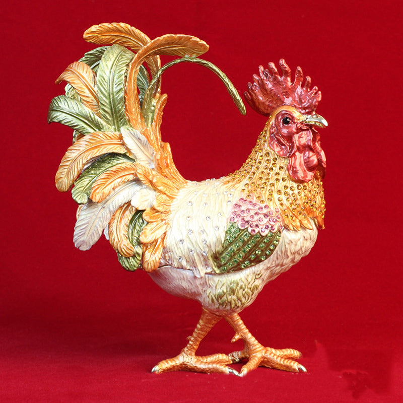 Rooster Alloy Enamel Jewelry Box Ornament W1782