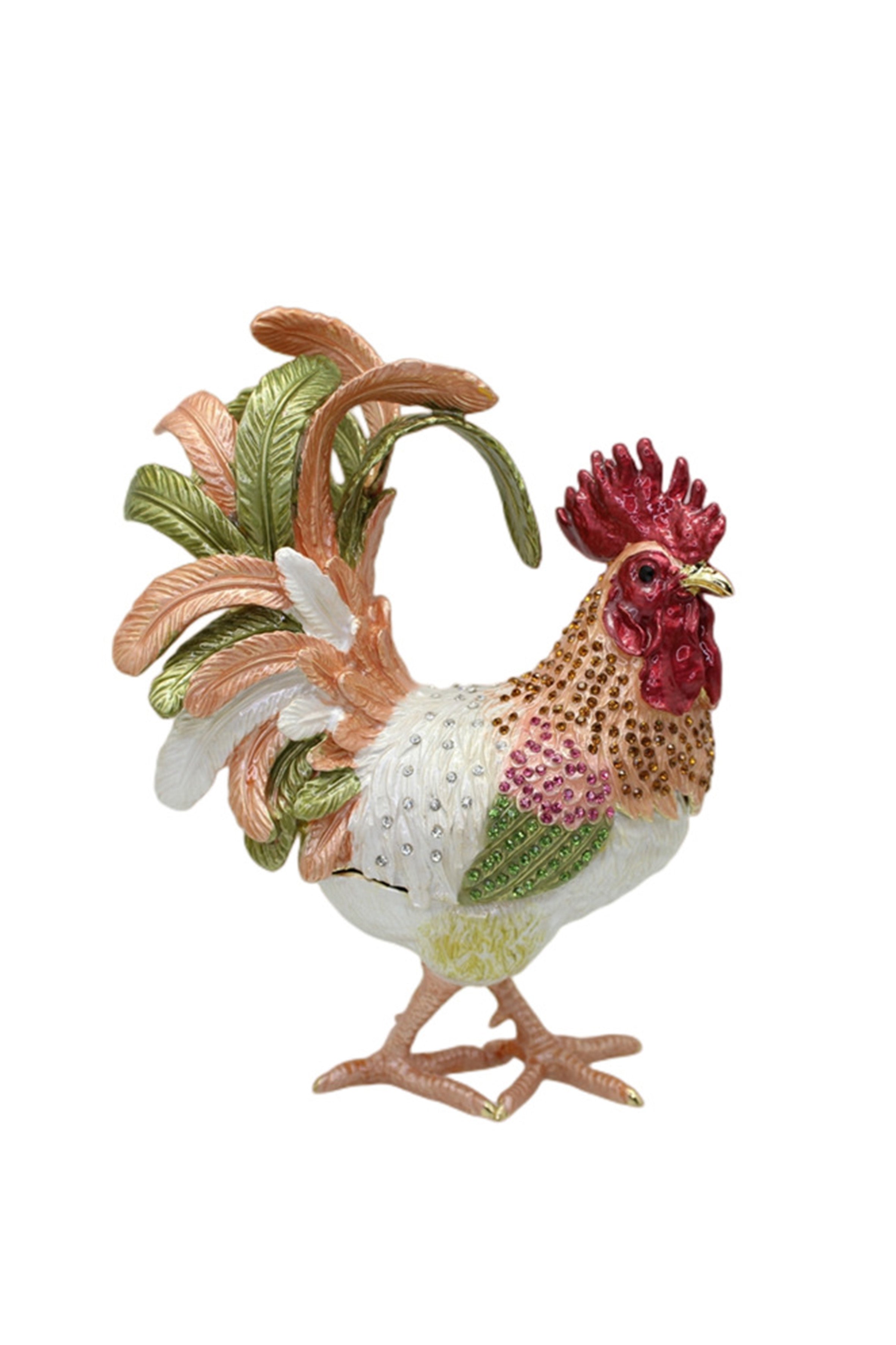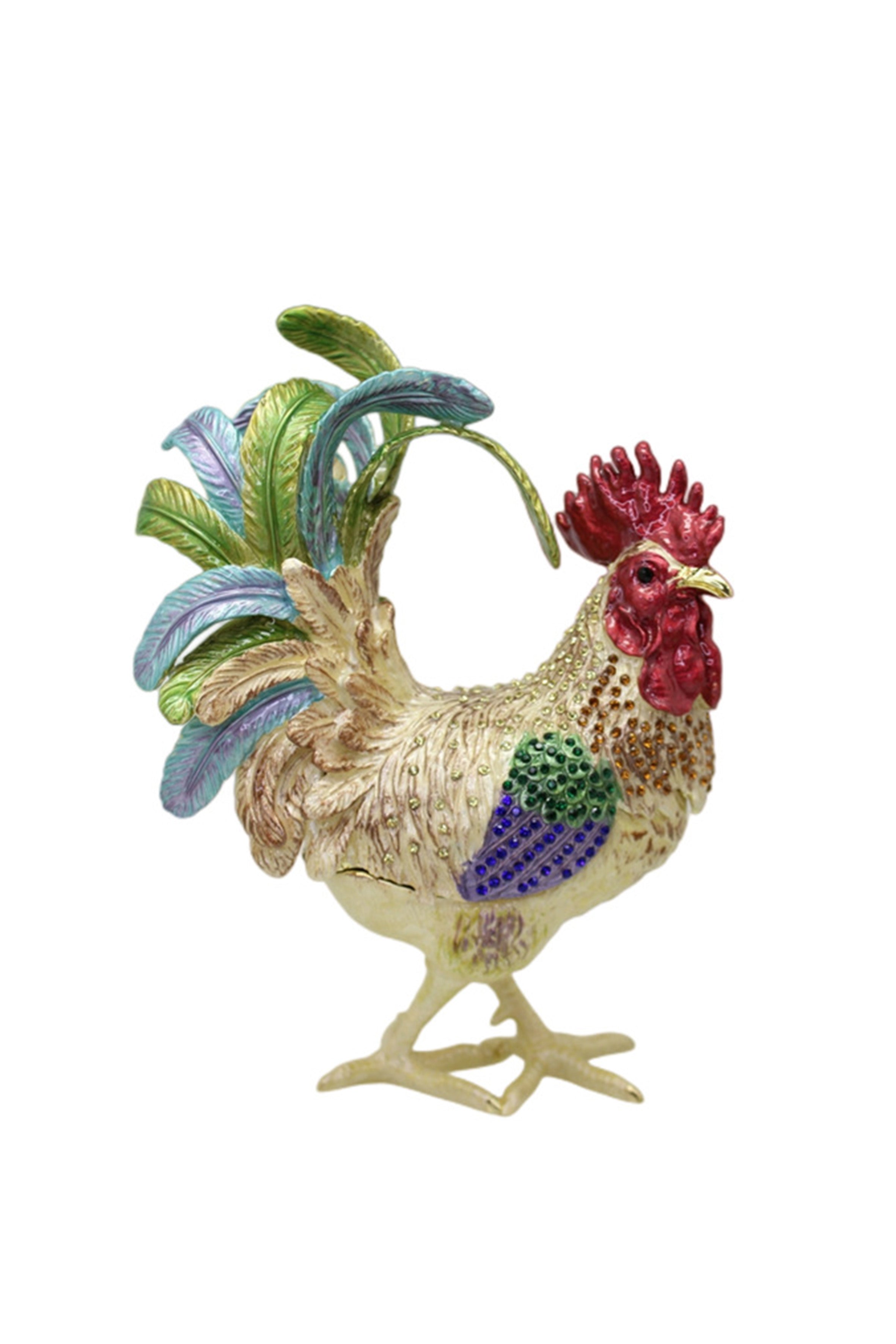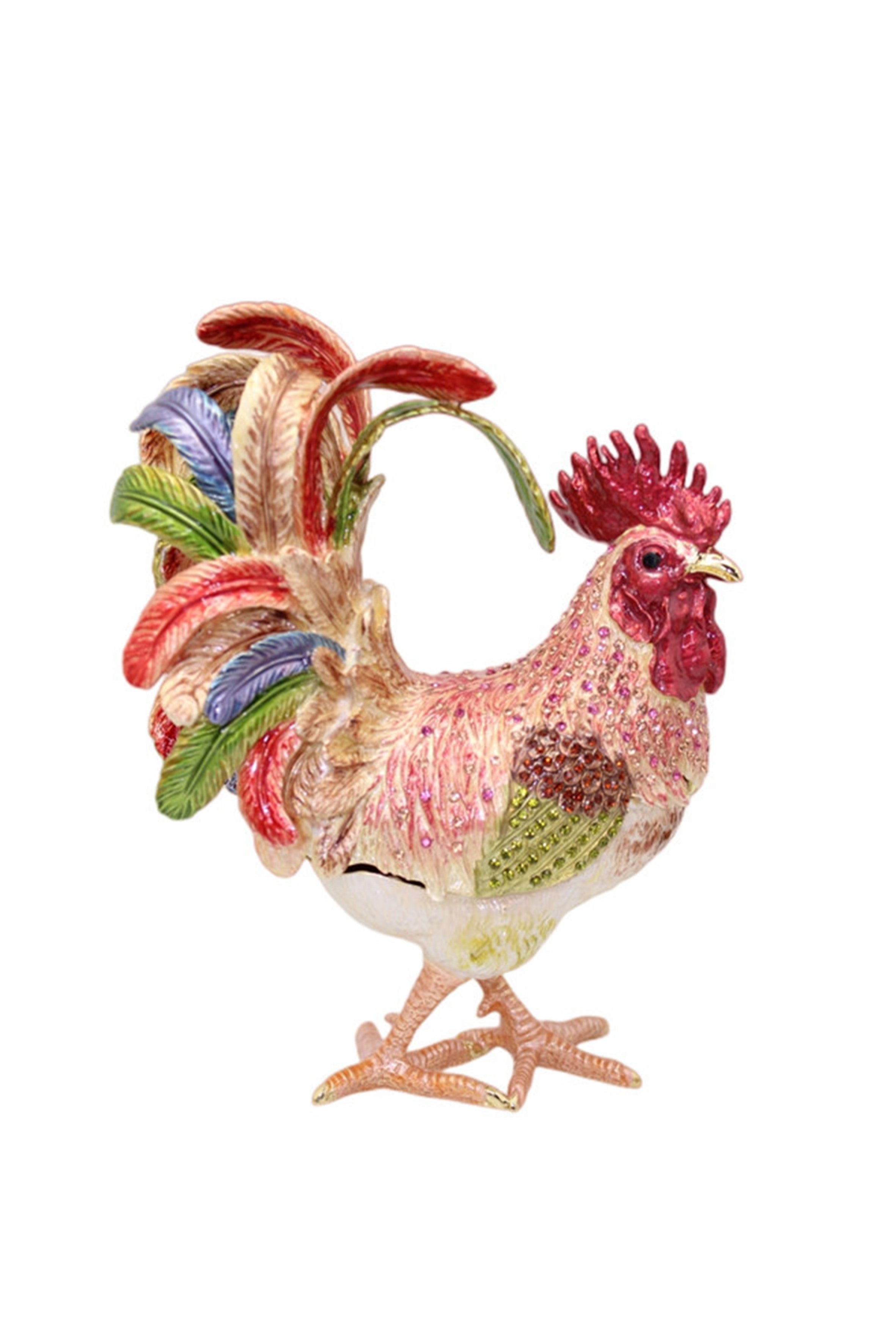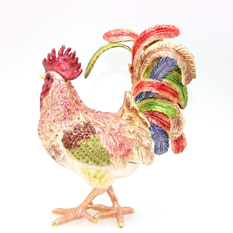 Cock-a-doodle-doo! Keep your jewels safe in style with this Rooster Alloy Enamel Jewelry Box Ornament W1782. Made of durable alloy, it's not just functional, but also a unique ornament for your dresser. Perfect for all the stylish hens out there!